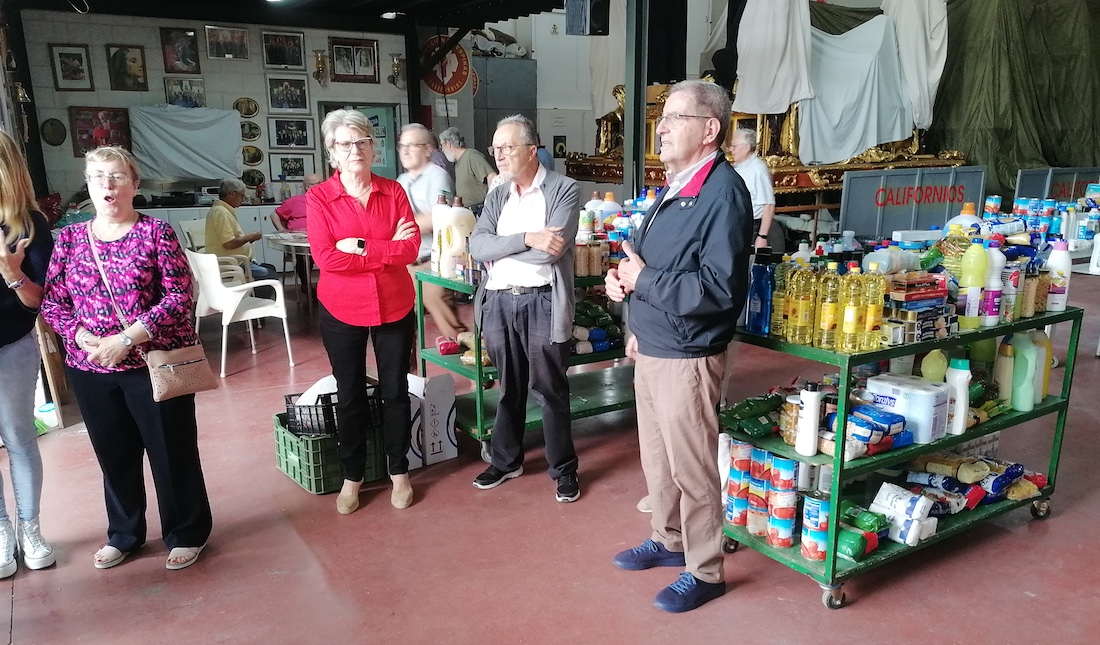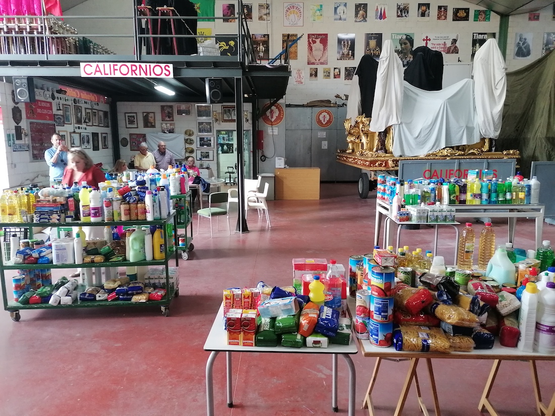 El acto de entrega de alimentos tuvo lugar en la sede del almacén californio de Villa Samaritana, con presencia del hermano mayor, Juan Carlos de la Cerra, y del capellán california, Francisco de Asís Pagán.