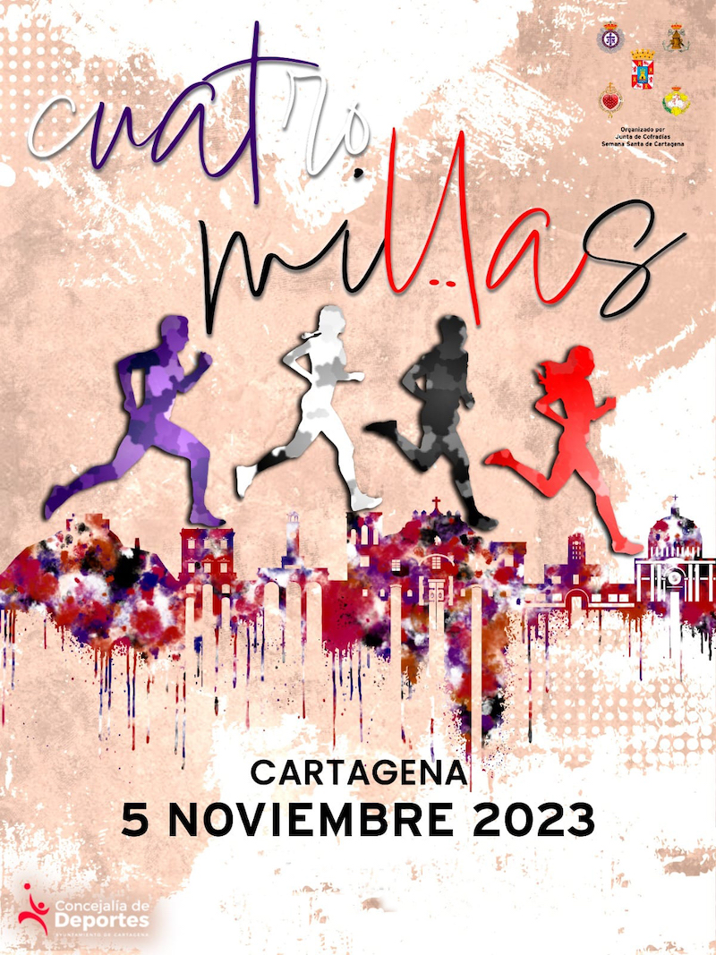 Organiza ‘Cuatro millas cofrades' la Junta de Cofradías en colaboración con la concejalía de Deportes del Ayuntamiento de Cartagena. Las modalidades serán carrera y marcha senderista sobre 5 millas (6,4 kilómetros) y competiciones infantiles. También se ha establecido una ‘fila cero’. Las inscripciones están abiertas y se pueden efectuar a través de lineadesalida.net: PINCHAR AQUÍ