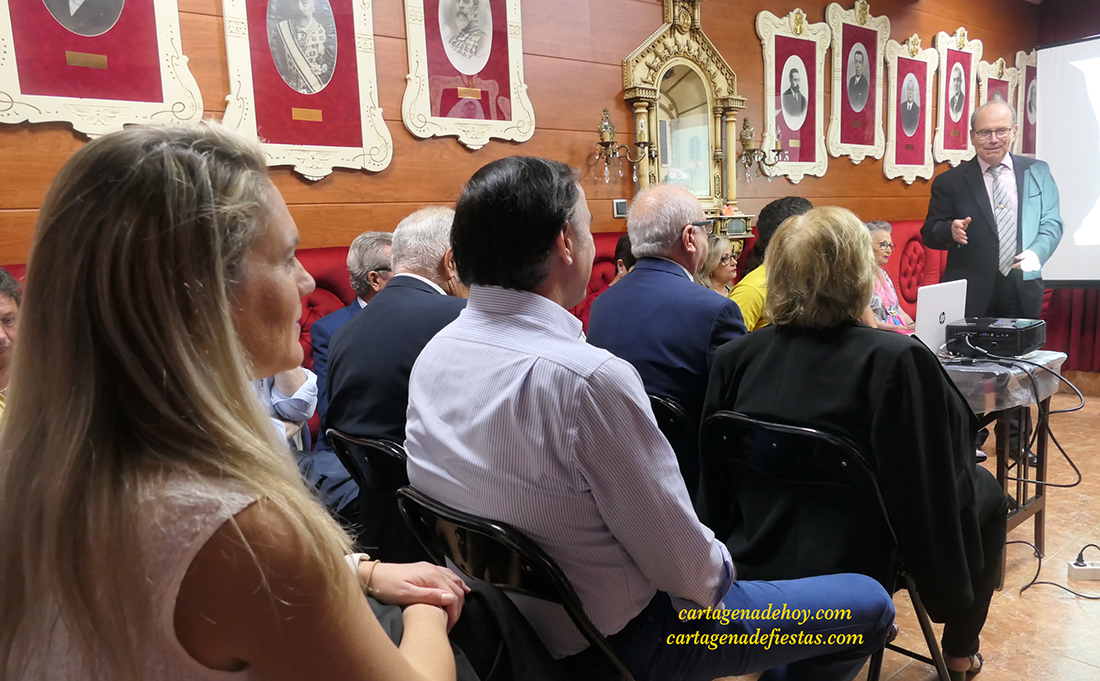 Álvaro Abril comenzó ensalzando la figura de su paisano Luis de Vicente, autor e inspiración de la mayoría de tronos californios de la Semana Santa de Cartagena apuntando que la única obra cofrade que queda de este artista está en Cartagena, "pues la de Málaga fue destruida en la Guerra Civil", expuso.