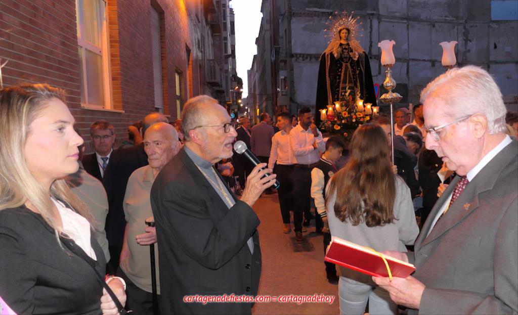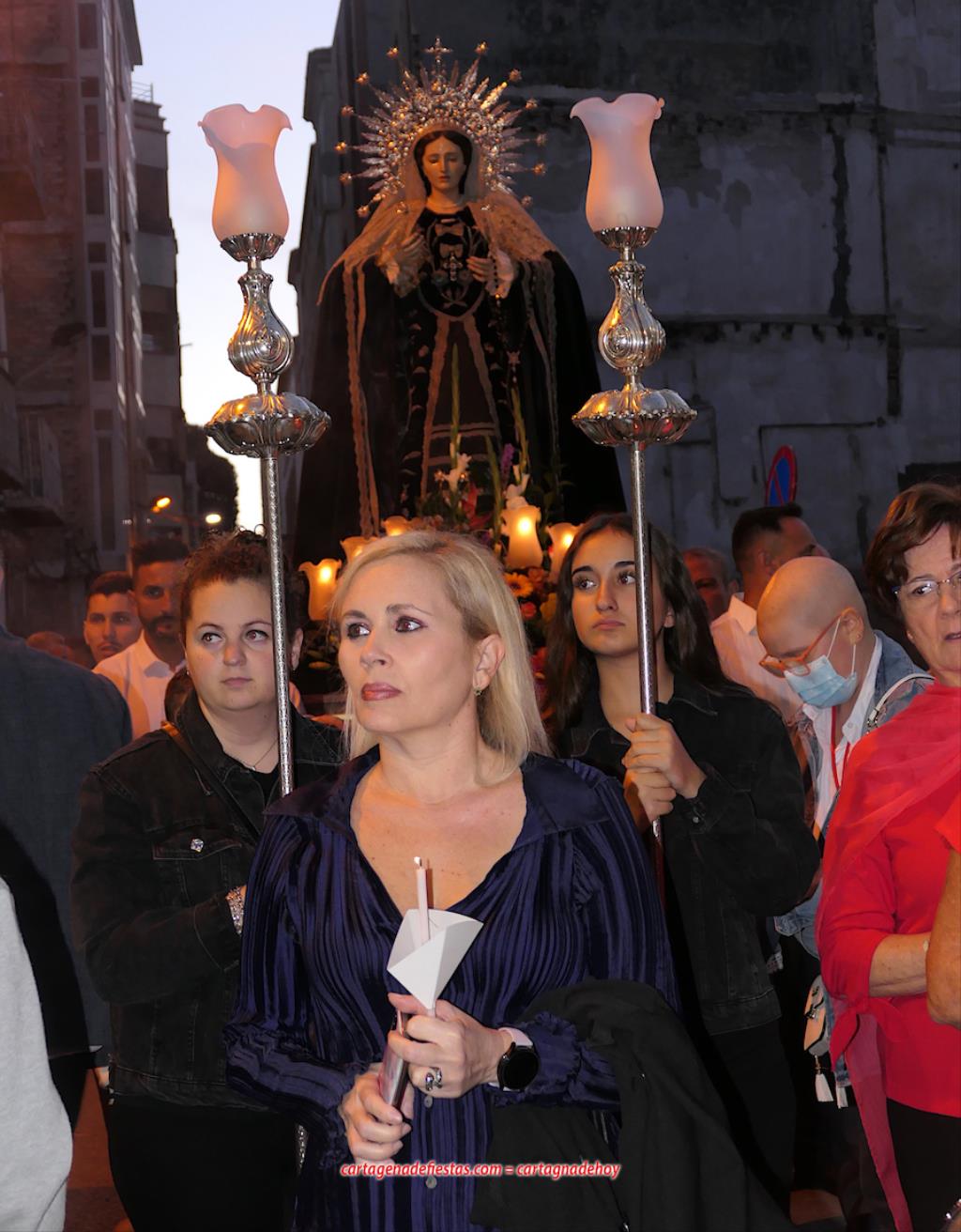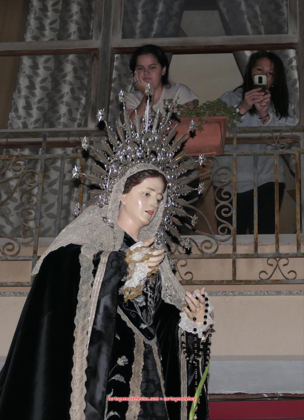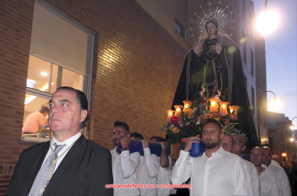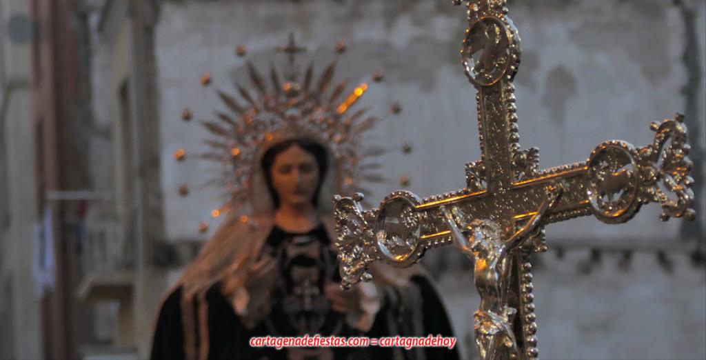 La imagen titular de la agrupación california de María Santísima del Rosario en sus Misterios Dolorosos, como viene haciendo desde 1980, volvió a recorrer las calles del centro histórico de Cartagena fuera de la Semana Santa coincidiendo con el mes de su celebración. La novedad estuvo en la estancia previa de un día en la residencia de mayores y centro de día Orpea, desde donde tomó la salida, a diferencia de los años anteriores en que partía desde la iglesia de Santa María. La iniciativa se ha llevado a cabo para acercar a la Virgen a colectivos cartageneros y la experiencia ha sido muy positiva.