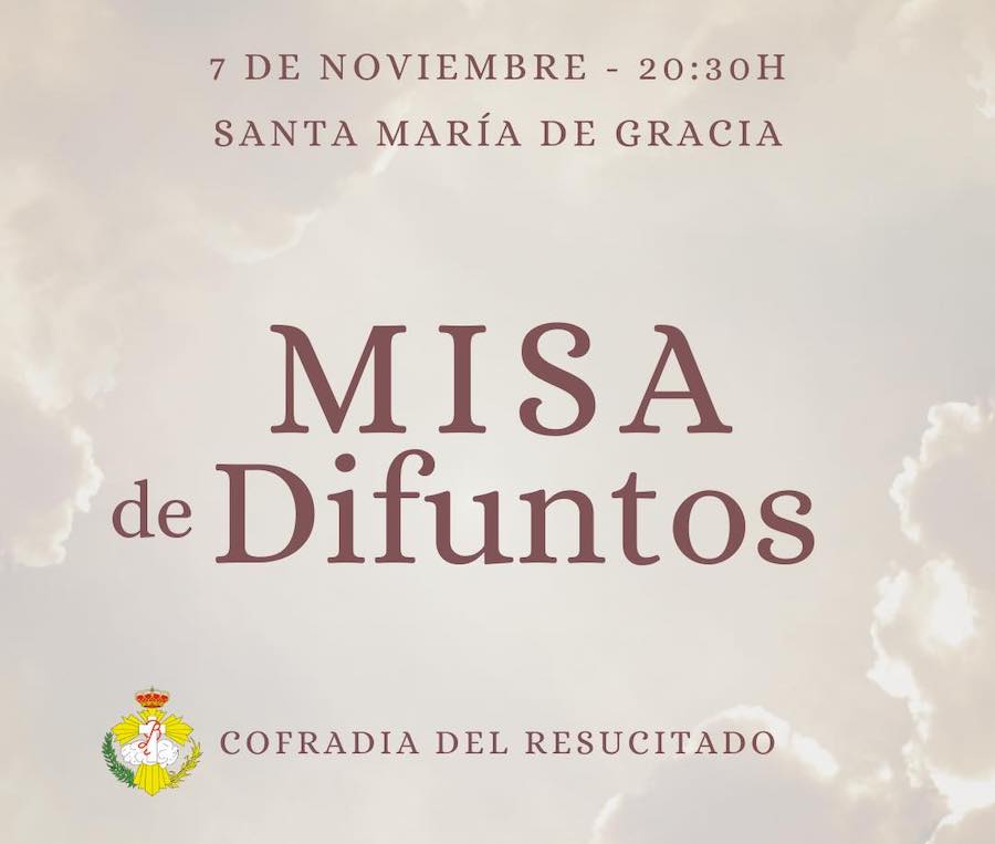 La iglesia de la calle del Aire de Cartagena celebrará este martes, a partir de las 20.30 horas, la tradicional eucaristía de 'los fieles difuntos' de la Cofradía de Jesús Resucitado, con rezo especial para los hermanos blancos que 'se han marchado'.