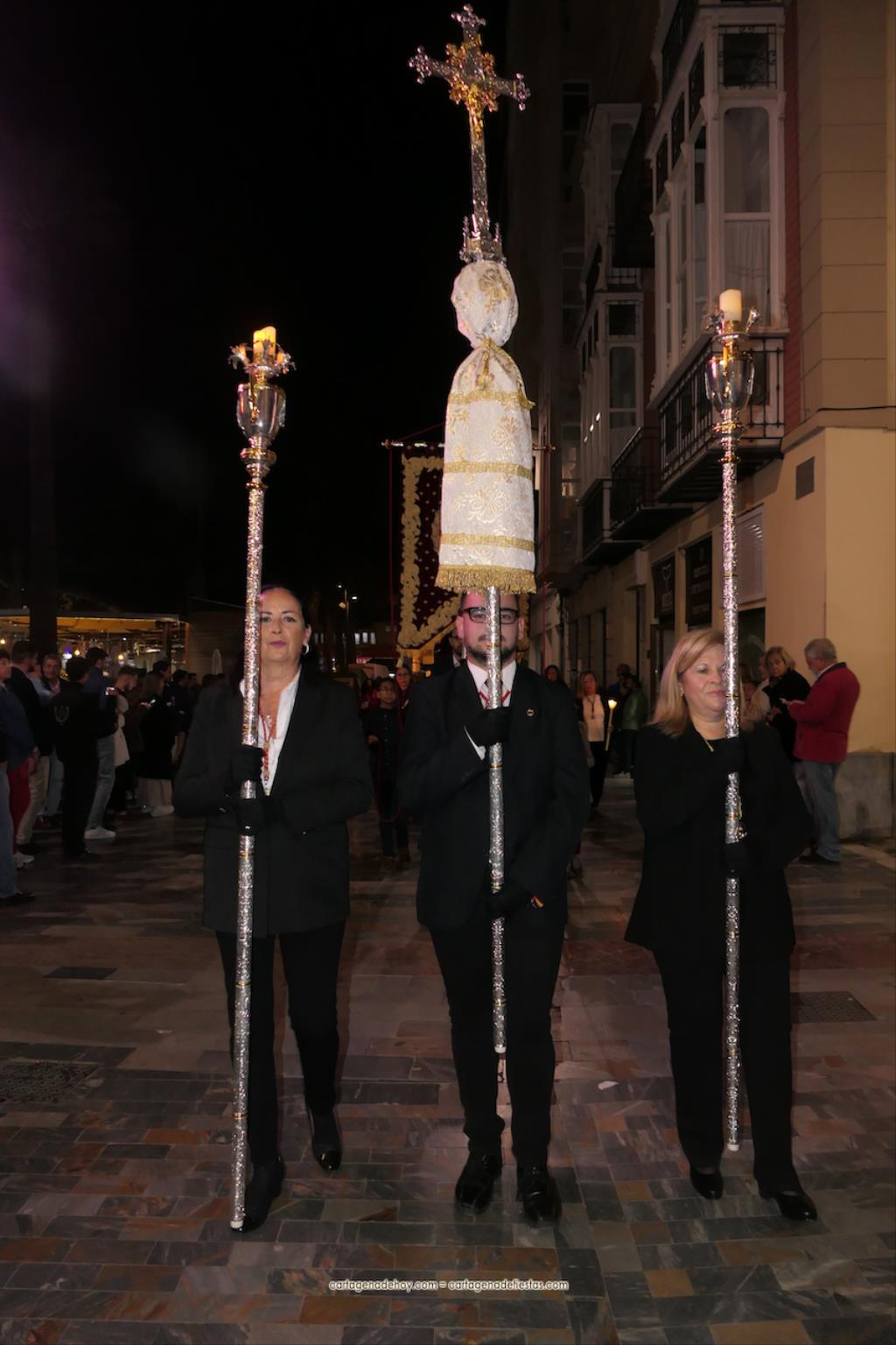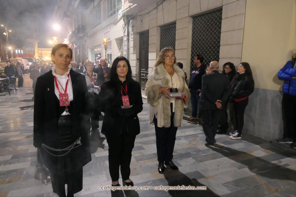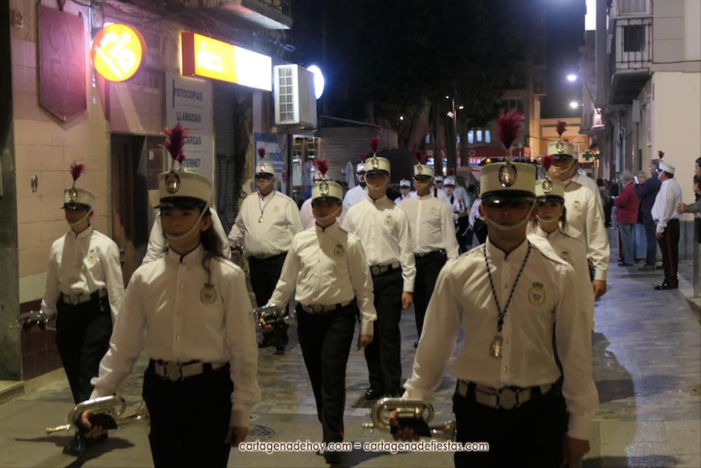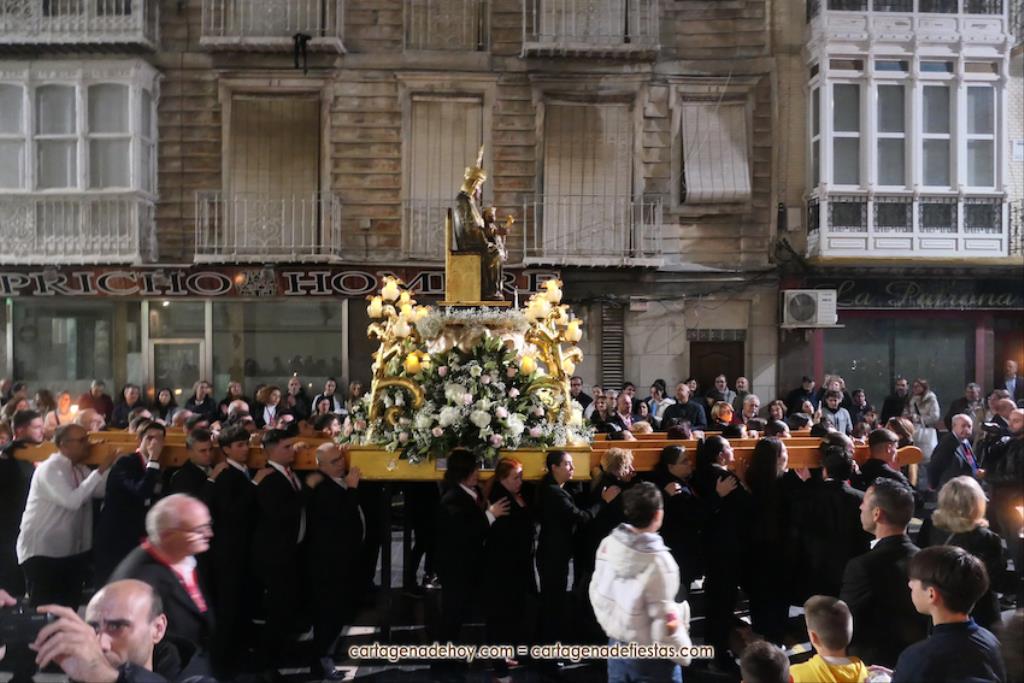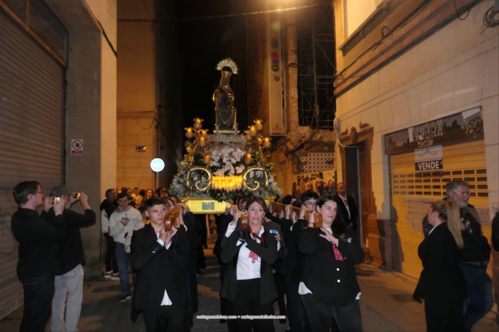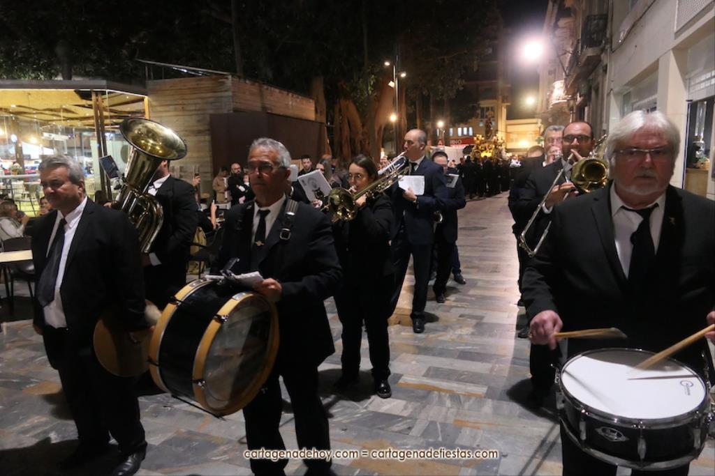La procesión, organizada por la Cofradía de la Virgen del Rosell y los Cuatro Santos, estuvo formada por una amplia representación de cofradías pasionarias y colectivos católicos, cerrando el trono llevado por algo más de cincuenta portapasos de ambos sexos llevando la talla medieval a la que la leyendas populares señalan que fue encontrada por un pescador, de apellido Ros, flotando en las aguas cartageneras.