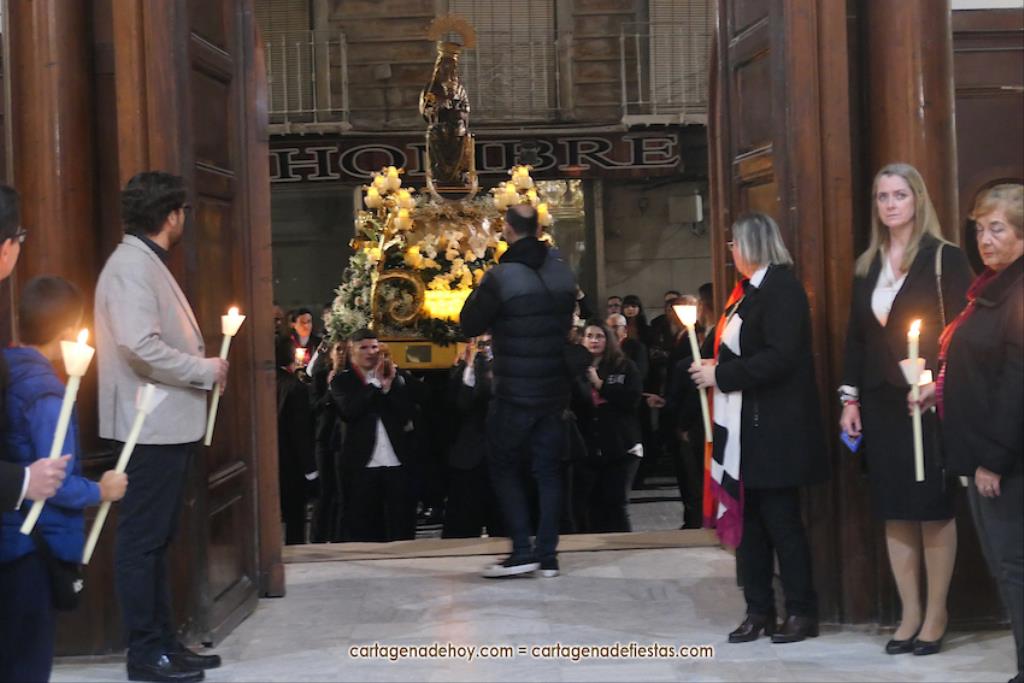 Bien, dicho todo esto, nos centramos en la semana de actos de devoción y honor a la Virgen del Rosell, que han abarcado oficios religiosos y, esta tarde, la renovación del voto perpetuo a los Cuatro Santos y a la Virgen del Rosell por parte del Ayuntamiento de Cartagena, con posterior ofrenda de colectivos y devotos. Antes, anoche, tuvo lugar la salida anual de la Virgen del Rosell por las calles del casco antiguo, que esta vez varió su recorrido debido a que hubo visita a la Virgen de la Caridad con motivo del tricentenario de su llegada.