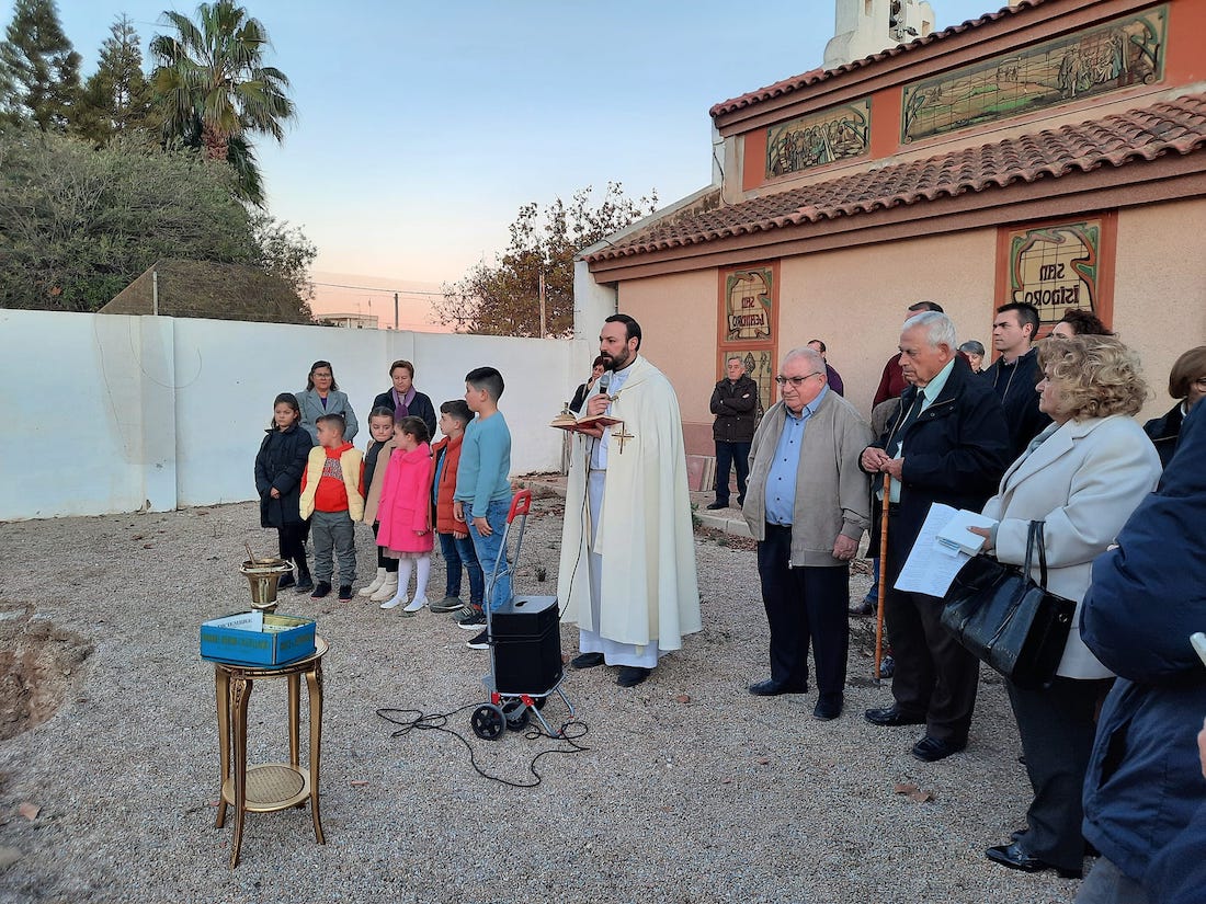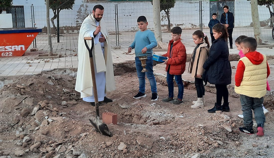 El acto de colocación de la primera piedra tuvo lugar hace unas fechas, con bendición del párroco Daniel Díaz Candela. Entre los presentes estuvieron representantes de la asociación de vecinos y el presidente de la Junta Vecinal Municipal, Juan Manuel Ayaso. El pueblo organiza su Semana Santa desde hace casi tres décadas a través de la Cofradía del Cristo de la Agonía, que saca procesiones el Domingo de Ramos y el Jueves Santo.