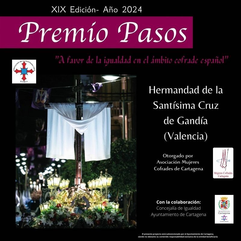 El sábado 20 de enero será la fecha de la celebración de los actos de homenaje y Gala de Entrega del Premio PASOS 2024 a Hermandad de la Santísima Cruz de Gandía.