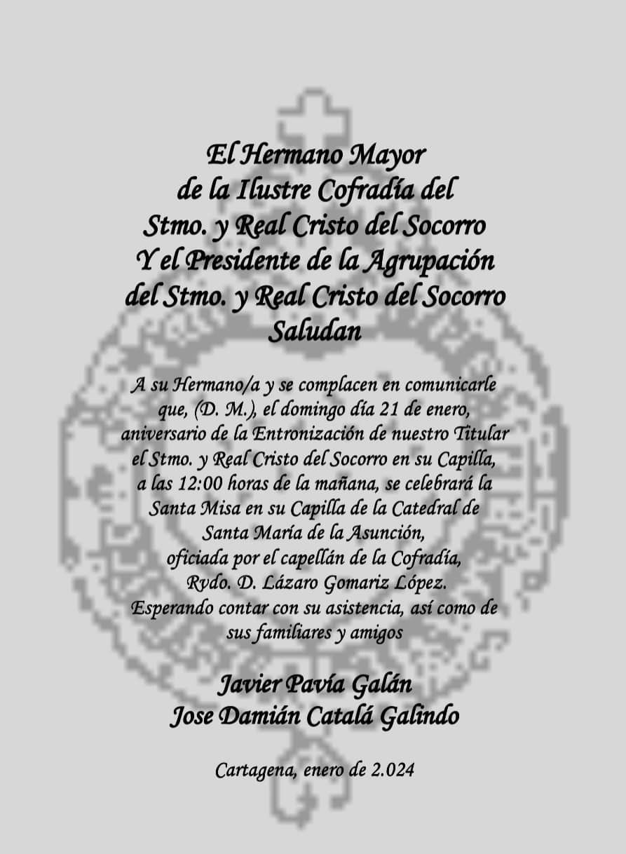 La cofradía y la agrupación que llevan el nombre del 'Cristo Moreno' organizan este próximo domingo, a partir de las 12 horas en Santa María la Vieja, la eucaristía del aniversario de la entronización de la imagen del crucificado, desarrollándose la misma en la capilla de la hermandad, siendo oficiada por el capellán, Lázaro Gomariz López.