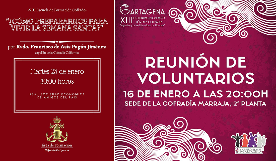 Francisco de Asís Pagán Jiménez, capellán de la Cofradía California, será el protagonista de la jornada del próximo 23 de enero, a partir de las 20 horas en la Real Sociedad Económica de Amigos del País, con la temática: '¿Cómo prepararnos para vivir la Semana Santa?'.