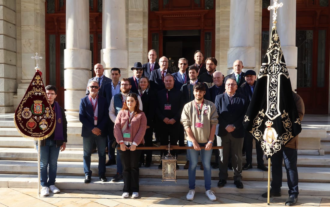 El siguiente capítulo ha sido otro traslado en procesión por el paseo de Delicias, plaza del Pescador y paseo del muelle, con la música de la agrupación 'Cartagena 1990', hasta el Palacio Consistorial, donde el edil Ignacio Jáudenes, ha recibido a la comitiva. En el exterior ha tenido lugar el izado de banderas procesionistas. Después, en el salón de actos del Museo del Teatro Romano, ha tenido lugar una conferencia sobre el patrimonio textil. También visitaron el monumento romano del siglo I y las capillas de las cuatro cofradías cartageneras, además de asistir a una eucaristía que ofició el obispo, monseñor Lorca Planes.