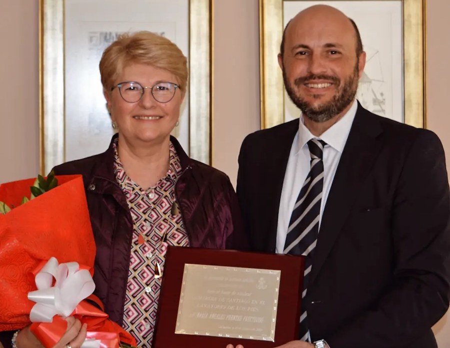 La camarera en este especial año es María Ángeles Fuentes Fructuoso, quien ha recibido en su domicilio a una representación de la directiva de la agrupación de Santiago Apóstol, que le hizo entrega del nombramiento y de un ramo de flores.