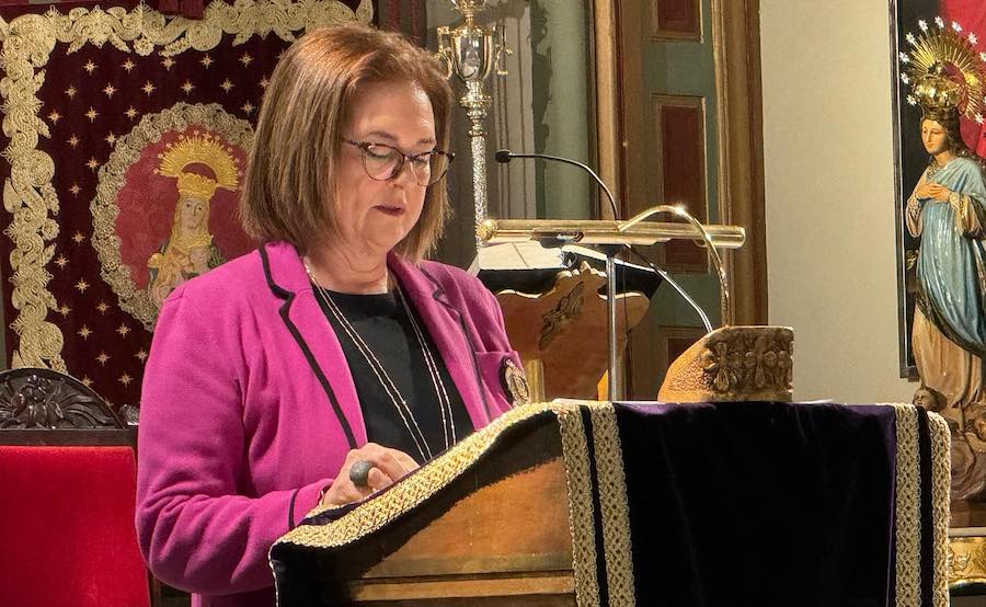 Esta noche es la misa de la Junta de Cofradías y el sábado por la mañana recibirá la medalla Manuel Martínez como 'Procesionista del año', mientras que por la tarde será cuando Fernando Gutiérrez Reche pronuncie el pregón de la Semana Santa de Cartagena 2024. Este fin de semana también hay ensayos y juntas generales de agrupaciones, además de la eucaristía de la Coronación de Espinas. En la foto, María Comas, quien ayer ofreció el pregón de la 'Llamada literaria de la Semana Santa' en Santa María.