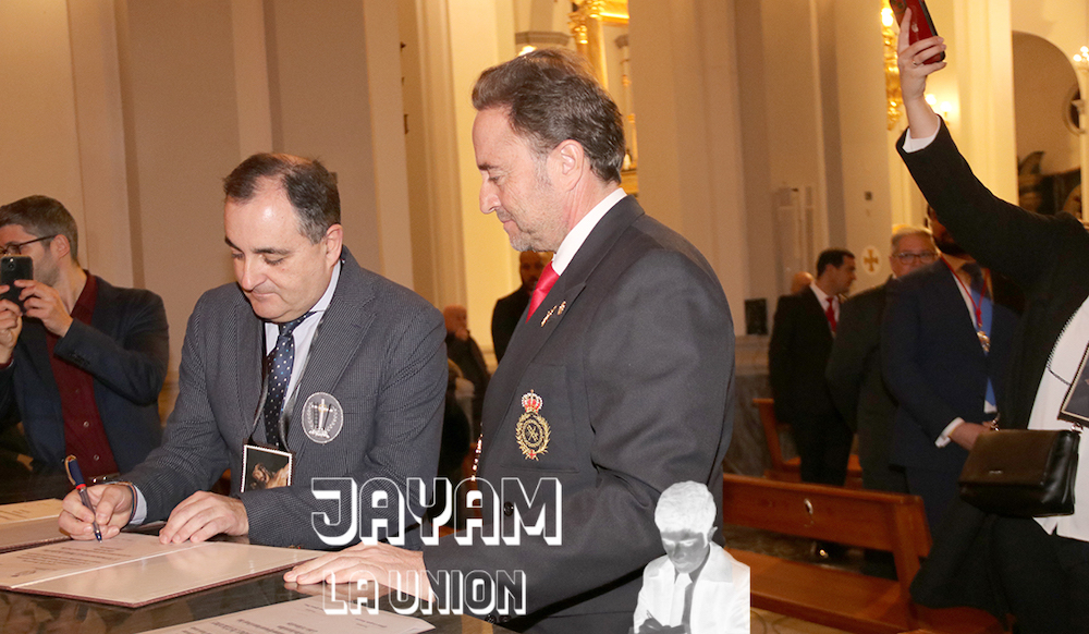 Tras culminar el Vía Crucis desde la mina a la iglesia del Rosario de La Unión, en este lugar se llevó a cabo en la tarde de ayer el hermanamiento de las dos agrupaciones de las semanas santas de La Unión y de Cartagena que tienen como imagen devocional al Cristo de los Mineros.