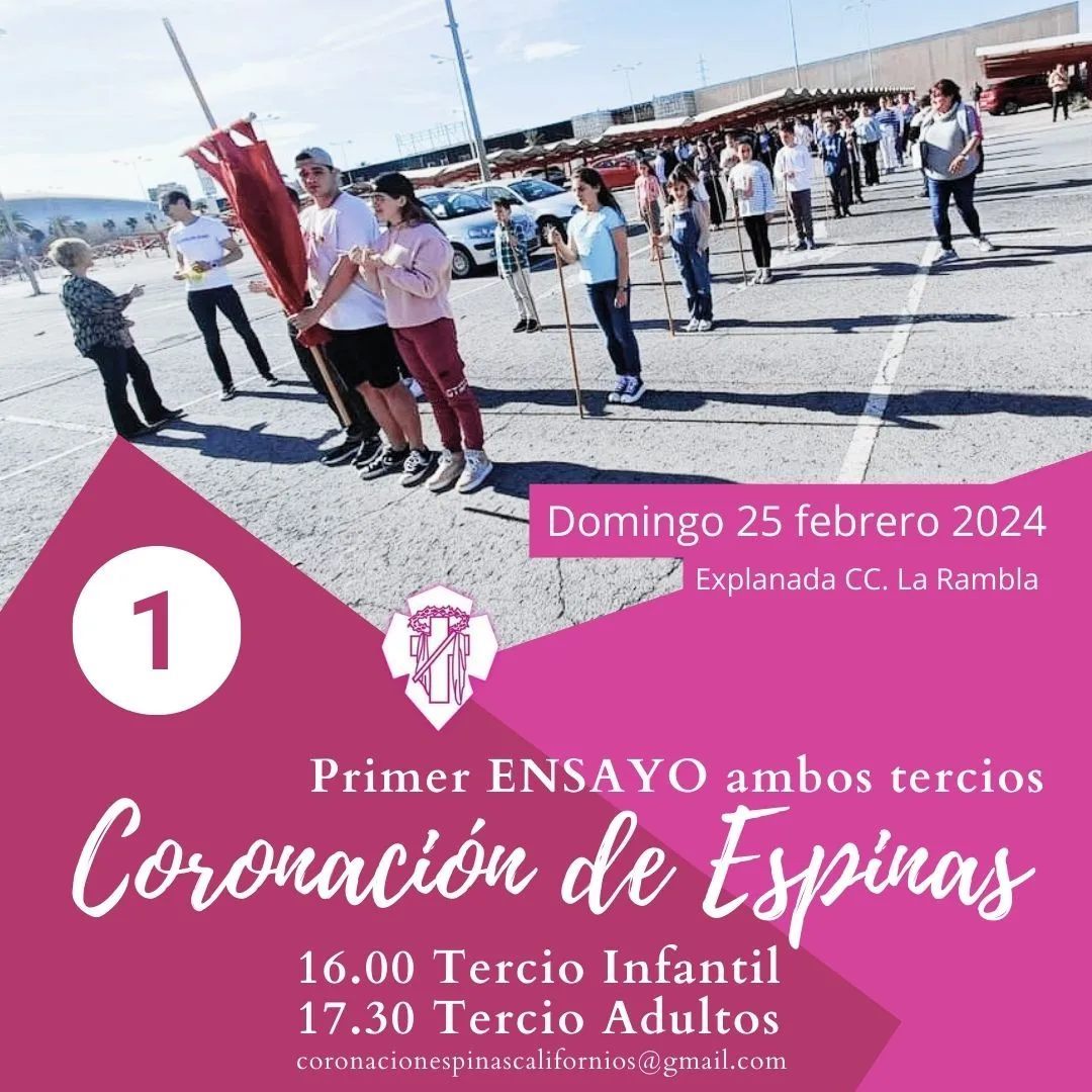 La agrupación california, que representa el momento en el que Cristo recibió la corona de espinas, comienza las jornadas de preparación del desfilar de sus tercios este próximo domingo en la explanada del centro comercial La Rambla, a partir de las 16 y 17.30 horas, respectivamente, para los grupos infantil y titular. Además, indicar que se ha fijado la comida del colectivo, en la que habrá entrega de premios y distinciones, para el 10 de marzo en Tentegorra.