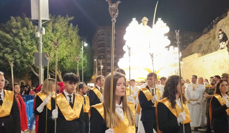 Aprovechando este tiempo de cuaresma, el departamento de Ciencias Humanas y Religiosas de la Universidad Católica ha planificado visitas a las cuatro cofradías de la ciudad portuaria. La primera ha sido a la que abre la Semana de Pasión en todo el país con su Vía Crucis Penitencial la madrugada del Viernes de Dolores, la del Santísimo y Real Cristo del Socorro. Foto de 2023 con estudiantes del centro acompañando a San Juan el Martes Santo.