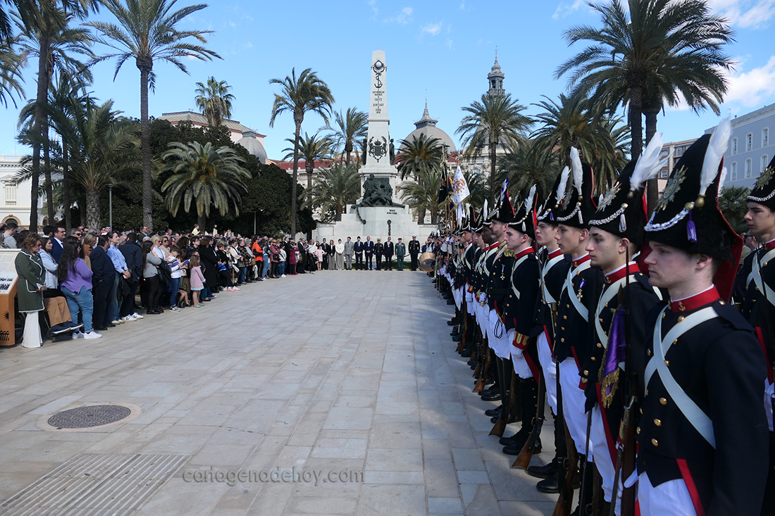 Los granaderos de la Cofradía Marraja han llevado a cabo, junto al monumento a los Héroes de Cavite, su tradicional homenaje al héroe español de la batalla naval contra los ingleses de 1797. Entre los asistentes ha estado Antonio Rafael Ferrández García, quien ha sido nombrado 'Morrión de oro' de 2024 por el colectivo marrajo que representa las escuadras que acompañaban al Nazareno hace tres siglos.