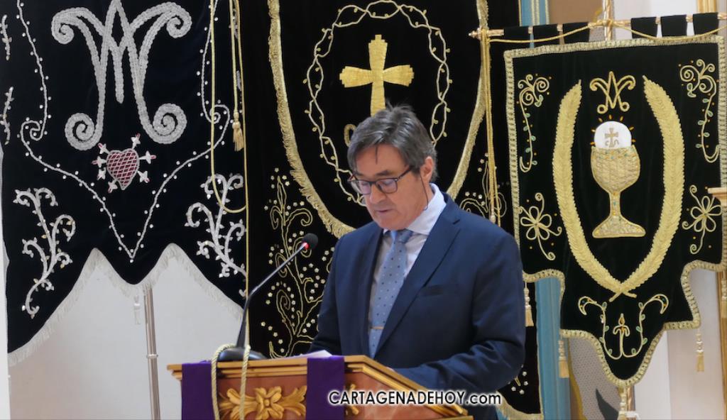 En su alocución, expresó que Jesús y María compartieron "el sufrimiento" e invitó a meditar que sobre que Dios y el Espíritu Santo "nos ayudan a caminar con Jesús", remarcando también que el buen cristiano deber "servir con generosidad y no pedir nada a cambio", centrándose a continuación en las procesiones de La Puebla, señalando a sus cofrades como los encargados "de transmitir la fe de generación en generación" por la calle". A continuación, recordó que la primera 'Procesión del Silencio' salió el Jueves Santo de 1997 con el Cristo de la Agonía, sumándose al año sigiente la Virgen de la soledad, para en 1999 ampliarse los desfiles con el Domingo de Ramos. "Quiero agradecer la labor de los que trabajan cada año por estas procesiones y calar a los vecinos", dijo, pidiendo a los poblenses que cada vez más se integren en a Semana Santa de La Puebla. "Las procesiones permanecen arropadas y cultivadas por el fervor de los vecinos".