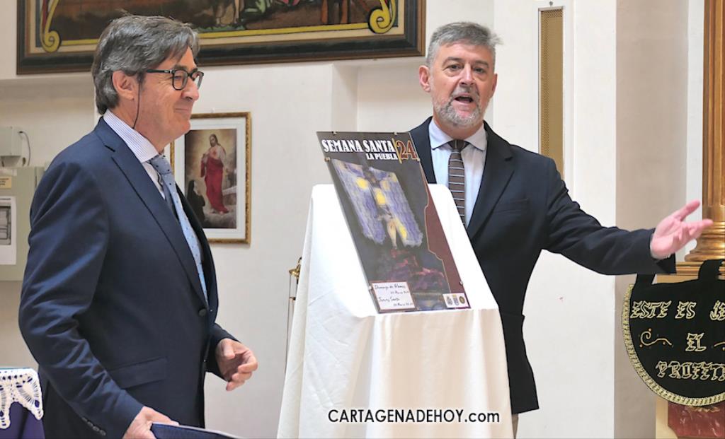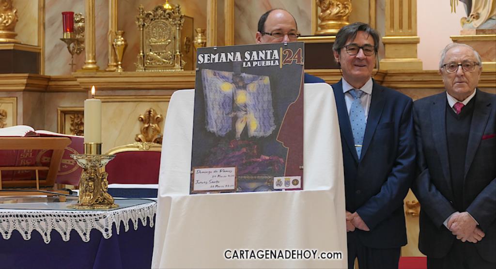 La Semana Santa de La Puebla ya se anuncia a través de la voz y la imagen con el acto celebrado este pasado domingo en la iglesia poblense en el que fue presentada la obra de Rubén como cartel de 2024 después de que Pedro Antonio Fernández ofreciese el pregón del sentir cofrade de esta tierra cartagenera.