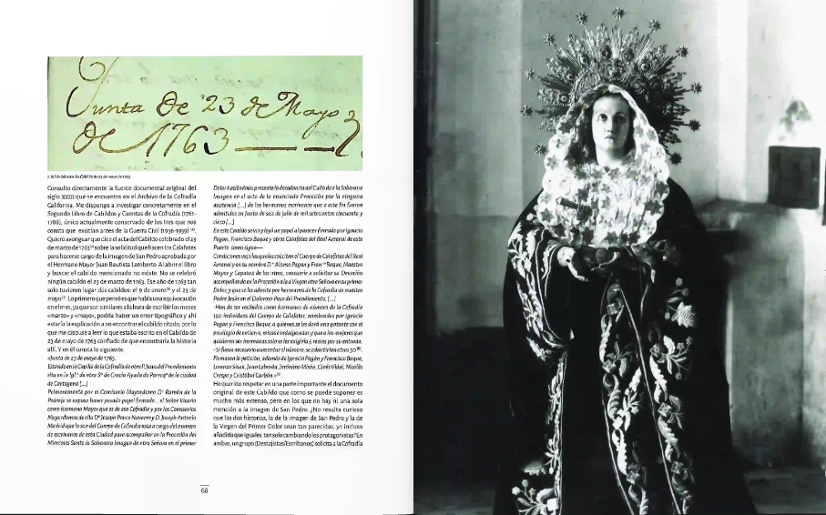 Por último, le preguntamos si esa idea de que fue en el siglo XVIII el inicio de la vinculación pudo ser una confusión con la petición efectuada hacia la Virgen del Primer Dolor. Su respuesta es que lo desconoce, aclarando que su misión es buscar los datos reales, "pero no porqué surge lo que luego es un error. Buscamos donde está la verdad y no cuando y porqué surge un error. La Semana Santa de Cartagena merece tener una base histórica rigurosa", indica quien, entre otras investigaciones, también ha llevado a cabo los años exactos de la constitución de las agrupaciones, un formato estructural dentro de las hermandades que también es singularidad de la Pasión de Cartagena.
