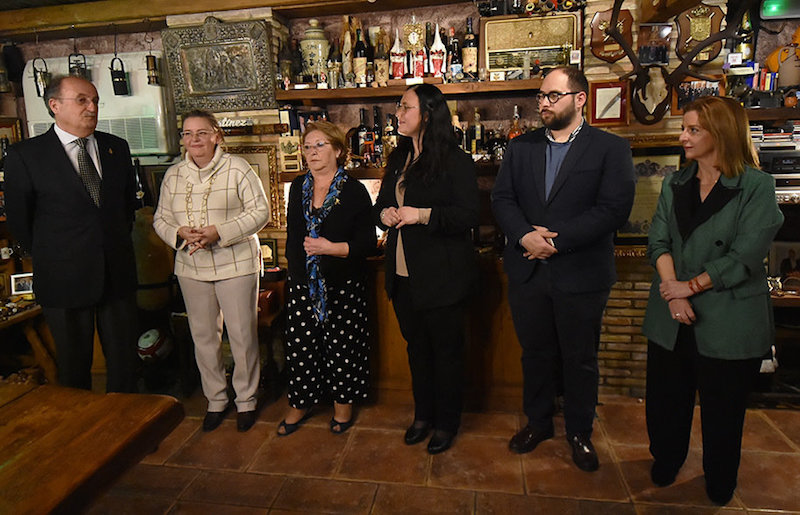 Paqui Bueno López, madrina de honor de la Cofradía del Resucitado, ha recibido en su domicilio a integrantes de la hermandad blanca cartagenera, cuya representación estuvo encabezada por la hermana mayor, Marién García Boj, y por la presidenta de la agrupación del Cristo Resucitado, Susana Mendoza, en una recepción habitual en cuaresma.