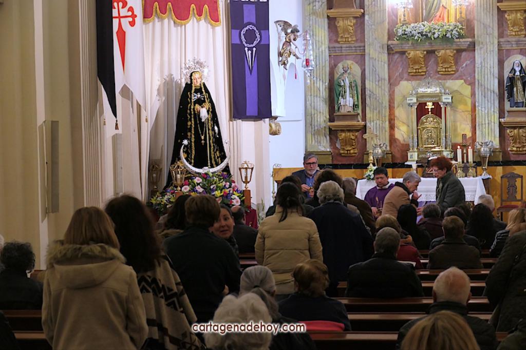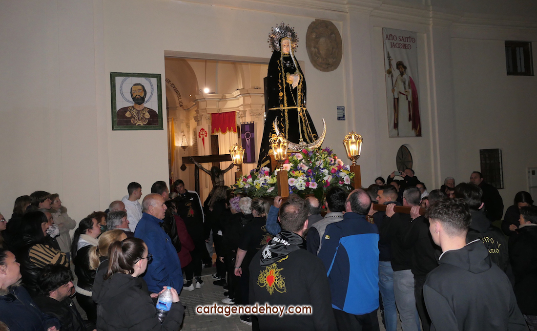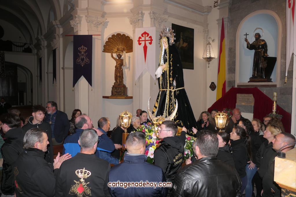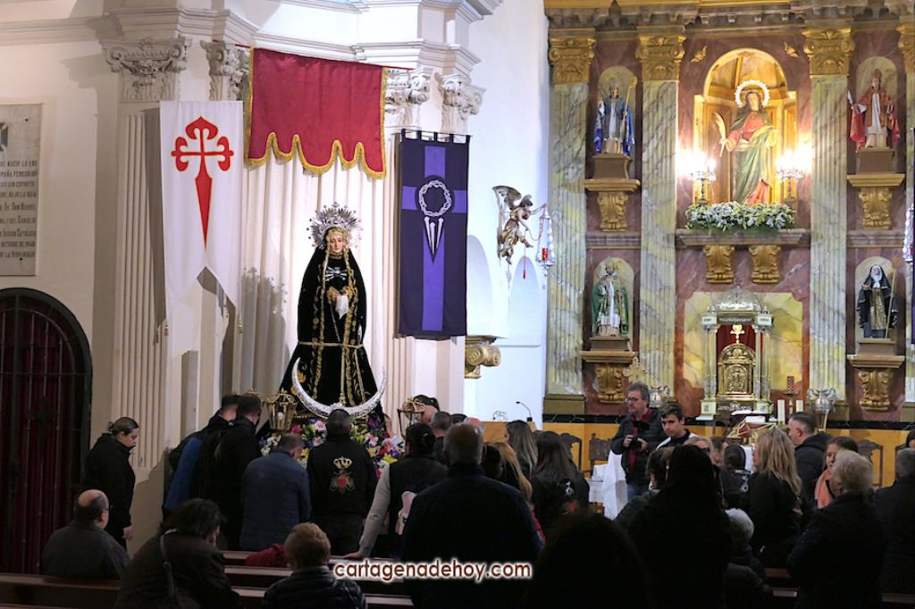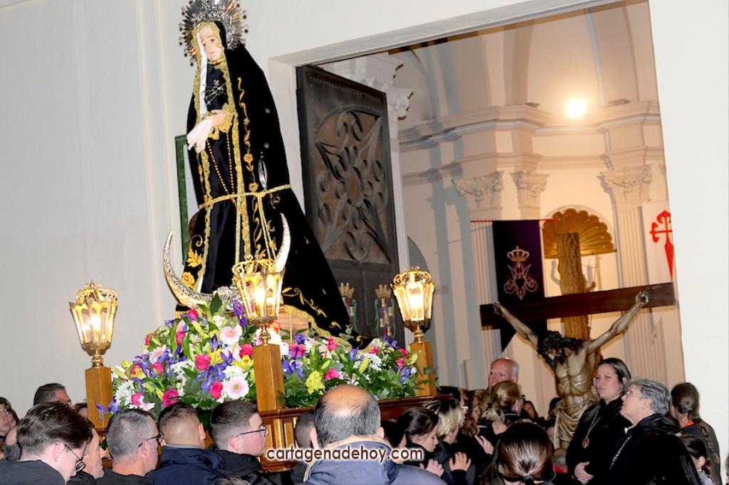 Cristo Crucificado y la Virgen de la Soledad del Calvario han protagonizado sendas procesiones por las poblaciones de la villa y condado de Santa Lucía, para después encontrarse en un emotivo momento y continuar juntos hasta el templo.