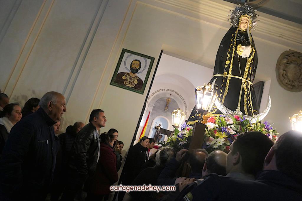 La Virgen vuelve a lugar habilitado desde que bajó el pasado domingo de su ermita del monte Calvario. Mañana regresará en romería.