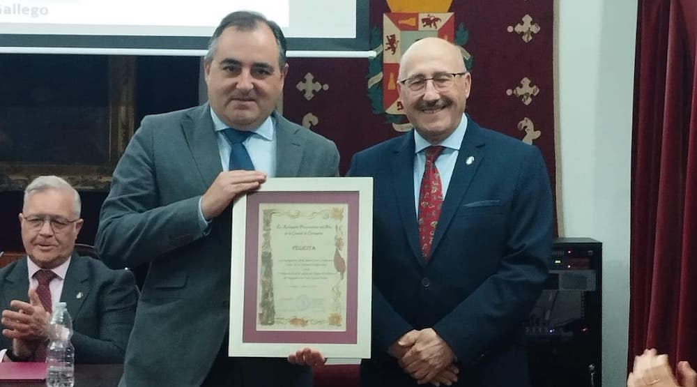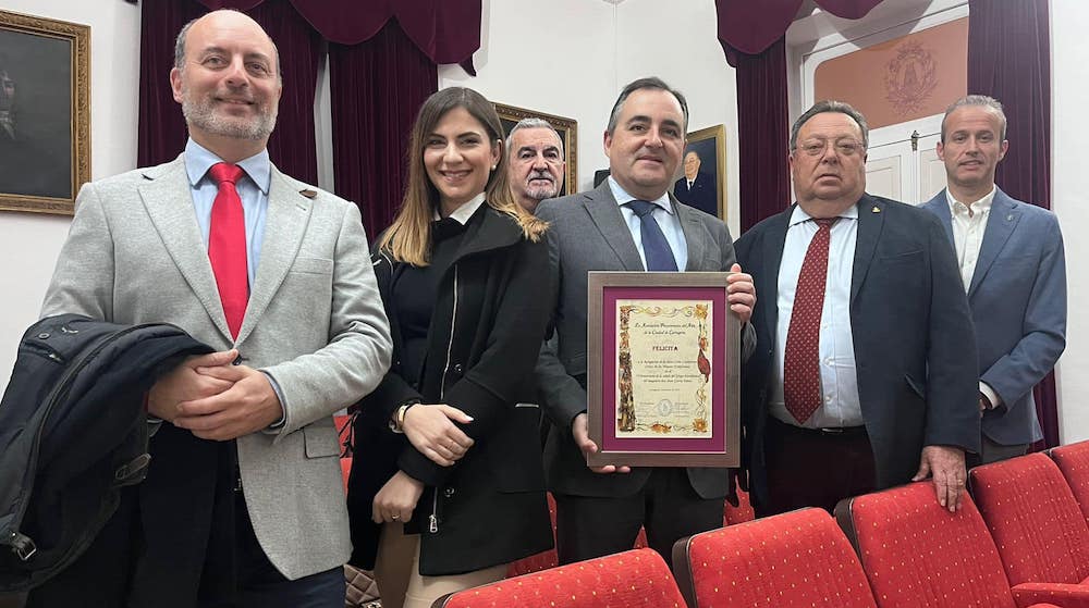 La asociación 'Procesionista del año de la ciudad de Cartagena', a través de su presidente, Pedro Negroles, ha entregado a su homónimo de la agrupación california de la Santa Cena, Alfonso Javier Agüera Pérez, una distinción para conmemorar que este año se cumplen 75 años desde que llegaron Jesús y los doce apóstoles del grupo que sale en procesión el Miércoles Santo, obras del imaginero Juan García Talens.