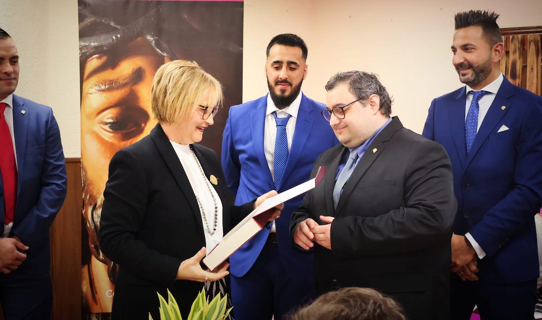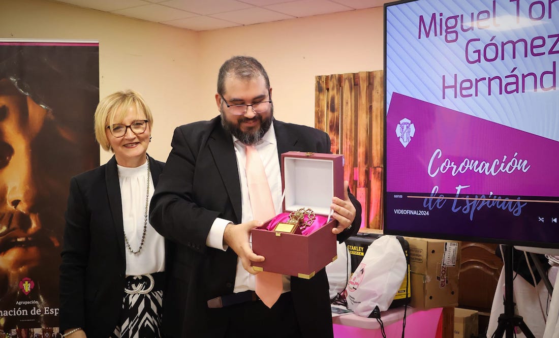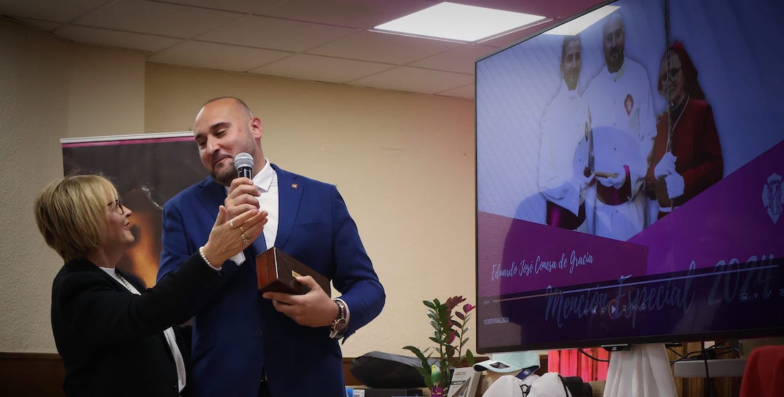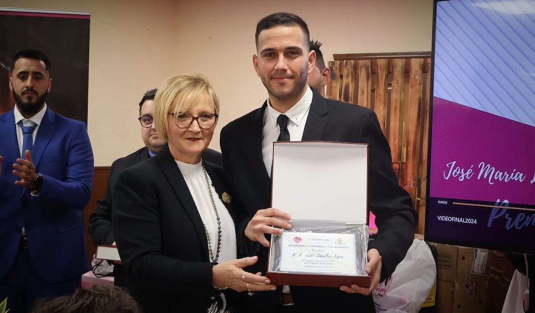 Finalmente, se otorgó a Miguel Tomás Gómez Hernández el premio 'Cristo de la coronación' por su admirable labor al frente de la vocalía de juventud de la agrupación, su compromiso y dedicación para con la agrupación.