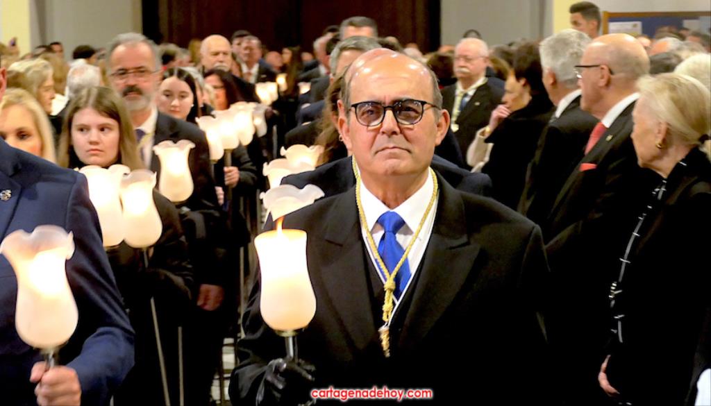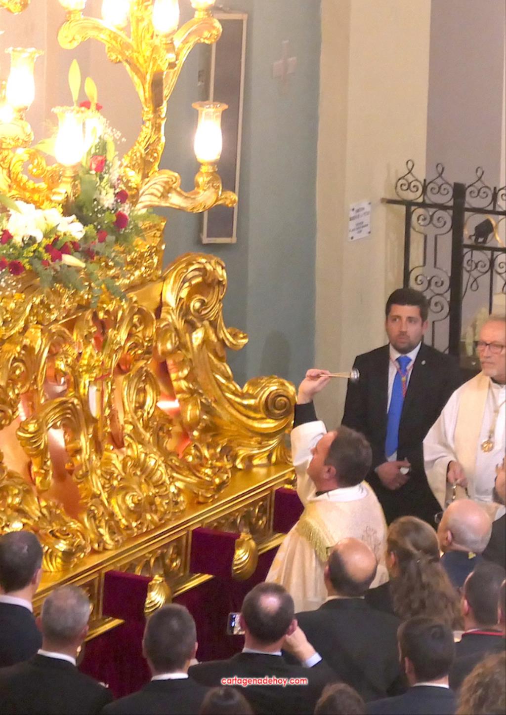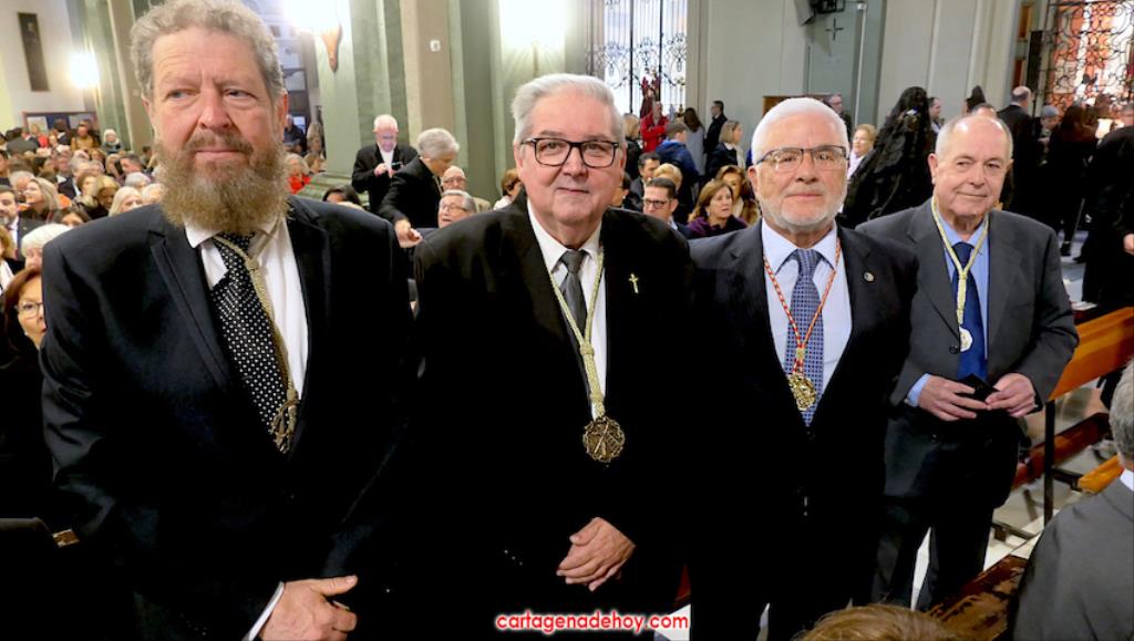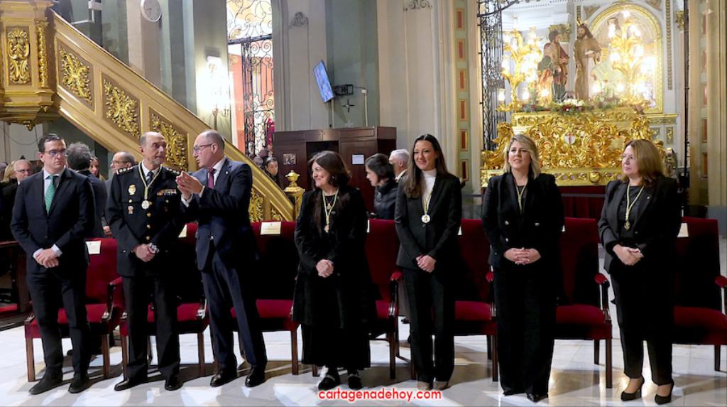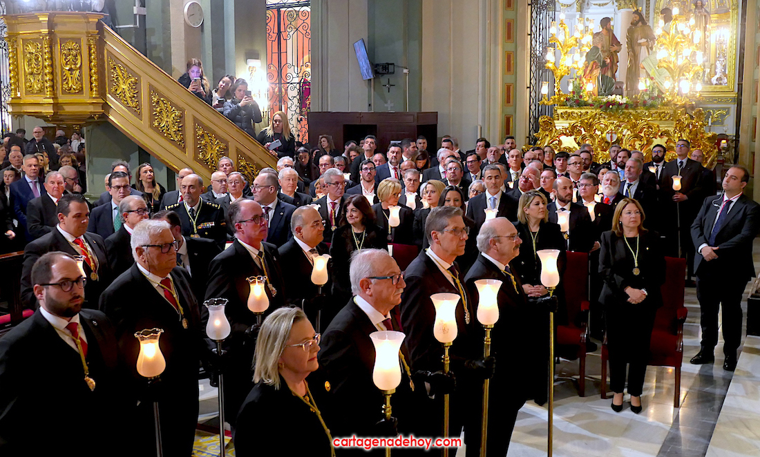 Después, Alburquerque bendición novedades californias de las próximas procesiones, como fueron el estandarte del tercio, grupo escultórico y trono de Santiago Apóstol para el nuevo paso del 'Lavatorio de los pies' del Miércoles Santo, además de un fajín donado a la Virgen del Primer Dolor por el Paso Azul de Lorca.