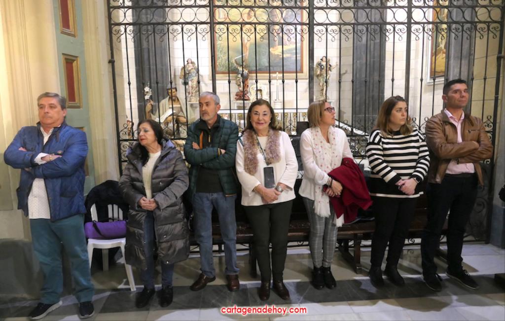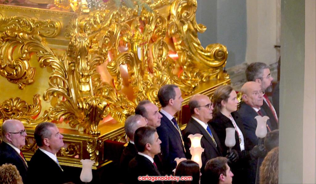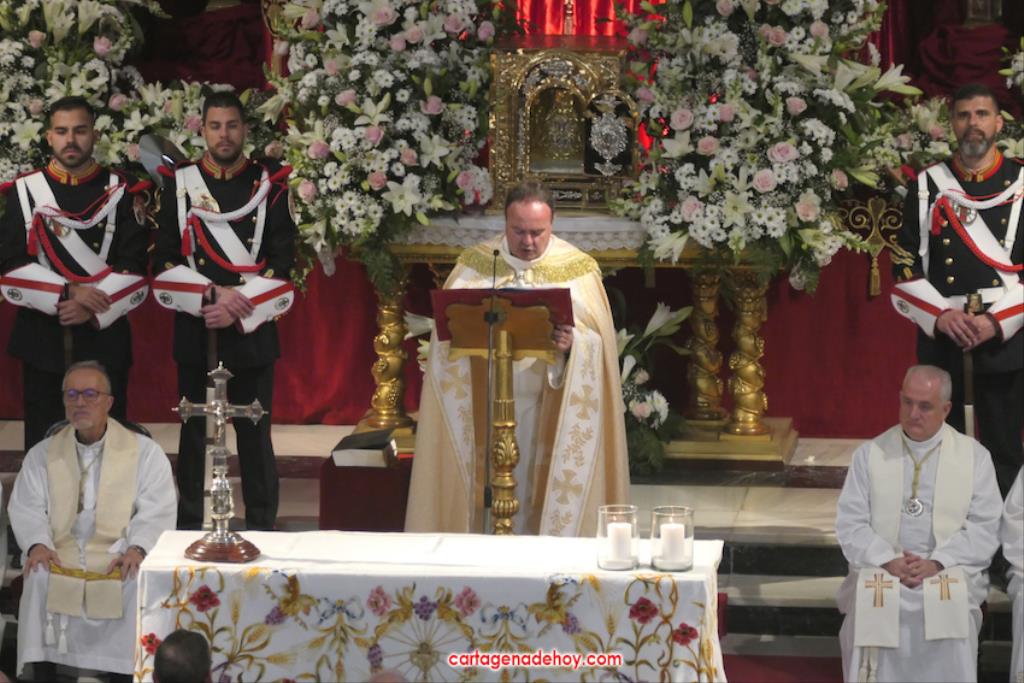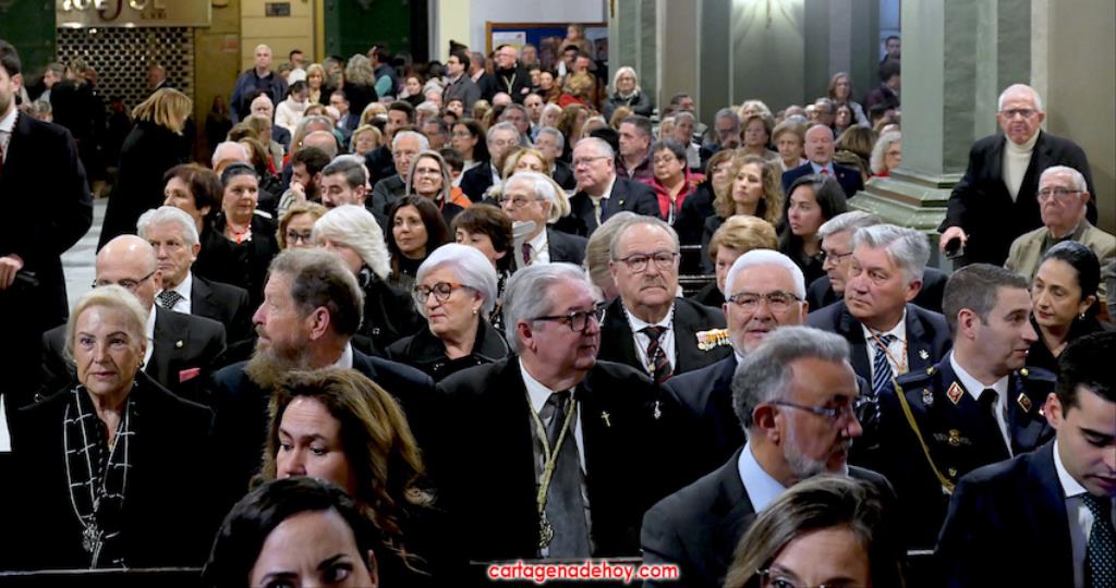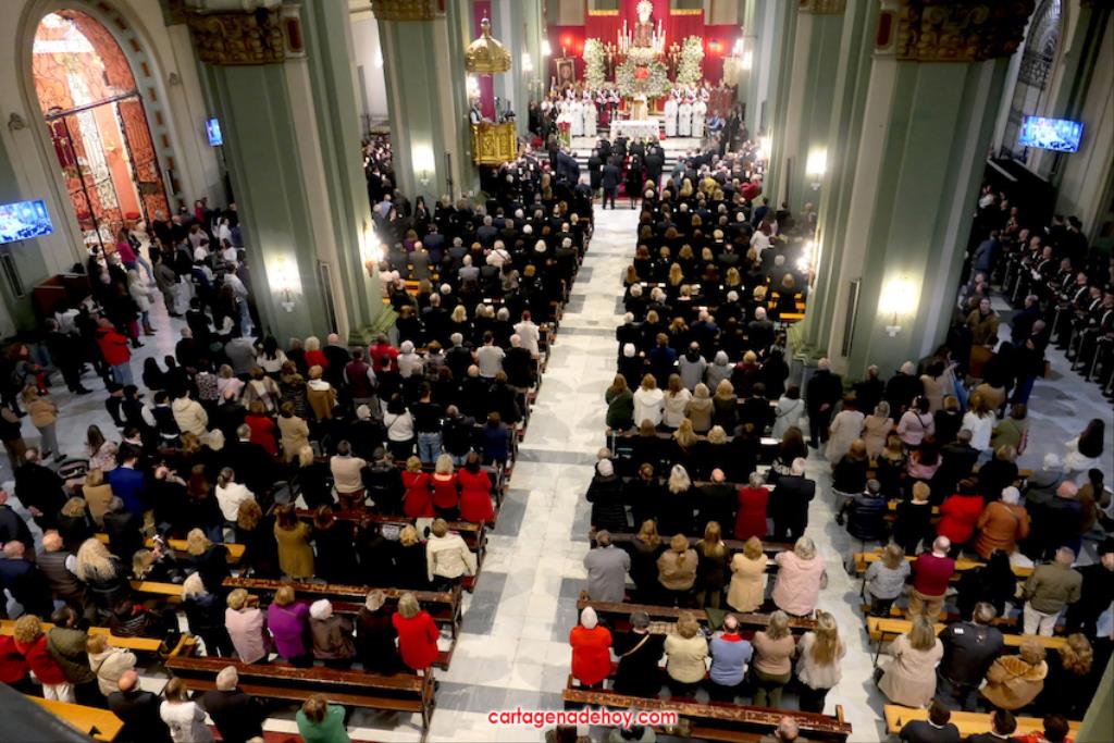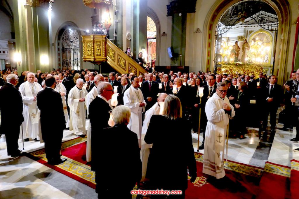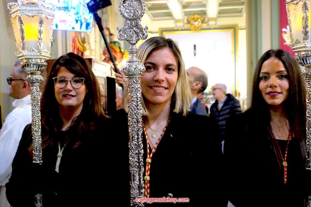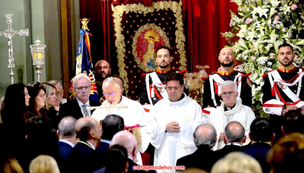 "Por María, escúchanos Señor". Fue la frase que acompañó a las peticiones formuladas a continuación desde el altar, siendo dirigidas las súplicas a la Iglesia para que acoja y celebre el evangelio de la vida, por el Papa Francisco, por el obispo Lorca Planes, por los que sufren, no tienen hogar, por los inmigrantes y refugiados, por los abandonados, por los humillados, por los que no tienen trabajo, por los que no tienen trabajo, por los que tienen problemas económicos o de tipo sentimental (rupturas, tensiones, tristezas o desengaños), por el don de la lluvia ante la sequía y por los fallecidos, por los que no tienen a nadie que se acuerde de ellos. La relación tenía dos súplicas más. Una para todos los hermanos de las cofradías pasionarias de Cartagena, "para que siempre muestren actitudes de humildad y servicio al ejemplo de María y vivan la unidad en comunión con nuestros pastores". La otra fue dirigida a gobernantes, políticos y empresarios "para que trabajen por un mundo más justo y pacífico, uniendo y no separando, donde se respete la dignidad de todos y se busquen soluciones positivas y eficaces".