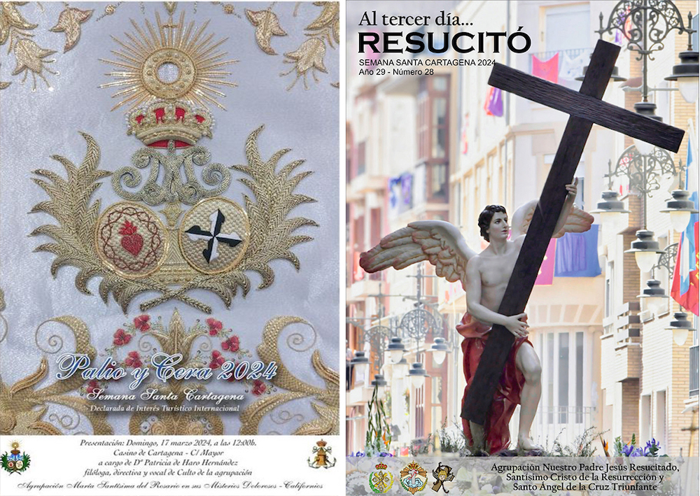 Juan Carlos de la Cerra, exhermano mayor de la Cofradía California, presenta este sábado, en el salón de actos de Teatro Romano (19 horas), ‘Al tercer día… Resucitó’, publicación digital que edita la Agrupación de Nuestro Padre Jesús Resucitado. Al día siguiente se dará a conocer la revista en papel 'Palio y cera' en el Casino de Cartagena, a partir de las 12 horas. En este caso la presentadora será Patricia de Haro Hernández, responsable de culto de la Agrupación de María Santísima del Rosario en sus Misterios Dolorosos, colectivo editor de la misma. Ambos actos son californios y con entrada gratuita.