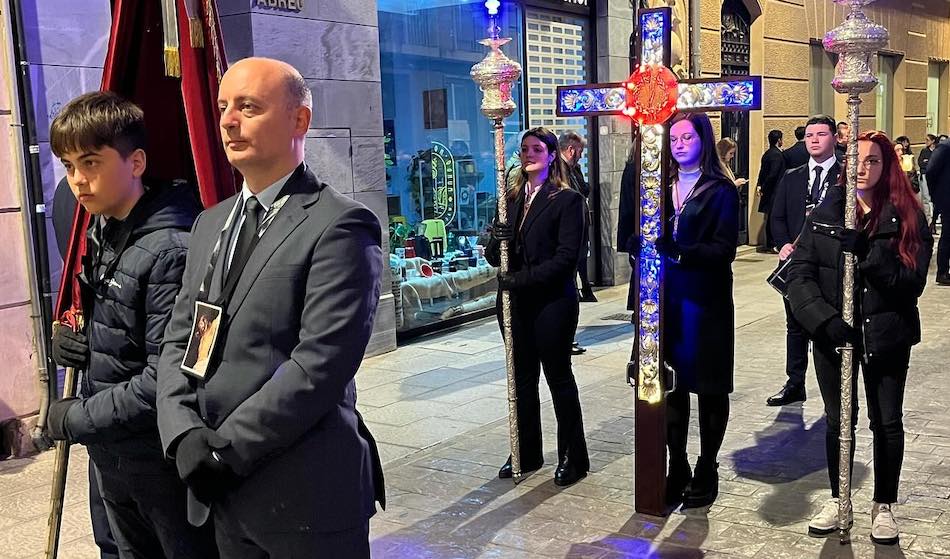 En febrero coincidió la firma de los documentos con el Vía Crucis celebrado con el Cristo de los Mineros entre la mina Agrupa Vicenta y la iglesia. Ahora, ha coincidido con el tradicional 'camino de la cruz' que el colectivo cartagenero lleva a cabo una semana antes de comenzar las procesiones en el entorno del templo de Santa María con su crucificado.