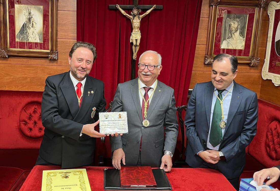 El hermanamiento entre la agrupación del Cristo de los Mineros de La Unión y la agrupación california de la Santa Cena y Cristo de los Mineros de Cartagena, que tuvo una primera parte hace un mes en la iglesia del Rosario, se ha consumado plenamente tras el segundo capítulo del acuerdo de vinculación que ha tenido lugar en la sala capitular de la Cofradía California, el cual firmaron los respectivos presidentes Alfonso Castejón y Alfonso Agüera en presencia del hermano mayor encarnado, Pedro Ayala.