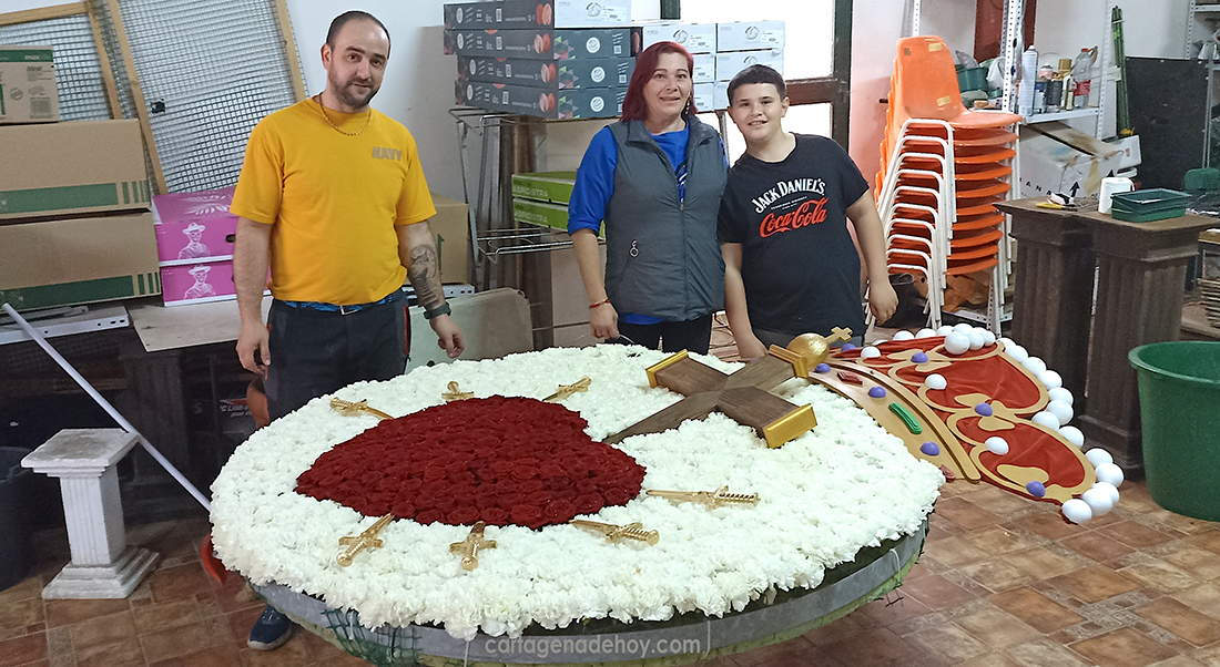 Por su parte, trabajadores del Ayuntamiento de Cartagena han estado montando ante la basilica las estructuras donde se depositaran las flores que llevaran las numerosas asociaciones del municipio.