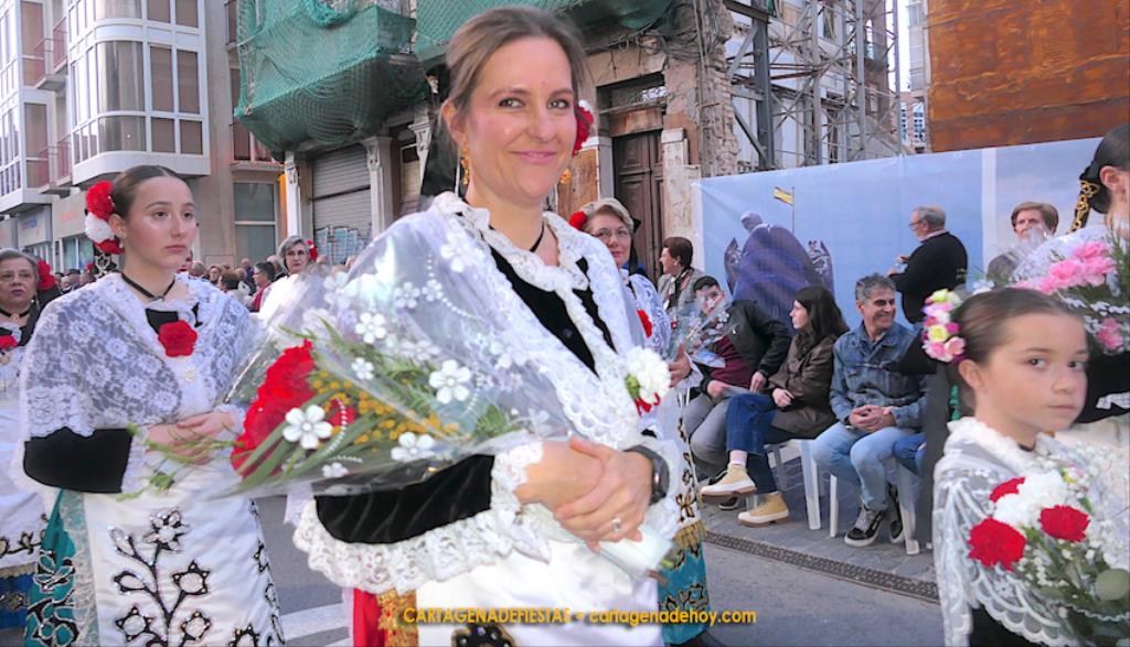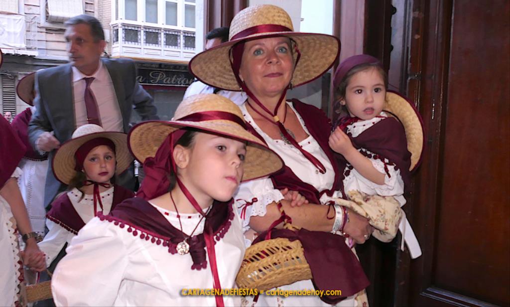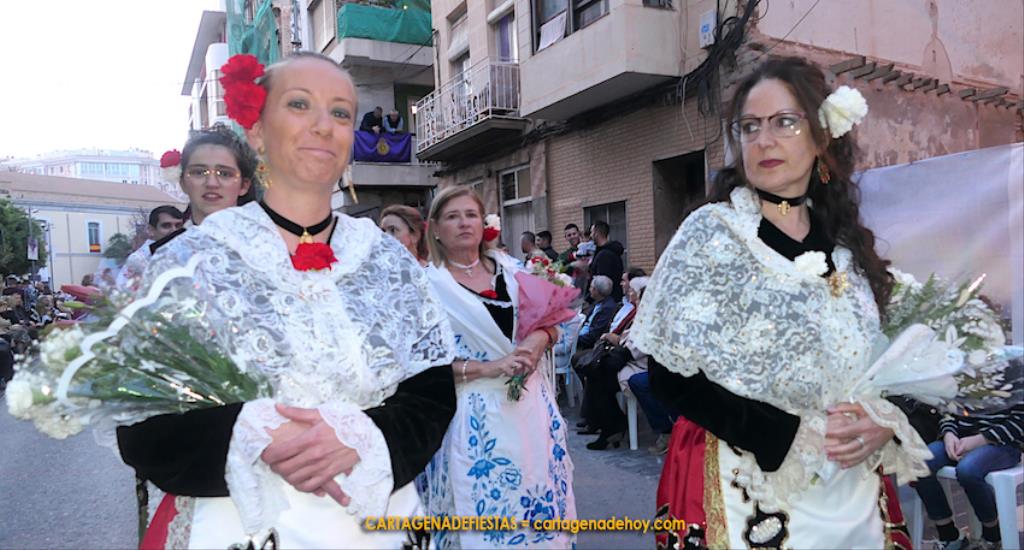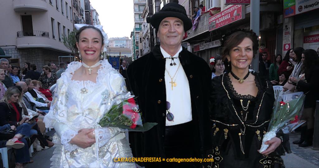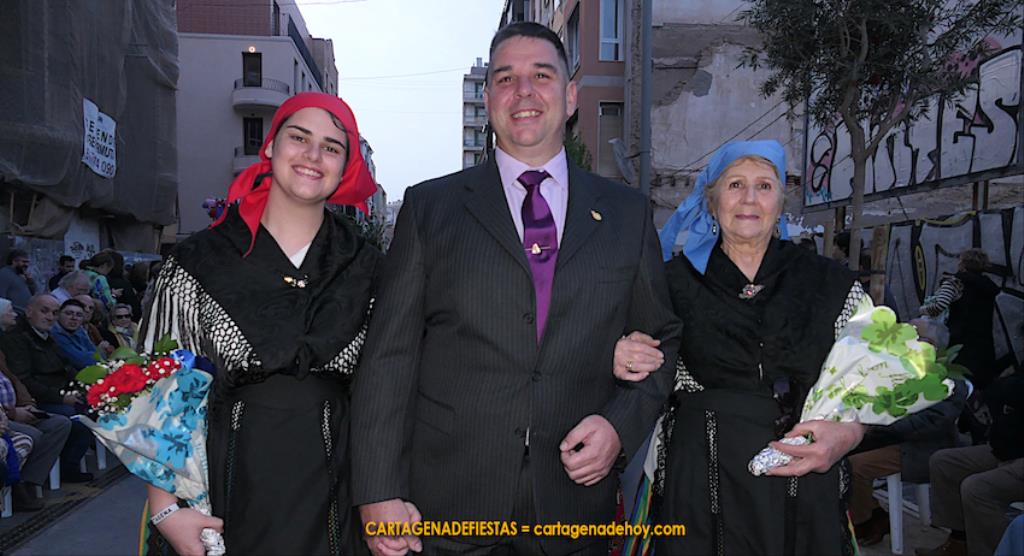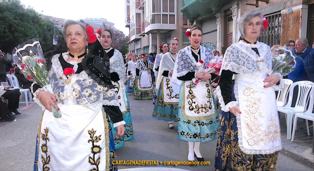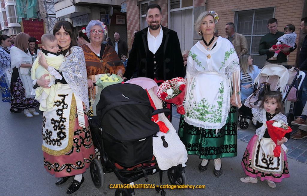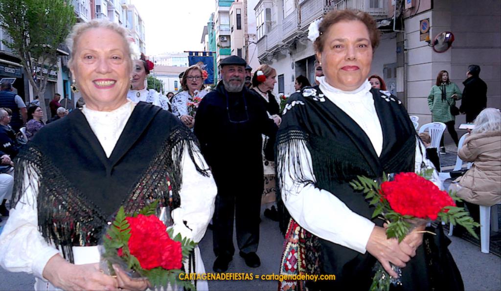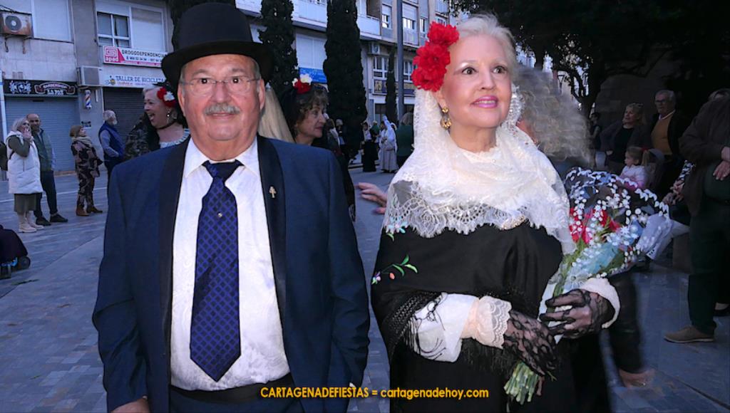 Más apuntes. Un valenciano ha venido expresamente para estar en este desfile con los molineros de Molinos Marfagones. La diputa regional María Casajús ha sido captada por el grupo de Los Dolores, los ediles Pencho Soto, Toñi Ruiz y Manuel Torres han ido en los colectivos de sus tierras natales, respectivamente, Estrecho de San Ginés-Llano del Beal, folclore de La Palma y los pescadores de Santa Lucía. Al principio del desfile, como partidos políticos, pasaron Sí Cartagena, Movimiento Ciudadano y Partido Popular, quedando en el interior de la basílica varios ediles de este último, de los que Diego Ortega y Nacho Jáudenes llevaban ropaje tradicional, al igual que la alcaldesa, Noelia Arroyo. Les precedieron en el desfile las cofradías marraja, california y resucitada. En total, han sido 55 los grupos participantes con integrantes que es posible que abarcan todas las edades entre uno y 91 años.