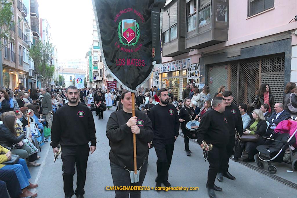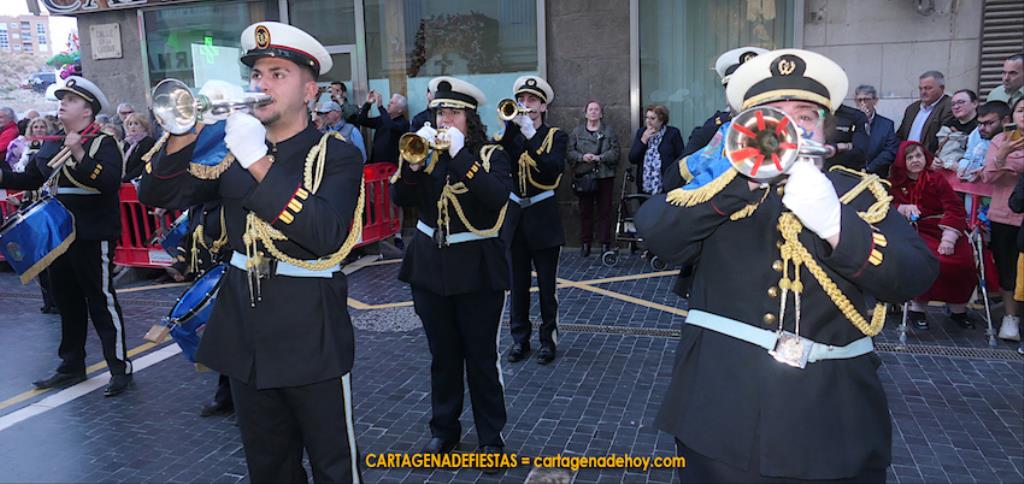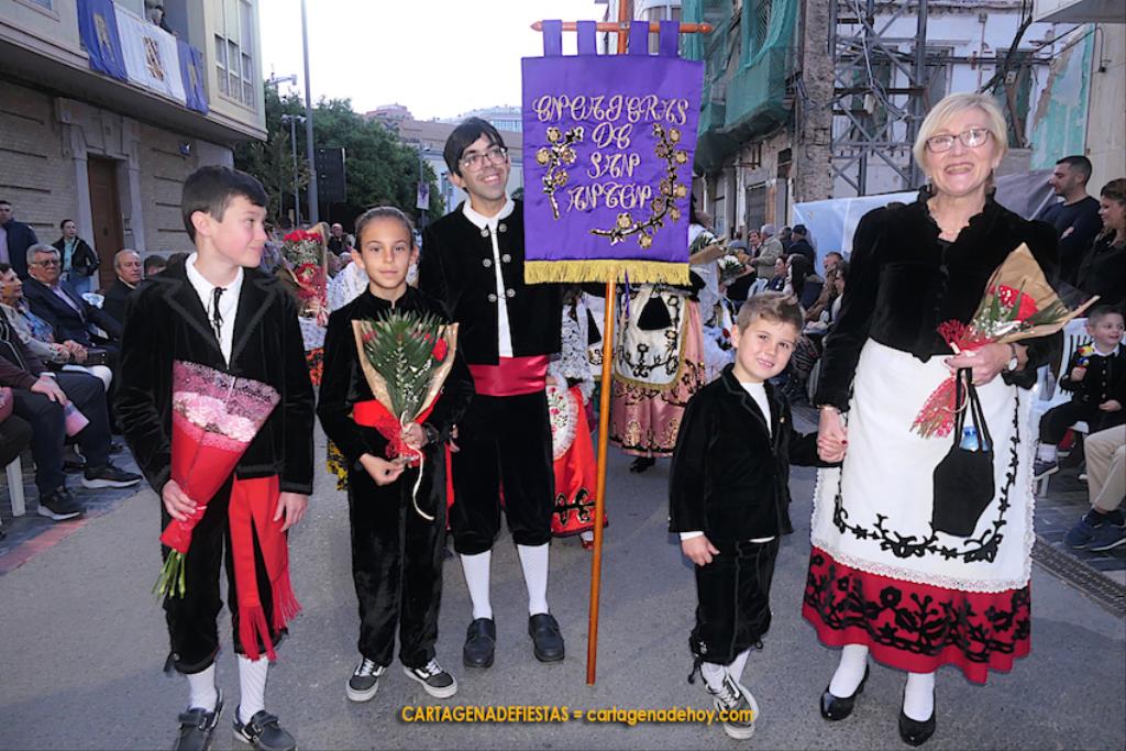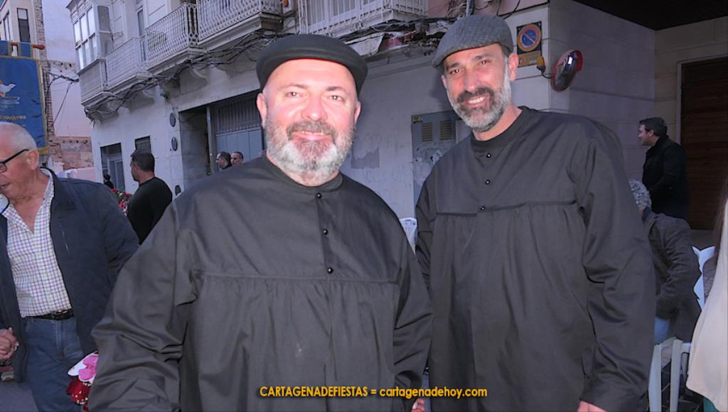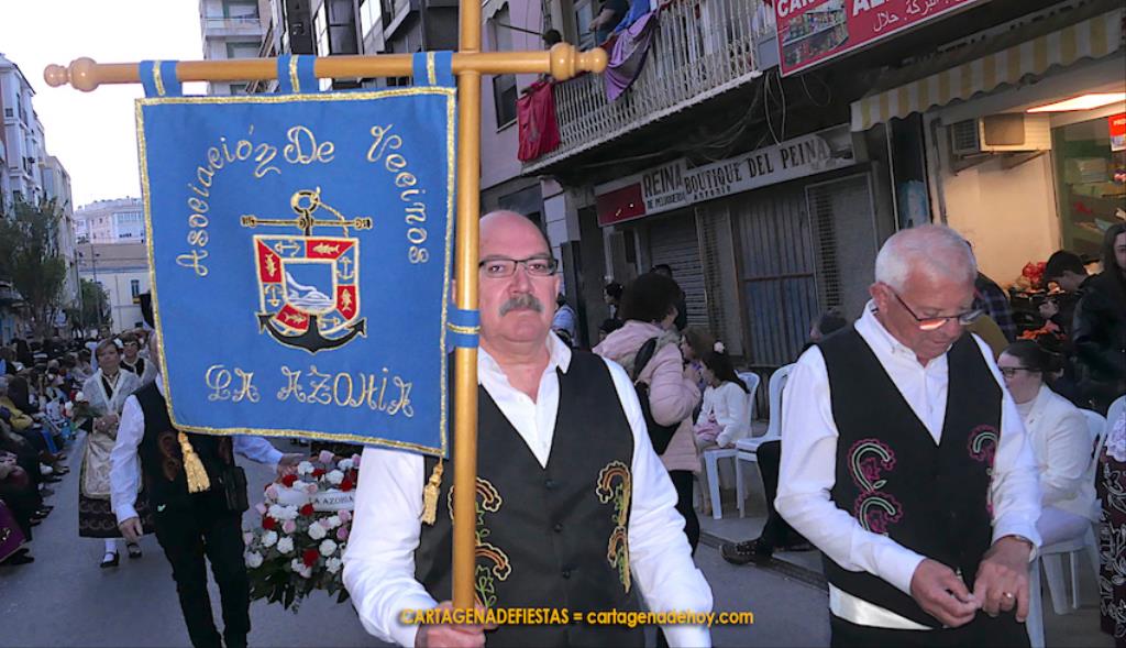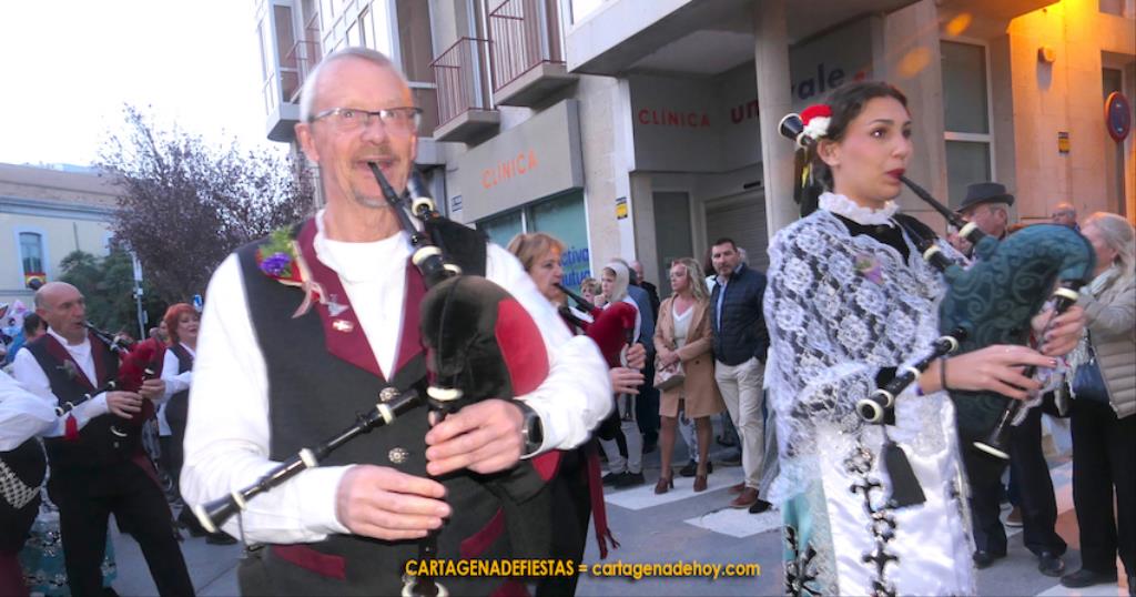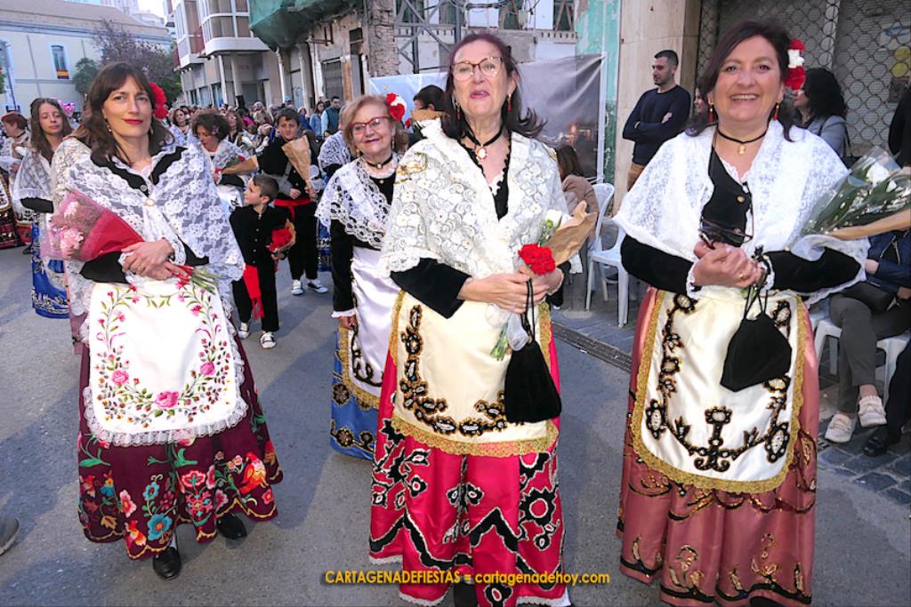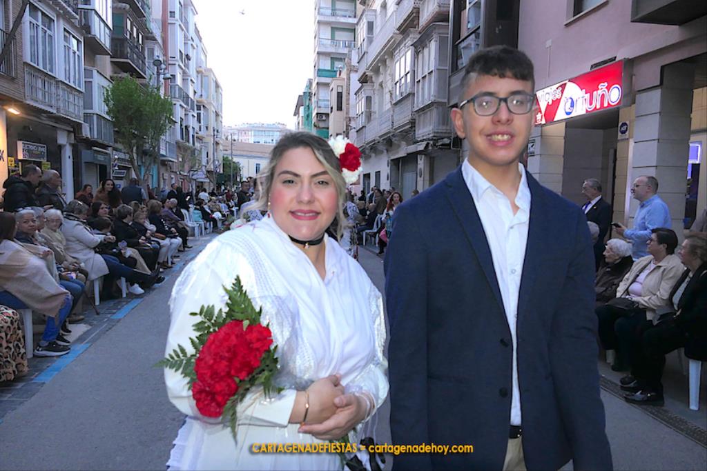 Más apuntes. Un valenciano ha venido expresamente para estar en este desfile con los molineros de Molinos Marfagones. La diputa regional María Casajús ha sido captada por el grupo de Los Dolores, los ediles Pencho Soto, Toñi Ruiz y Manuel Torres han ido en los colectivos de sus tierras natales, respectivamente, Estrecho de San Ginés-Llano del Beal, folclore de La Palma y los pescadores de Santa Lucía. Al principio del desfile, como partidos políticos, pasaron Sí Cartagena, Movimiento Ciudadano y Partido Popular, quedando en el interior de la basílica varios ediles de este último, de los que Diego Ortega y Nacho Jáudenes llevaban ropaje tradicional, al igual que la alcaldesa, Noelia Arroyo. Les precedieron en el desfile las cofradías marraja, california y resucitada. En total, han sido 55 los grupos participantes con integrantes que es posible que abarcan todas las edades entre uno y 91 años.