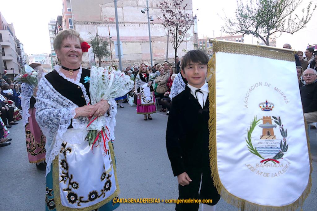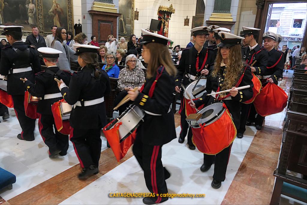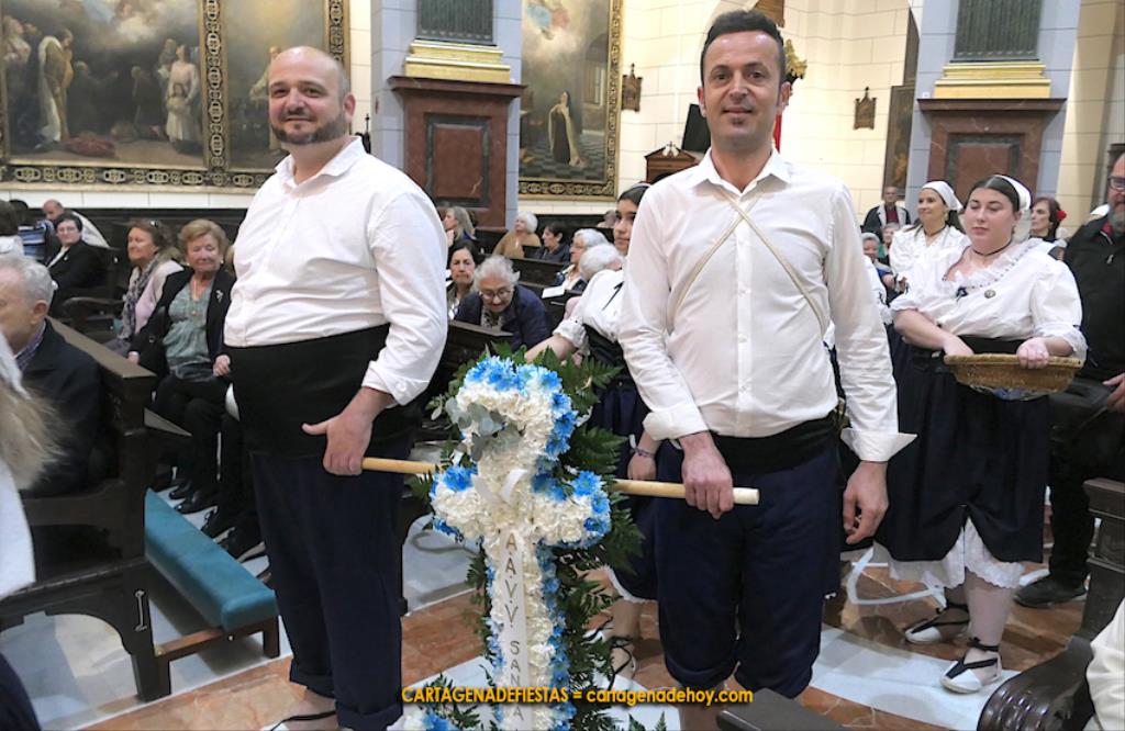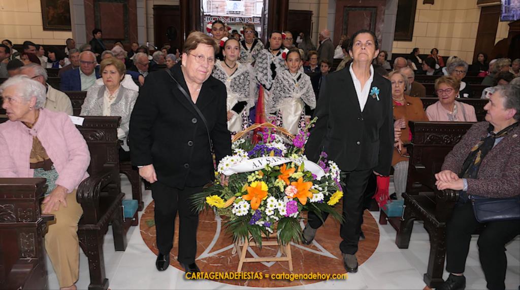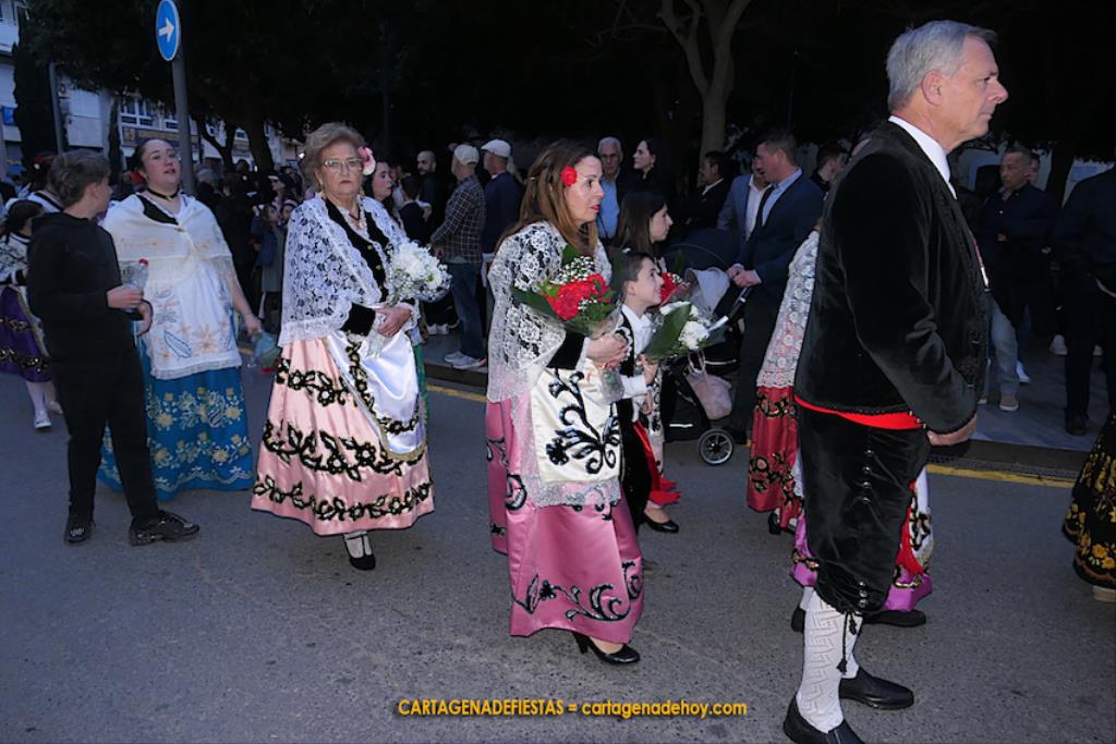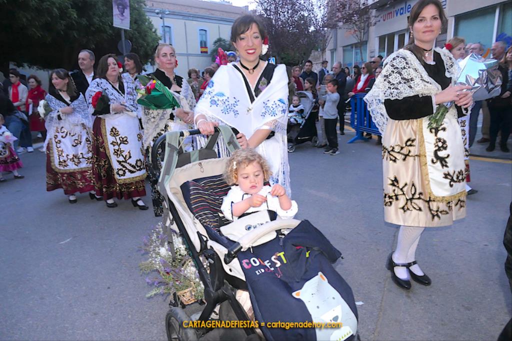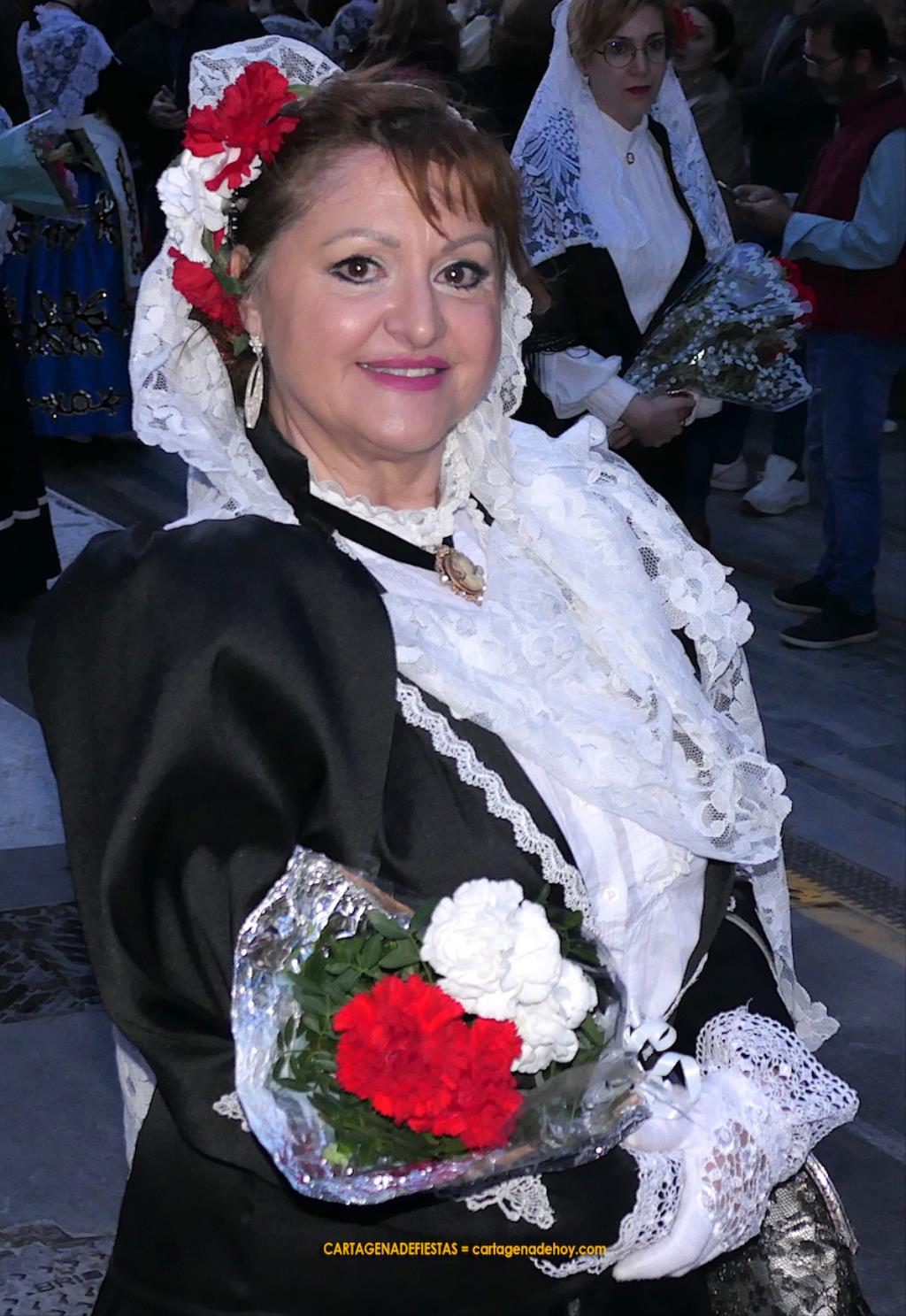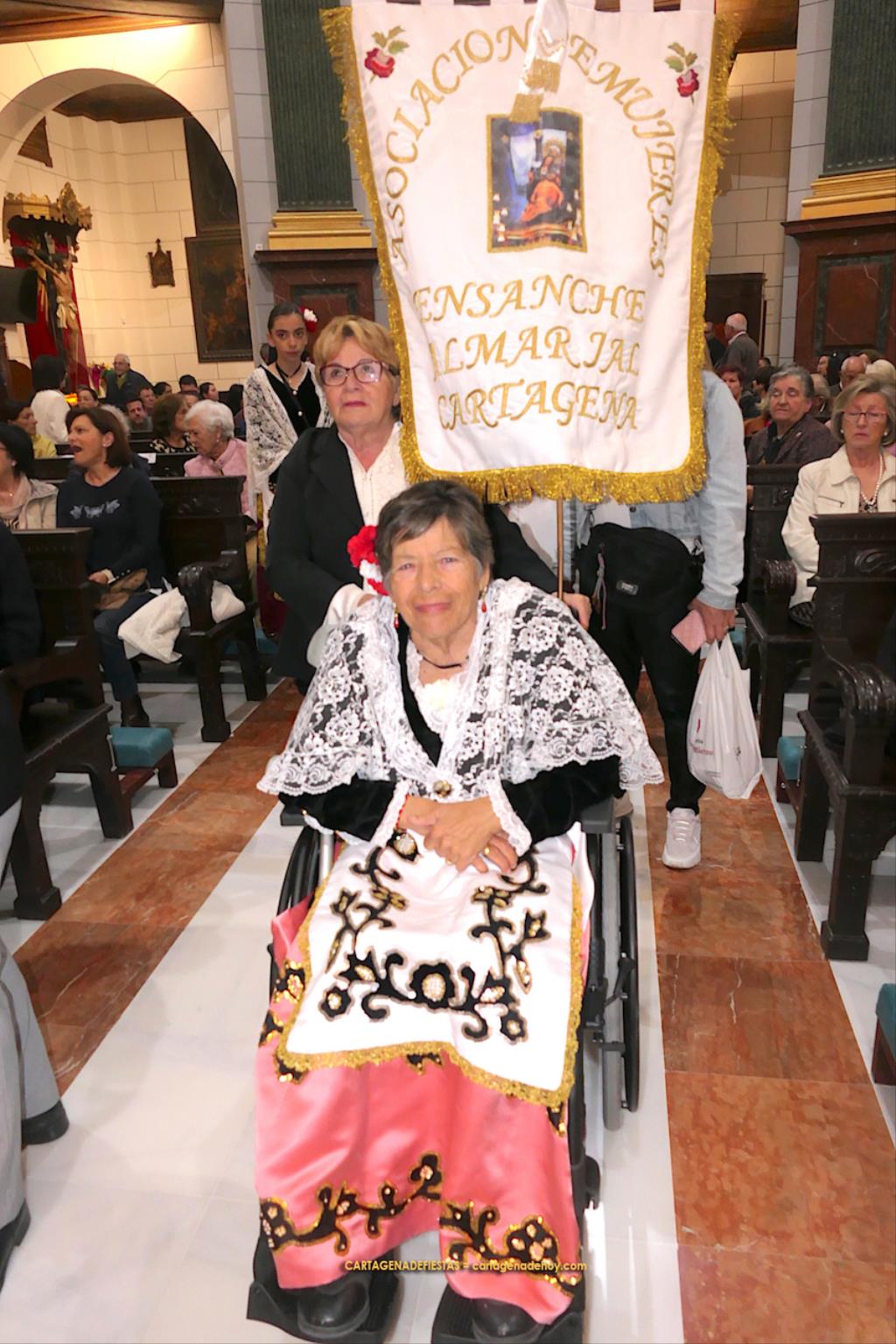 Paola tiene 3 añitos y, desde que nación, su madre, Ángela (procesionista del Cristo de la Misericordia), la lleva ante la Virgen de la Caridad, a la que entrega un ramo de flores. En el otro extremo está Isabel Quiñonero, de 91 años de edad y que lleva más de medio siglo acudiendo al templo. Son dos ejemplos de las muchas vivencias que se dan cada año en el Viernes de Dolores con unos dos mil participantes en el desfile que más representan a lo que es el municipio de Cartagena.