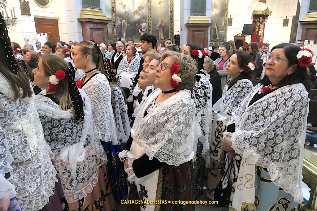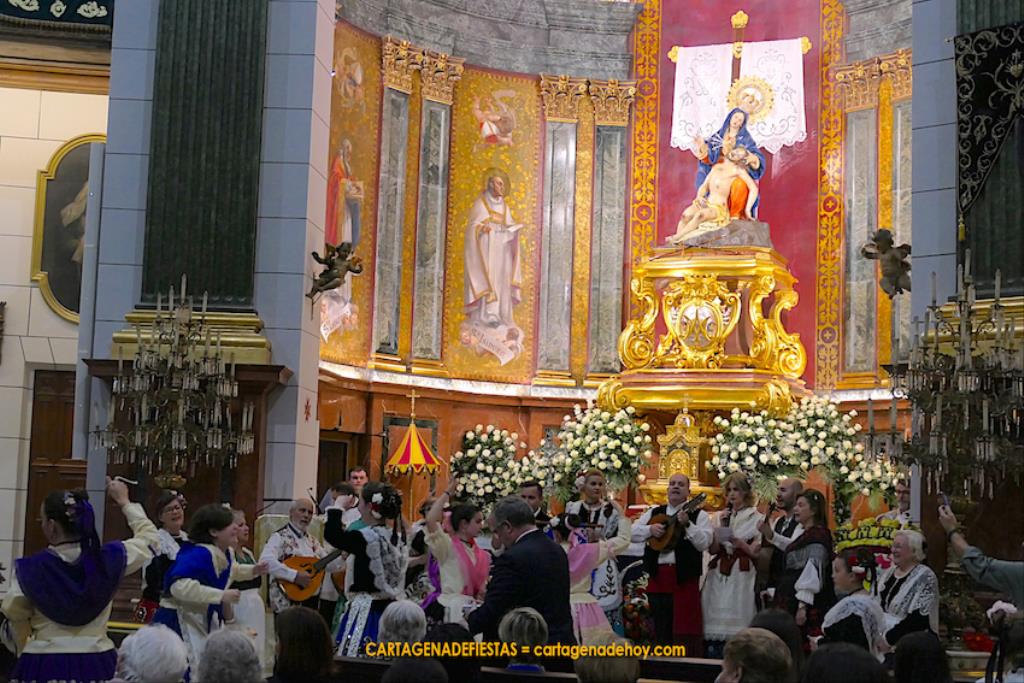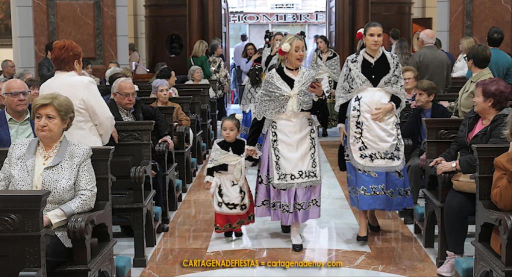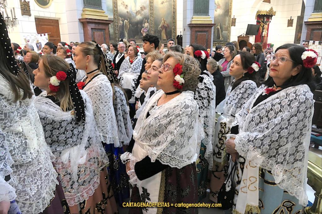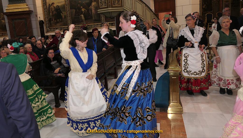 Son sólo algunos ejemplos observado en este gran desfile de los pueblos y barrios de Cartagena dentro de la basílica, pues en el exterior también dan ‘la buena nota’ las bandas de música y no faltan los bailes del Grupo Folclórico ‘Ciudad de Cartagena’, este año con más capas en sus varones, lo que potencia la estética visual junto a las faldas de su féminas.