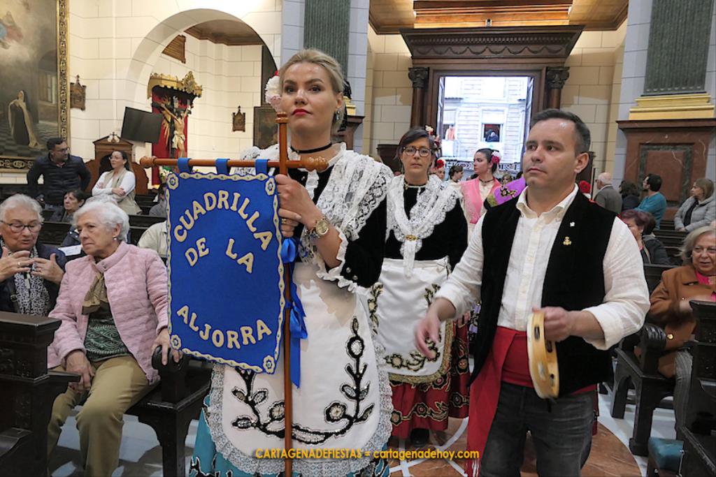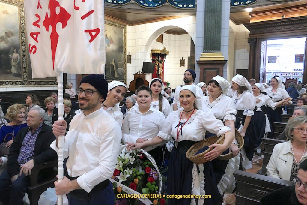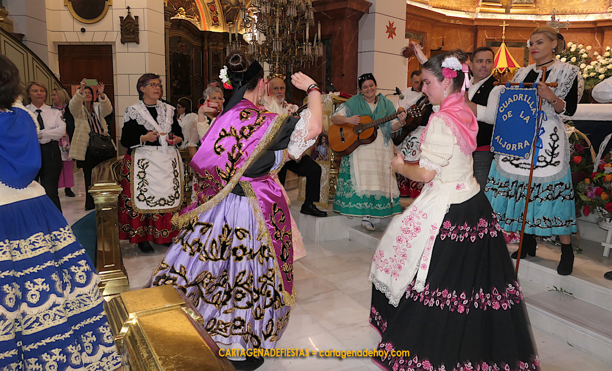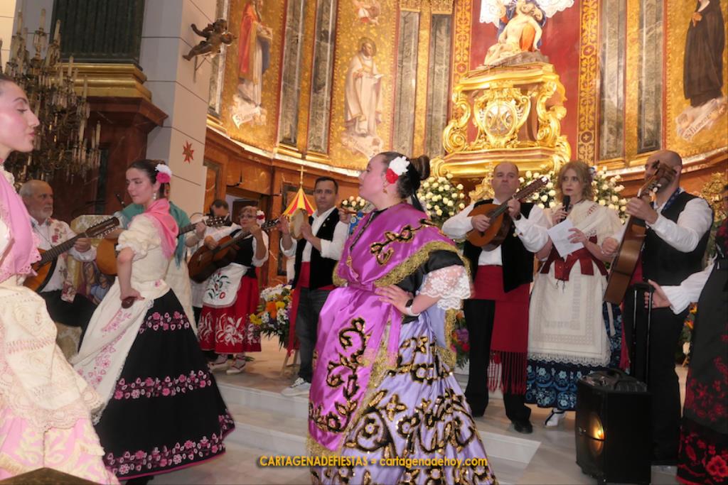 Son sólo algunos ejemplos observado en este gran desfile de los pueblos y barrios de Cartagena dentro de la basílica, pues en el exterior también dan ‘la buena nota’ las bandas de música y no faltan los bailes del Grupo Folclórico ‘Ciudad de Cartagena’, este año con más capas en sus varones, lo que potencia la estética visual junto a las faldas de su féminas.