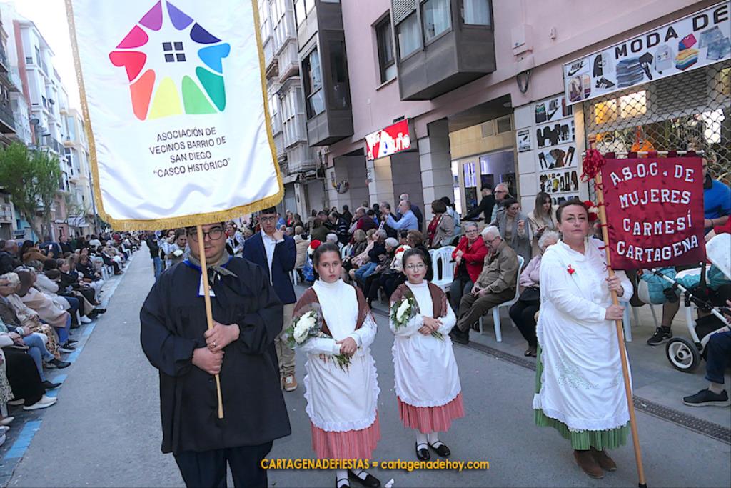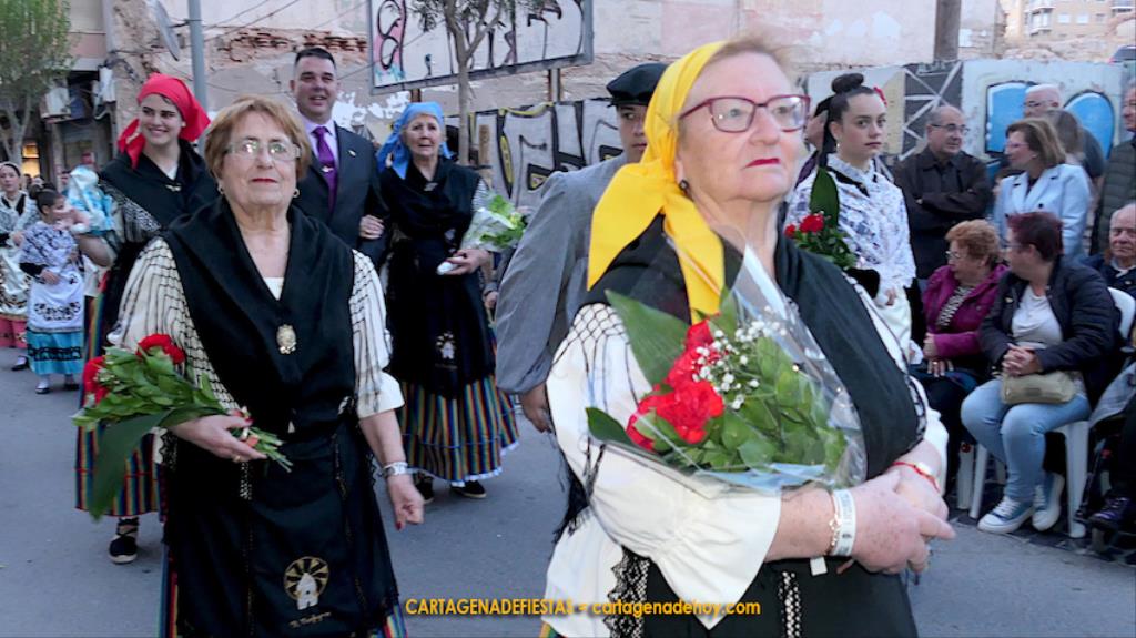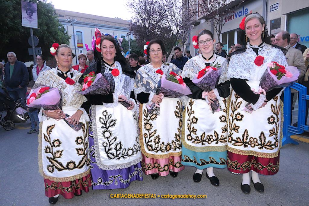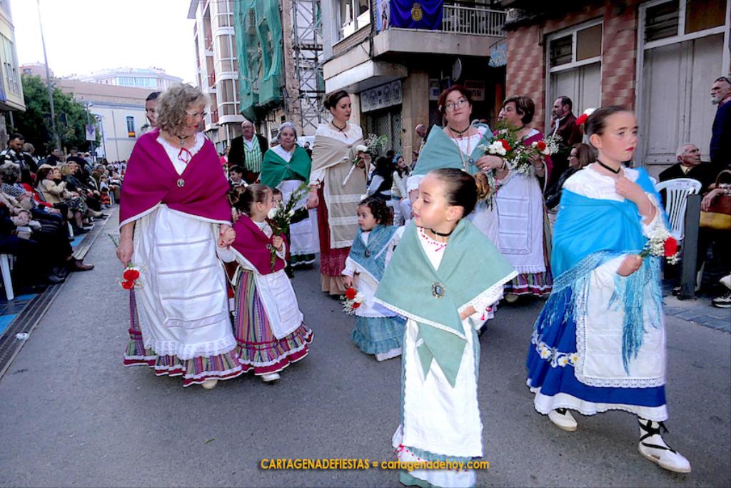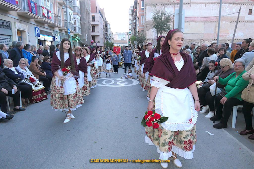Siguen luciendo los trajes más fieles a los residentes en nuestros campos, mientras que la asociación Cartagena de Levante no falta a esta cita con el antiguo vestuario de la época modernista. Estos dos grupos, junto a los ‘Cuarentunos’, son los que cierra un gran desfile que dura algo más de tres horas desde que sale de la plaza del Ayuntamiento hasta que llega a la remozada casa (este año se estrenan los arreglos y reformas) de la Virgen de la Caridad.