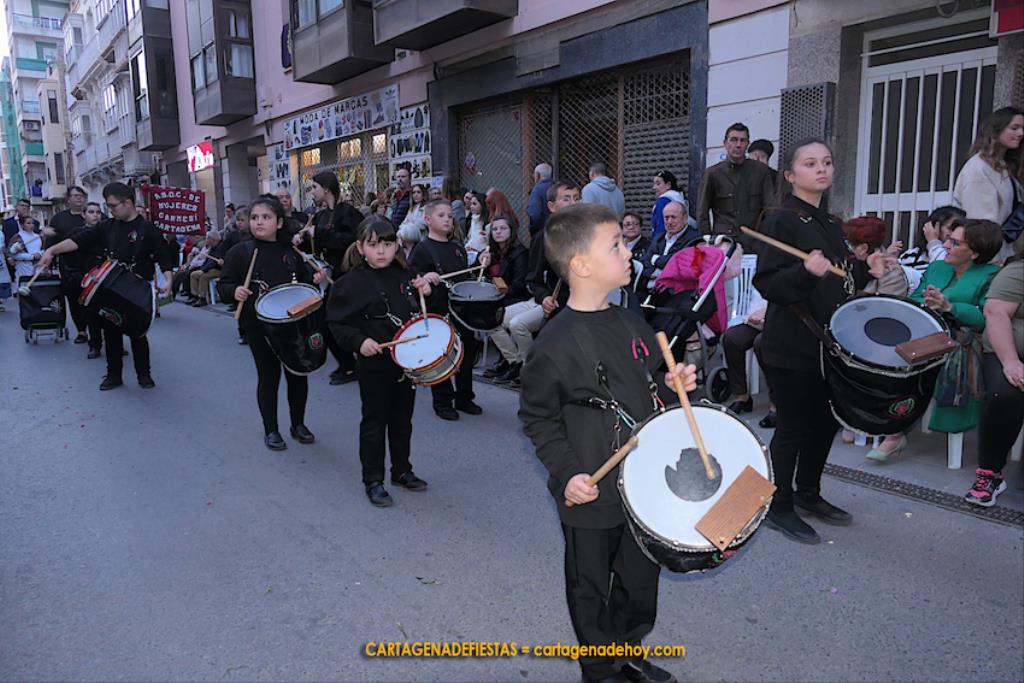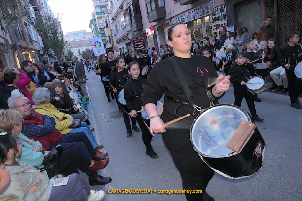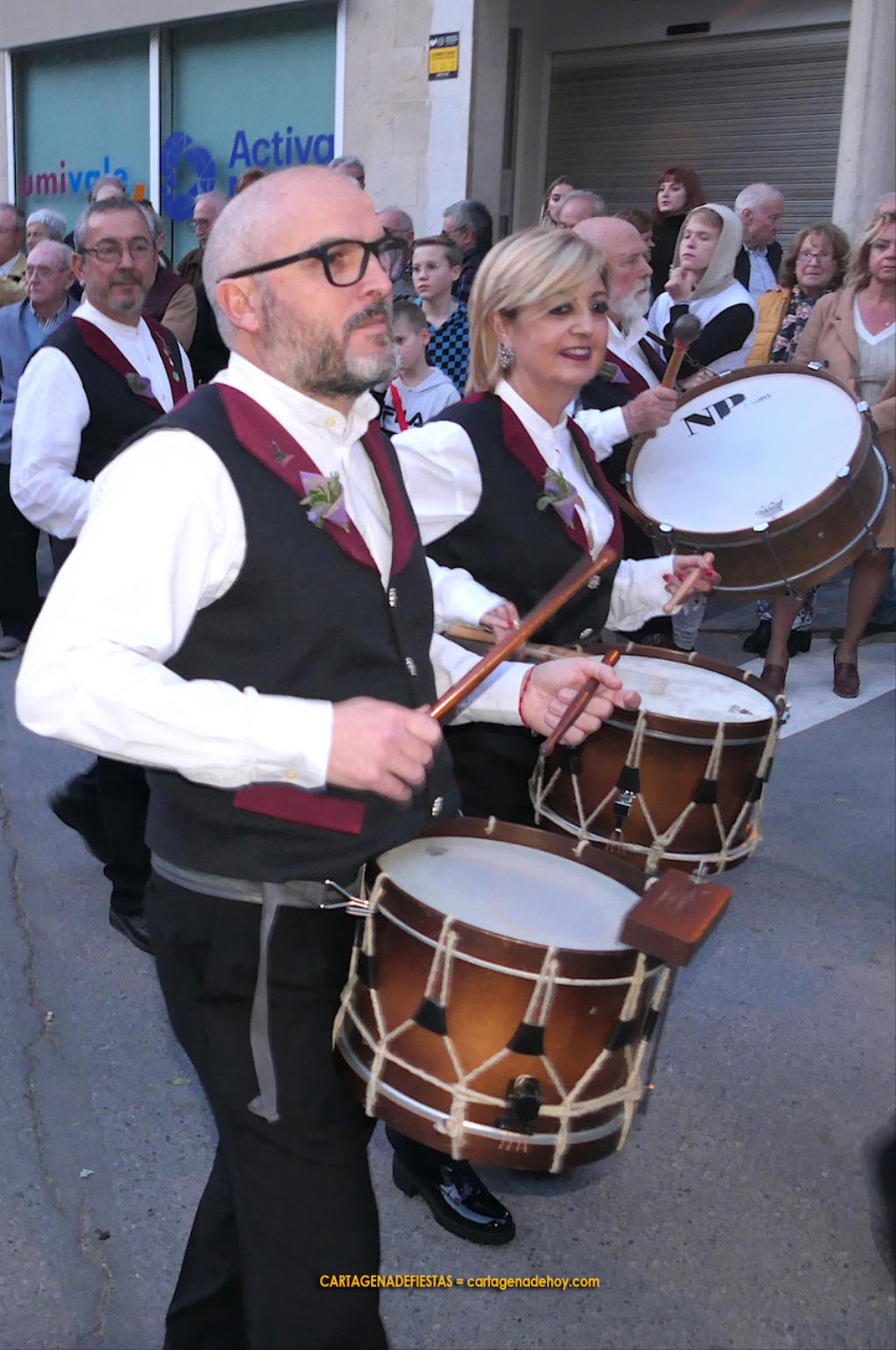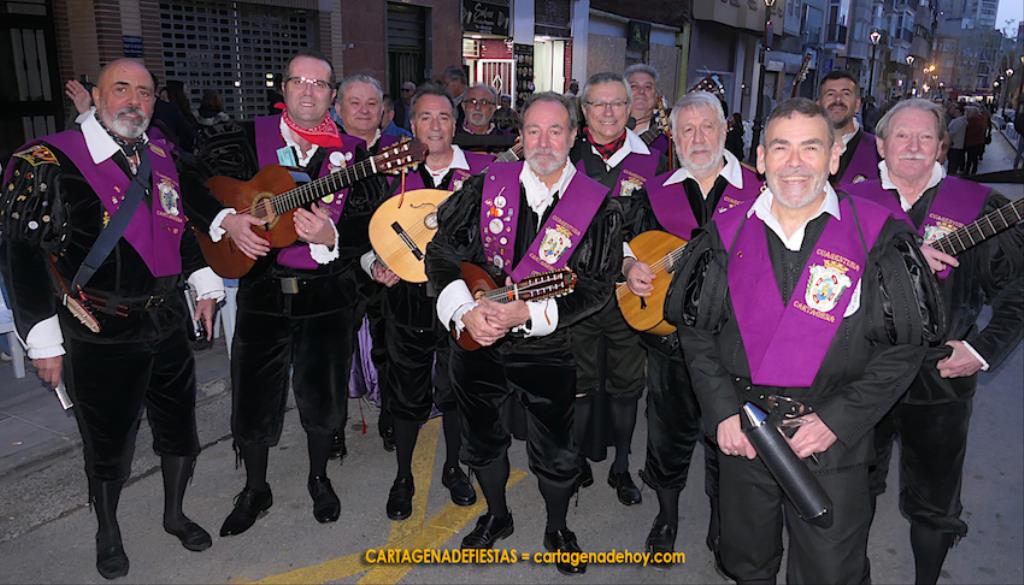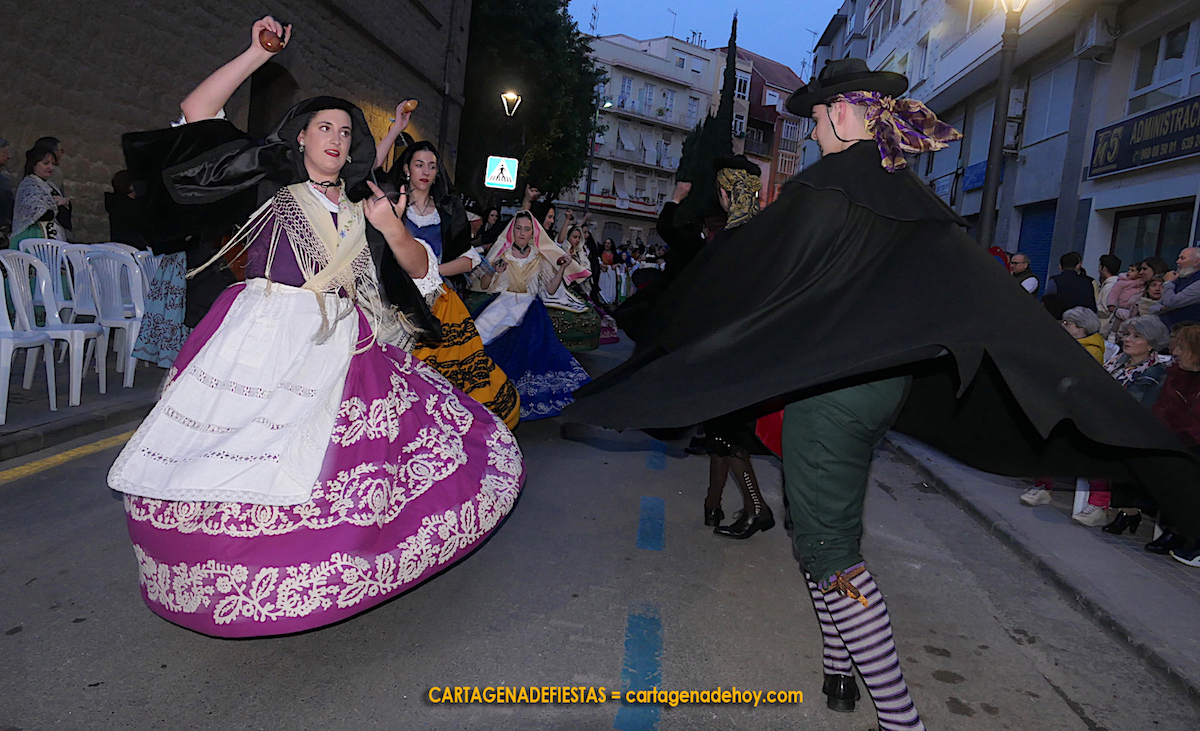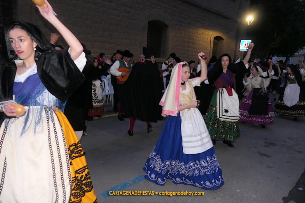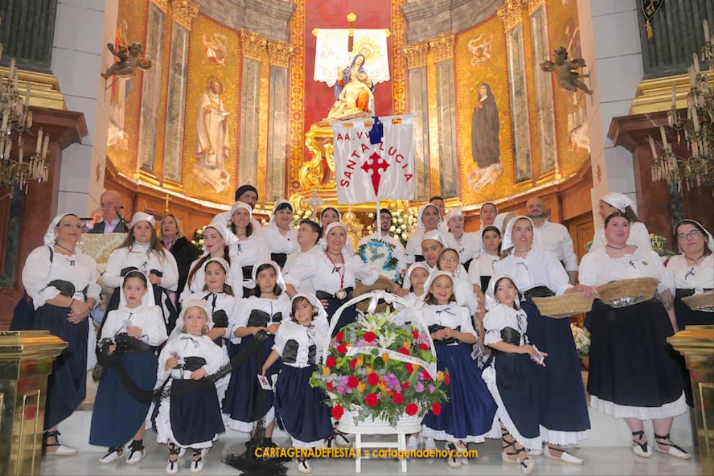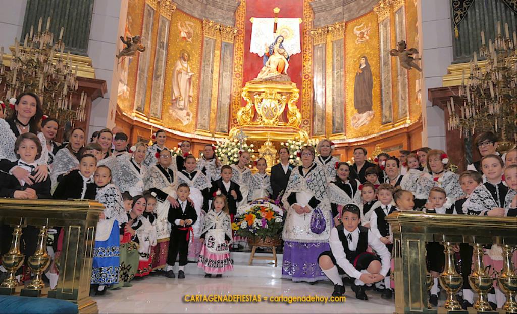 El Viernes de Dolores es el ‘Día de la patrona’ en Cartagena, pero también un gran día para muchos de sus ‘hijos’, que acuden a ella llenos de alegría con vestuarios típicos que llenan de colorido las calles del casco antiguo y la basílica, lugar donde algunos ‘estallan’ cantando la Salve (vecinos del Ensanche-Almarjal), bailando (grupo de La Aljorra), tocando las trompetas (Fuente de cubas), cantando (Cuarentunos), etc.