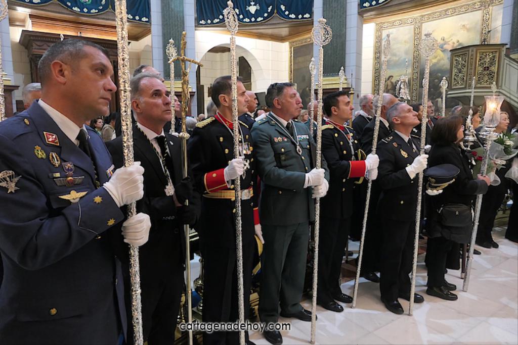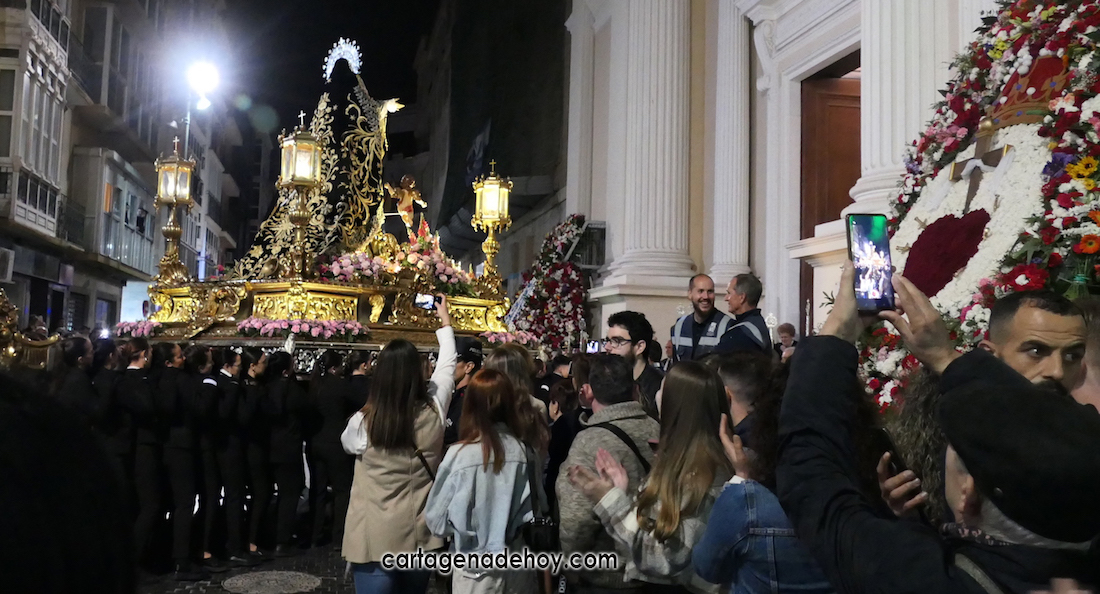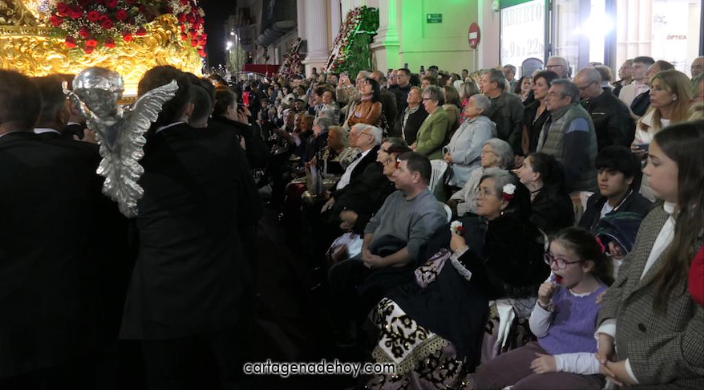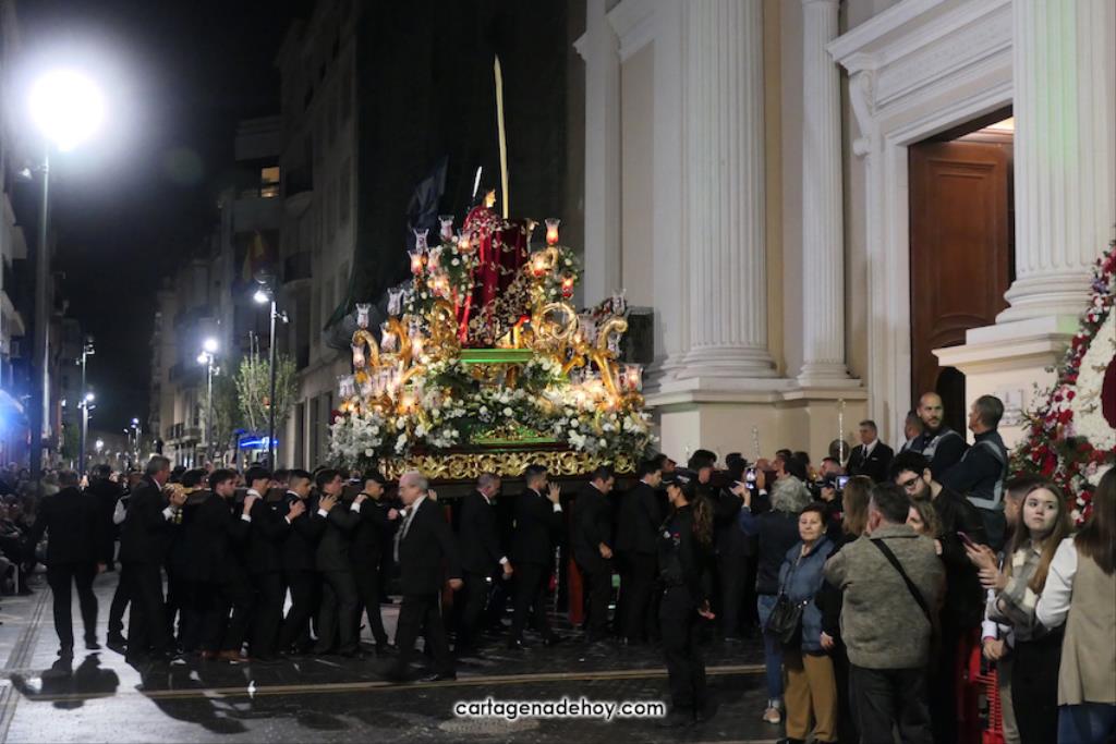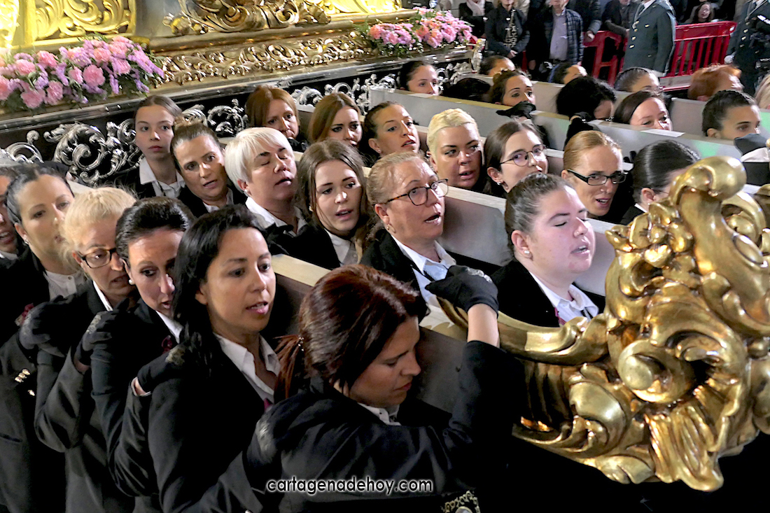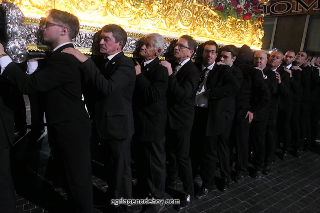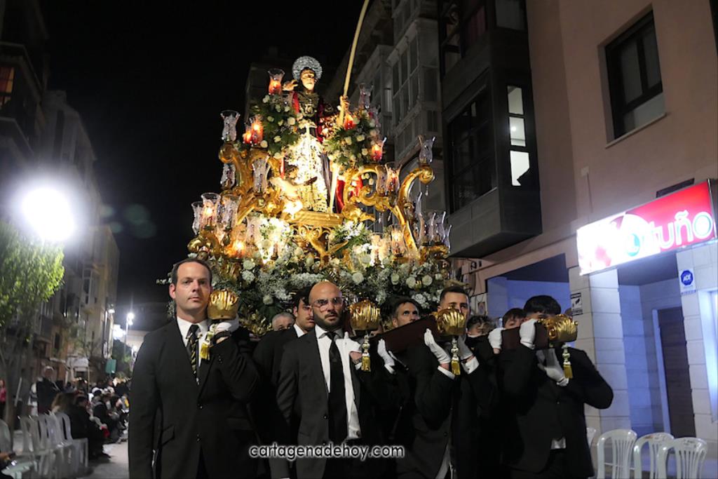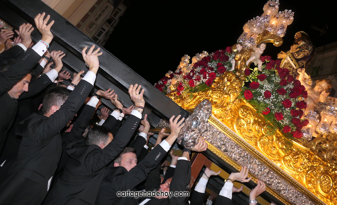 Los tres han ido a hombros, con 50 portapasos el San Juan, 94 la Virgen de los Desamparados y una cifra similar el Cristo que creó el imaginero murciano Francisco Salzillo, quien ha sido elevado, al igual que el Discípulo Amado, frente a la patrona.