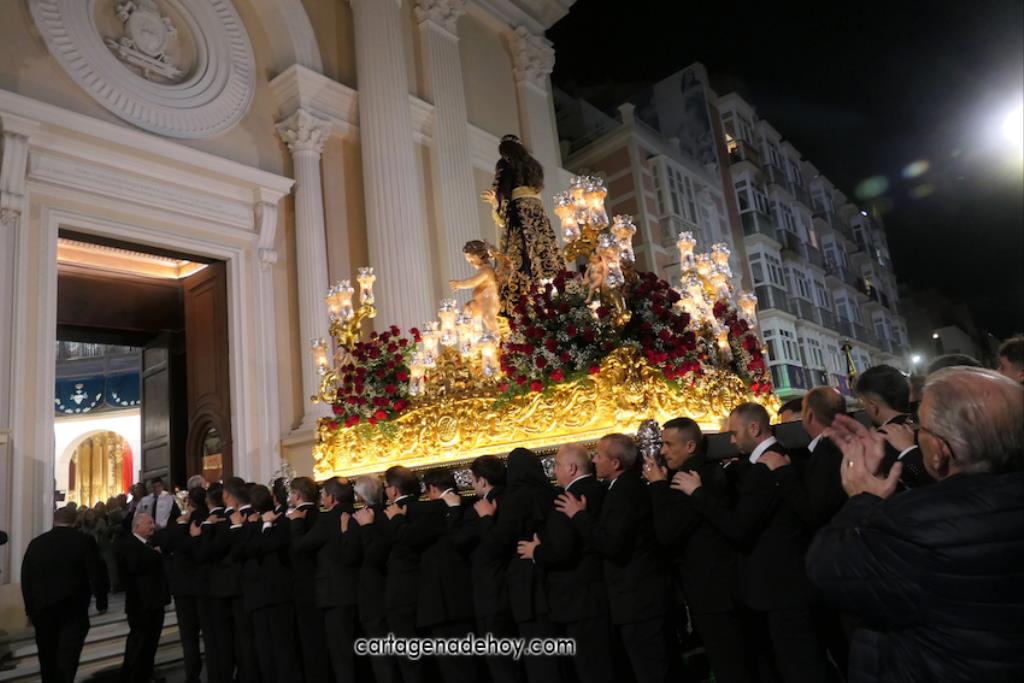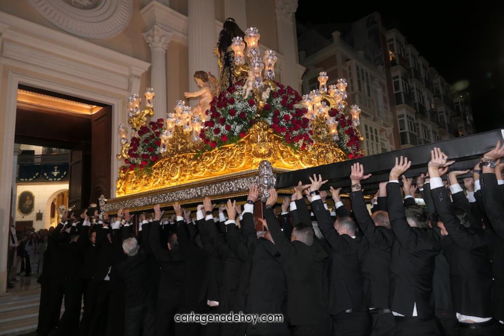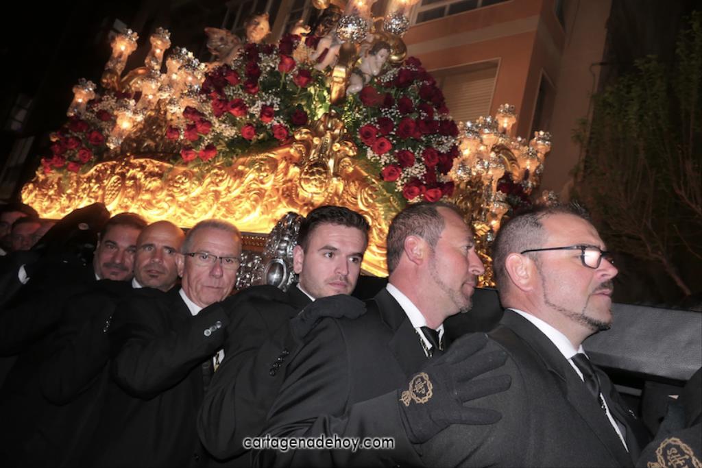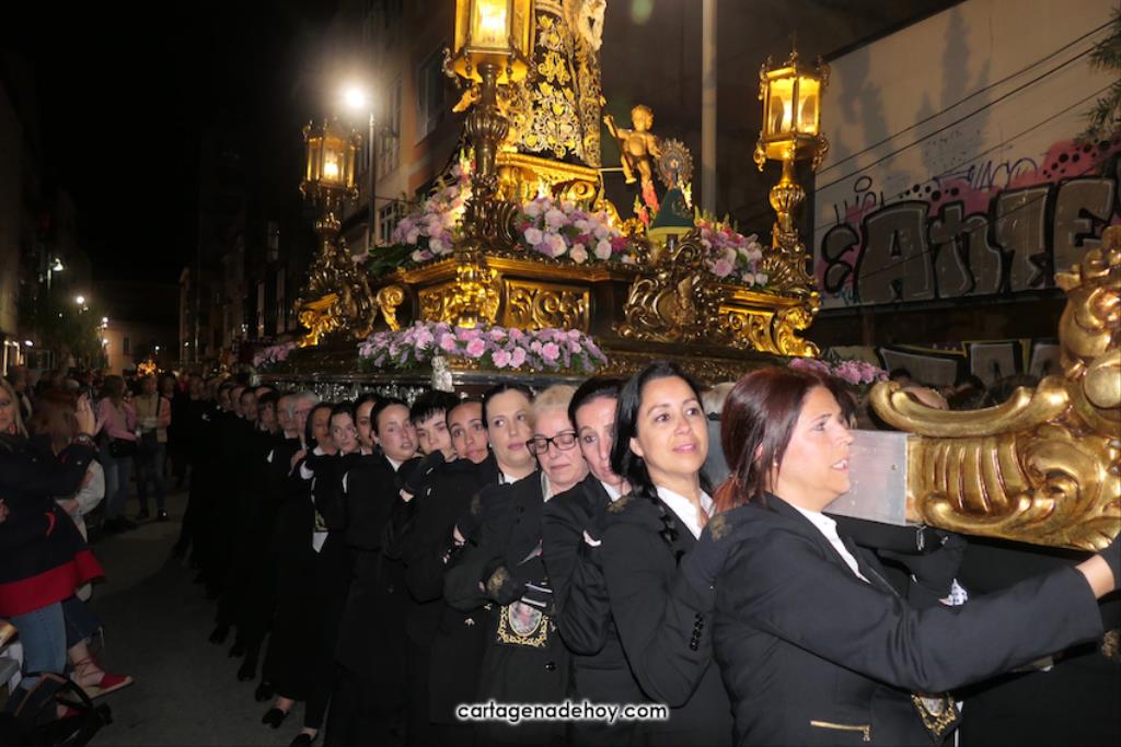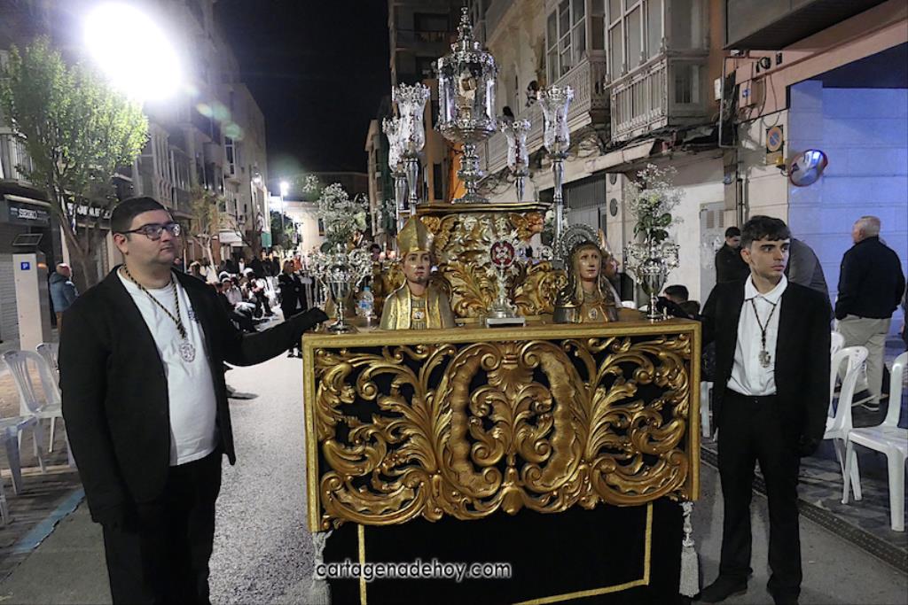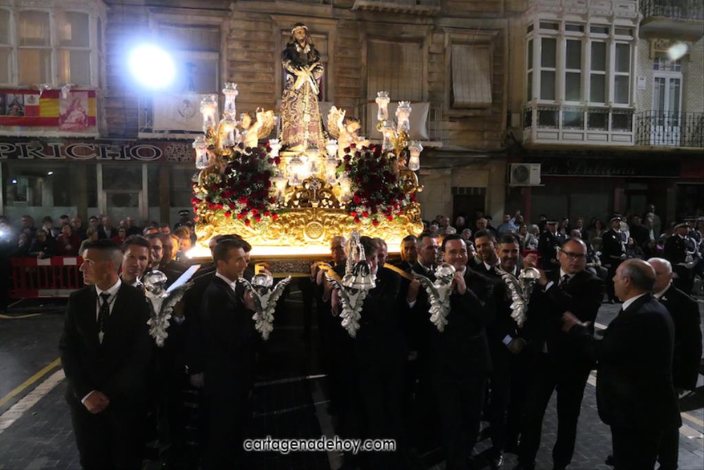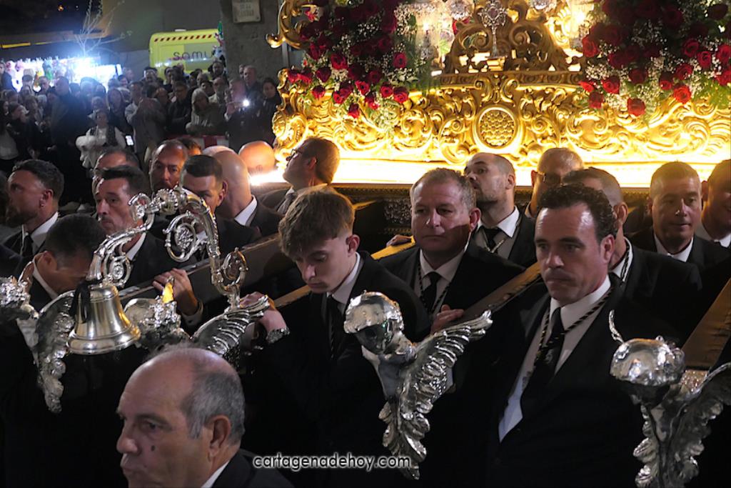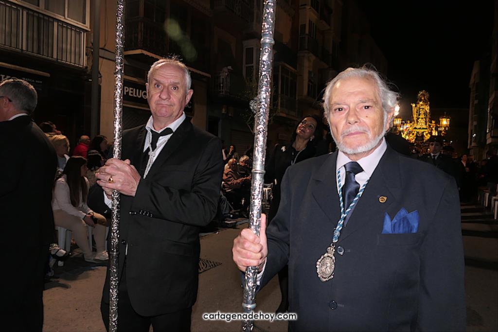 Los tres han ido a hombros, con 50 portapasos el San Juan, 94 la Virgen de los Desamparados y una cifra similar el Cristo que creó el imaginero murciano Francisco Salzillo, quien ha sido elevado, al igual que el Discípulo Amado, frente a la patrona.