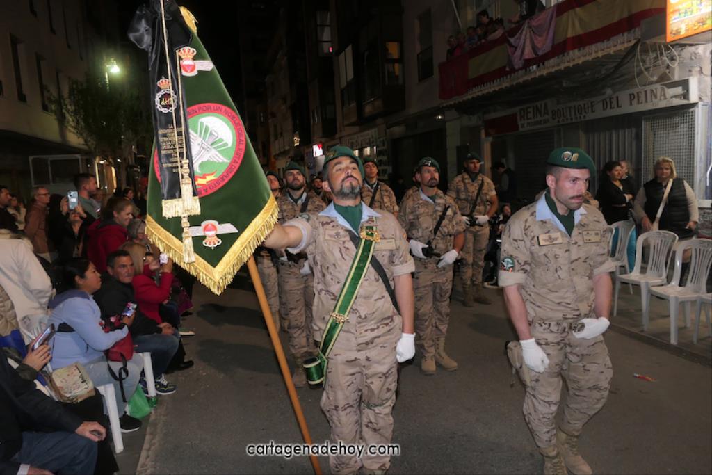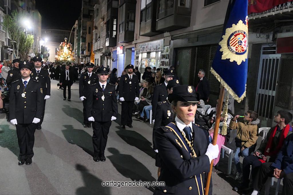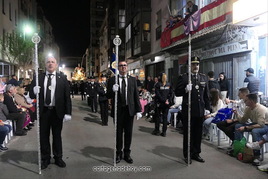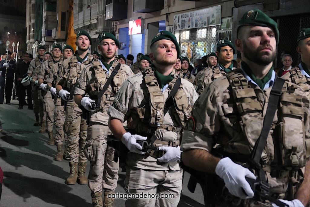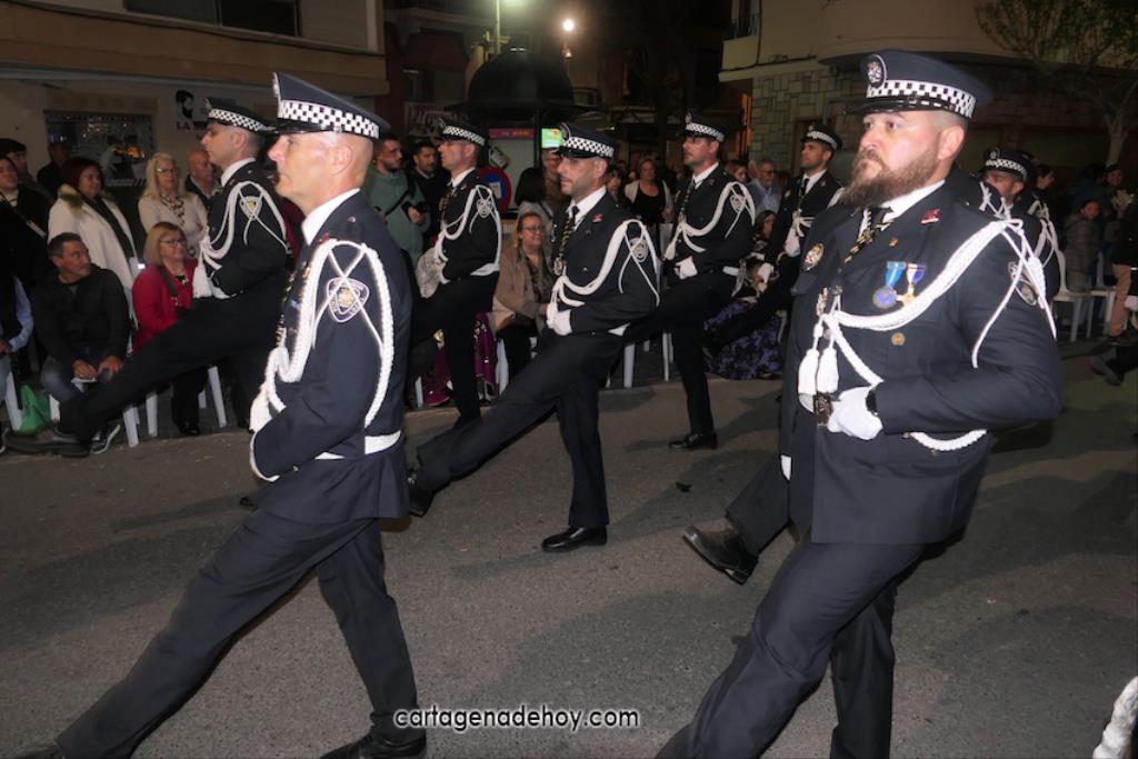 Esa reacción impulsiva de los espectadores ha sido la nota novedosa de un cortejo pasionario que, por cierto, se puede considerar, posiblemente, como el más seguro de la Semana Santa de Cartagena, pues lleva también formaciones de Policía Nacional, Policía Local y un escuadrón de paracaidistas de Alcantarilla.