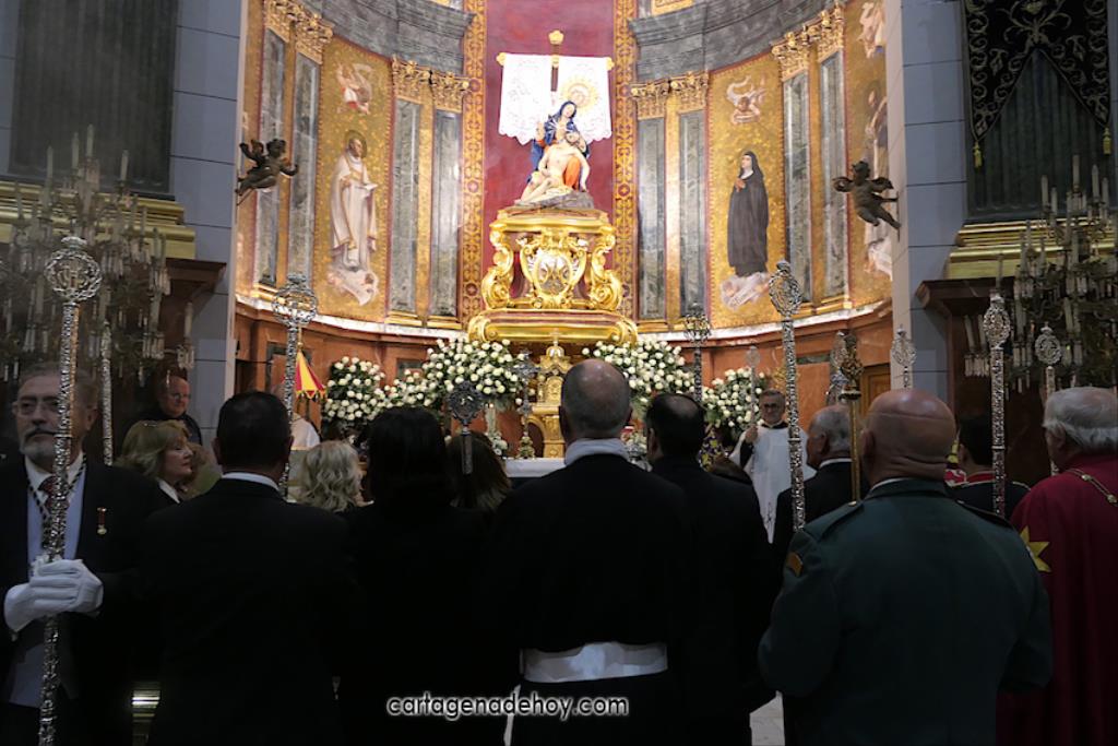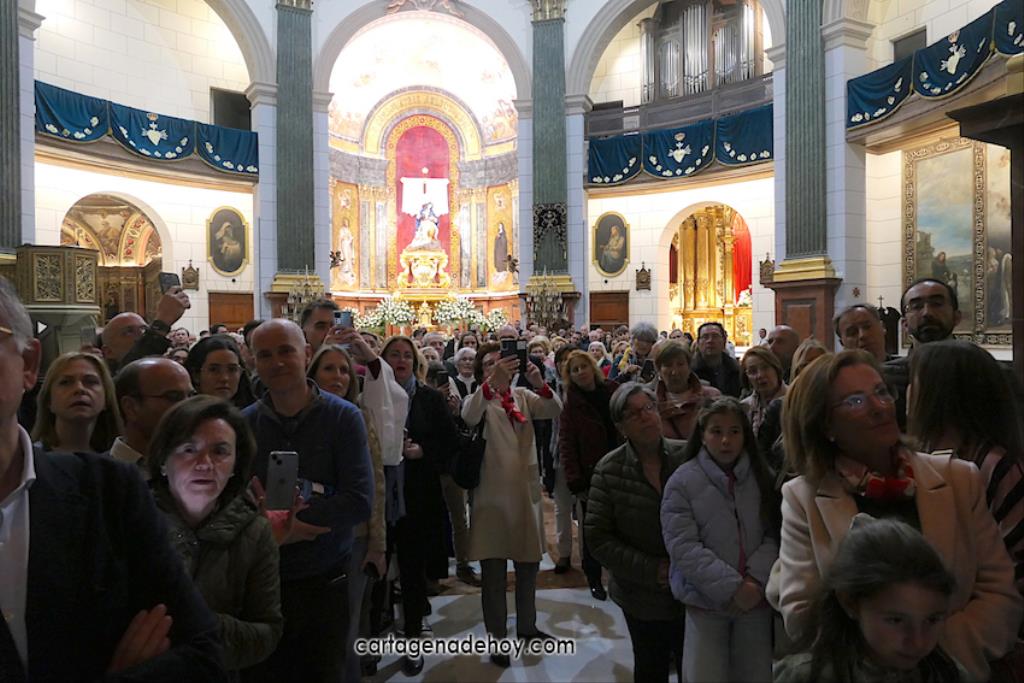 En su interior ha tenido lugar un pequeño acto con palabras vertidas por el recto de la basílica, Francisco Montesinos, entrega de flores y el canto de la Salve.