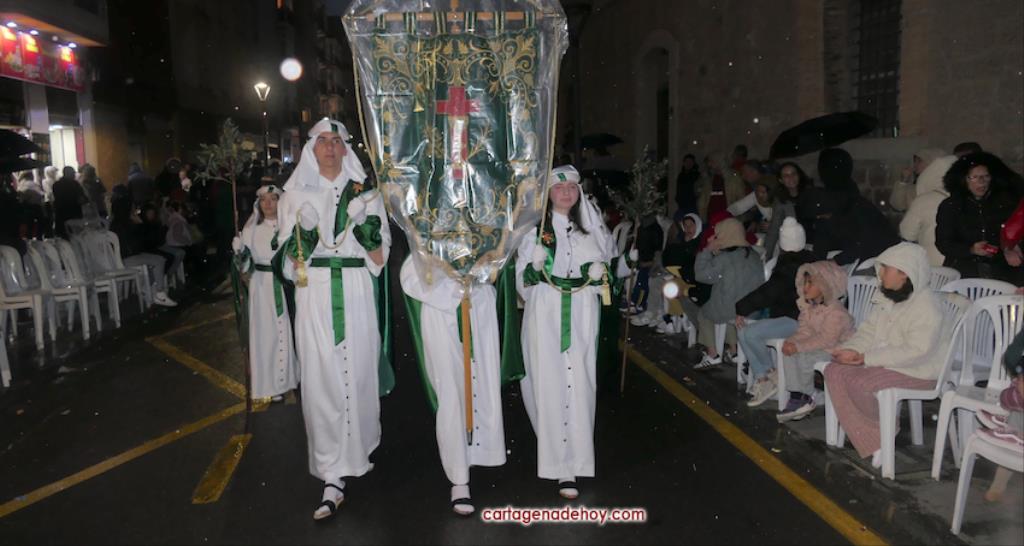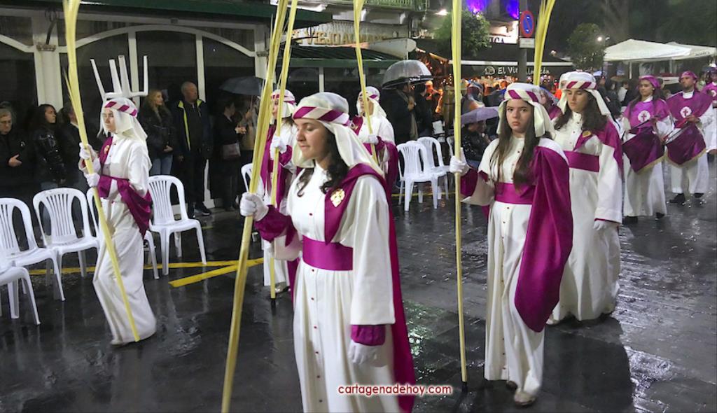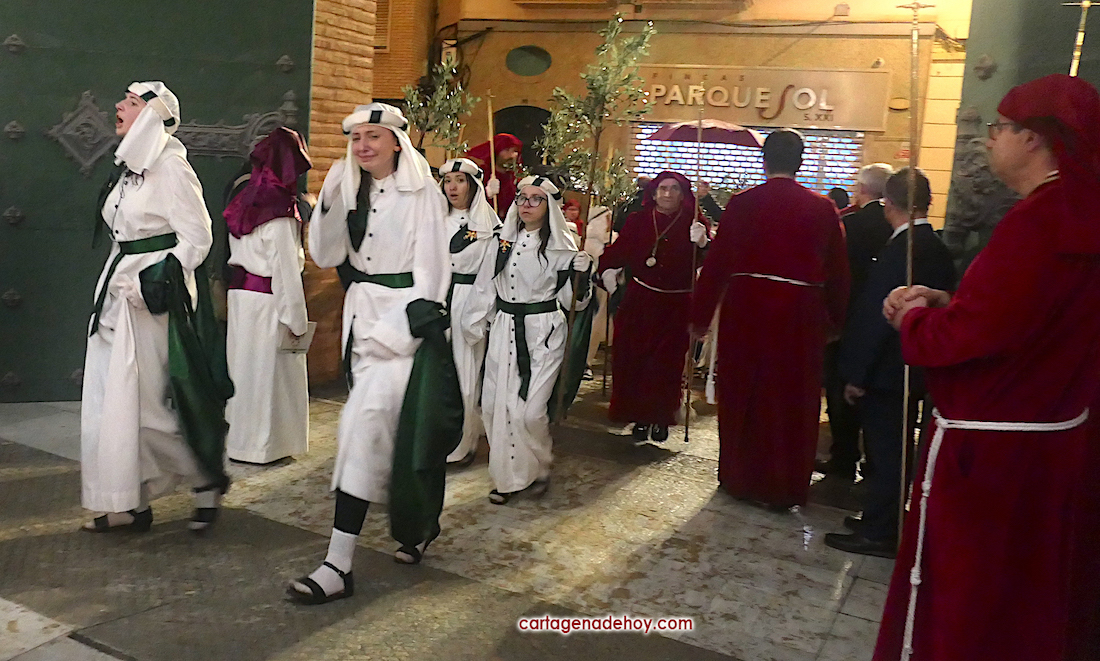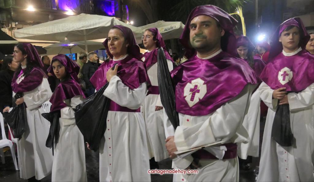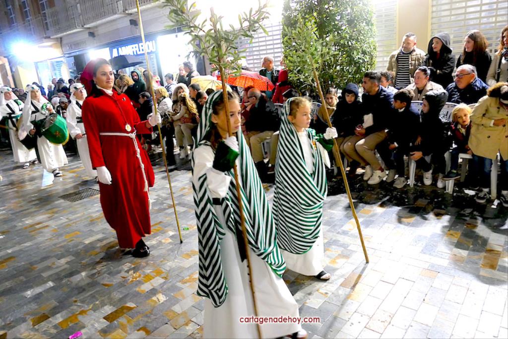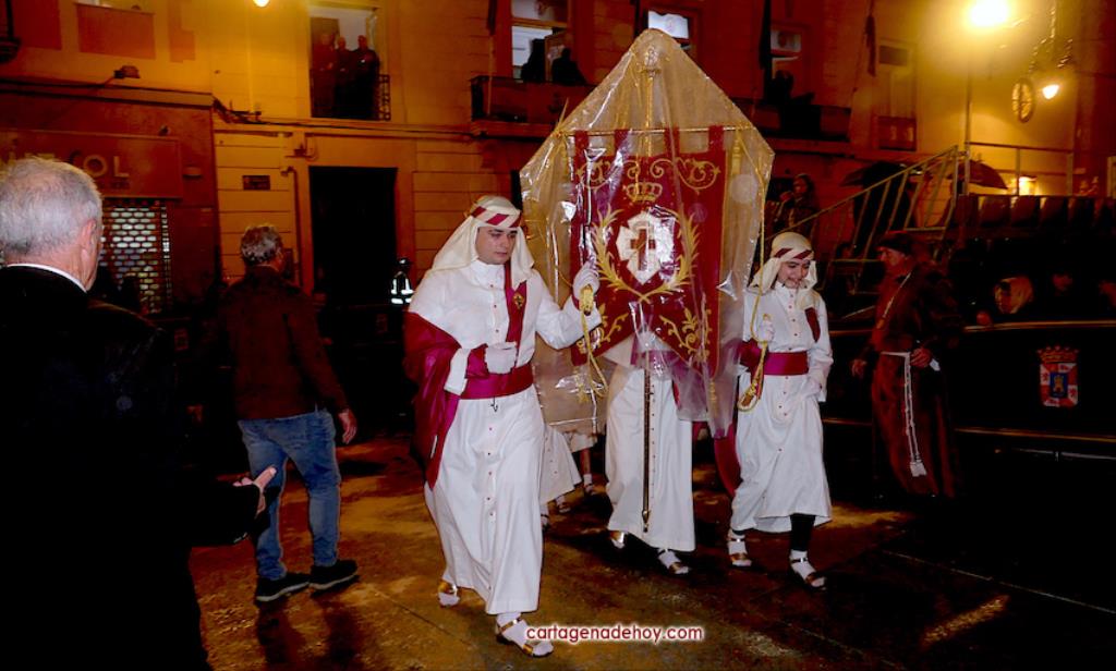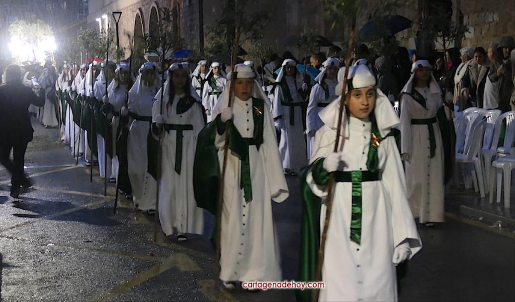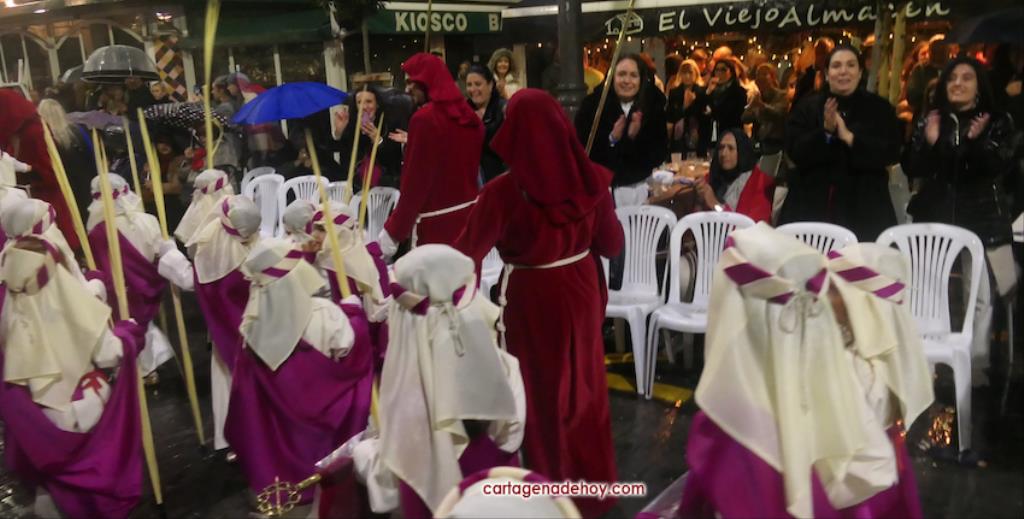 El caso es que entiendo que la procesión saliese. Es el desfile cartagenero menos castigado por la lluvia (lo explicamos en otro artículo del periódico), pero algún día tenía que acabar esa racha y ha venido a ser cuando la primavera acaba de entrar. Una pena, de verdad, pero también una experiencia para la formación de los jóvenes cofrades, quienes han demostrado su ADN pasionario manteniendo su rol y las indicaciones de sus responsables hasta en los momentos que caía más agua. Hay (mucha) madera procesionista en los visto esta tarde-noche.