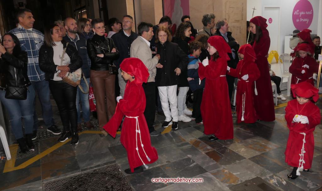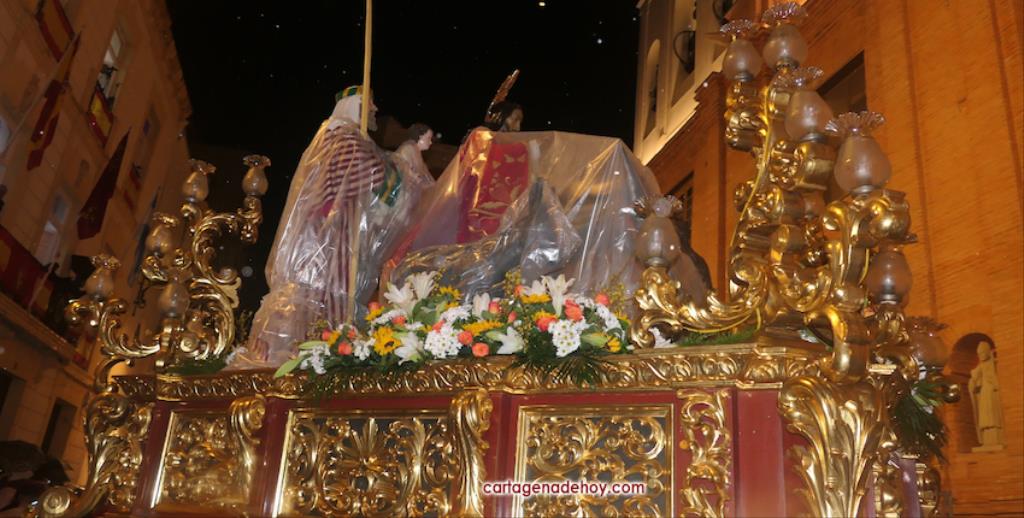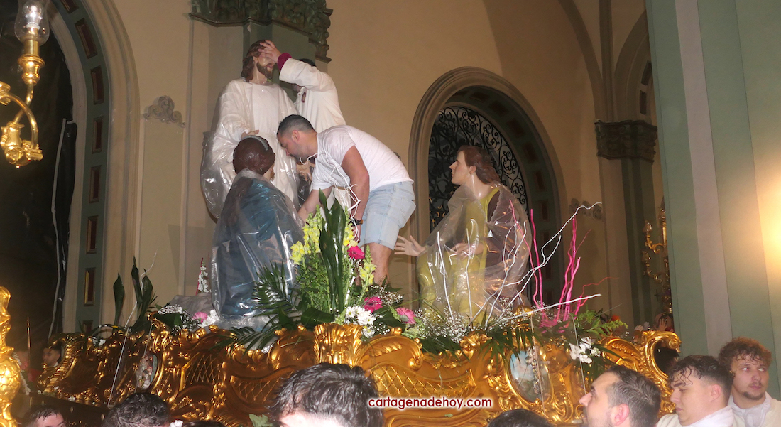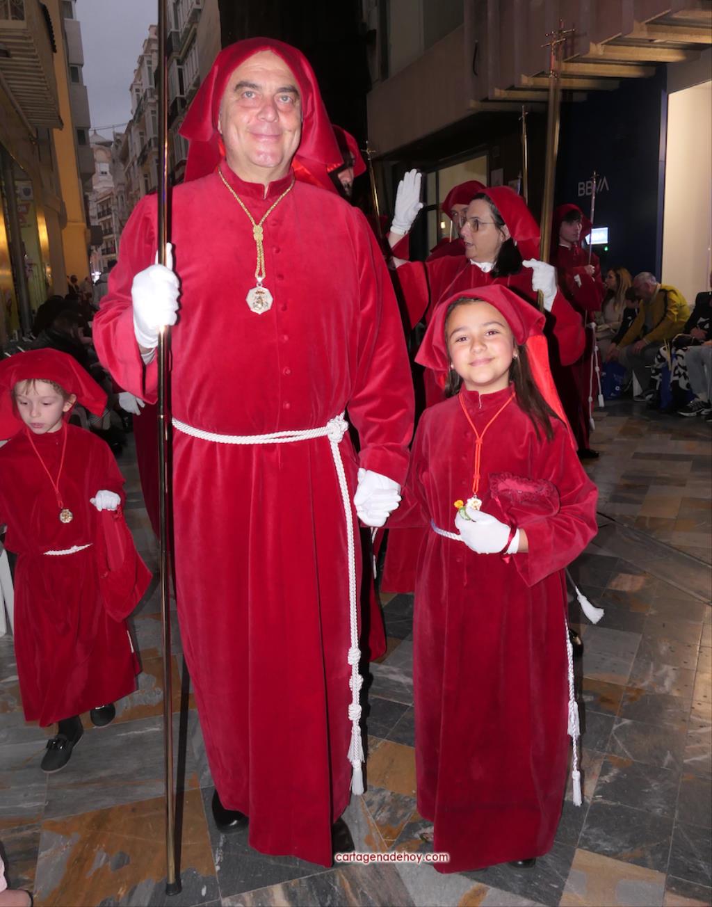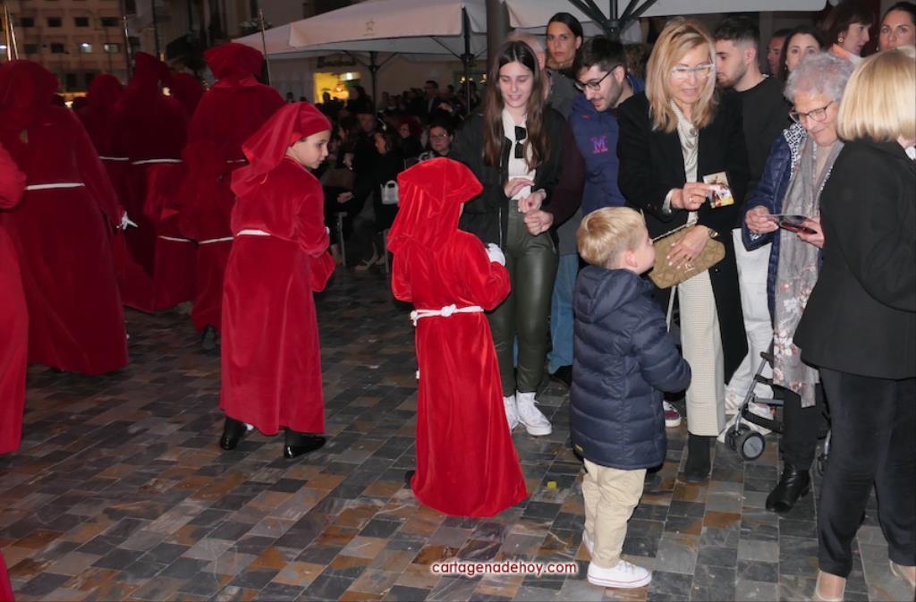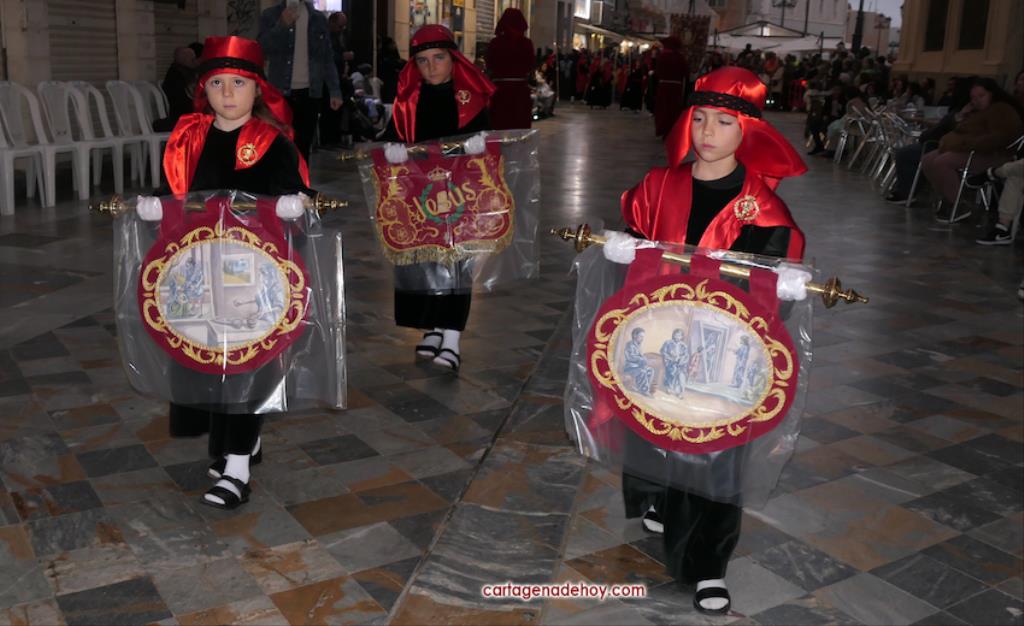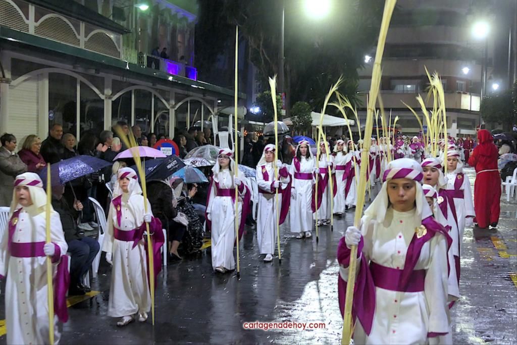 El caso es que entiendo que la procesión saliese. Es el desfile cartagenero menos castigado por la lluvia (lo explicamos en otro artículo del periódico), pero algún día tenía que acabar esa racha y ha venido a ser cuando la primavera acaba de entrar. Una pena, de verdad, pero también una experiencia para la formación de los jóvenes cofrades, quienes han demostrado su ADN pasionario manteniendo su rol y las indicaciones de sus responsables hasta en los momentos que caía más agua. Hay (mucha) madera procesionista en los visto esta tarde-noche.