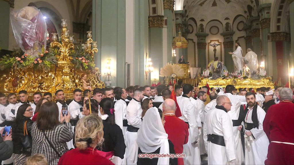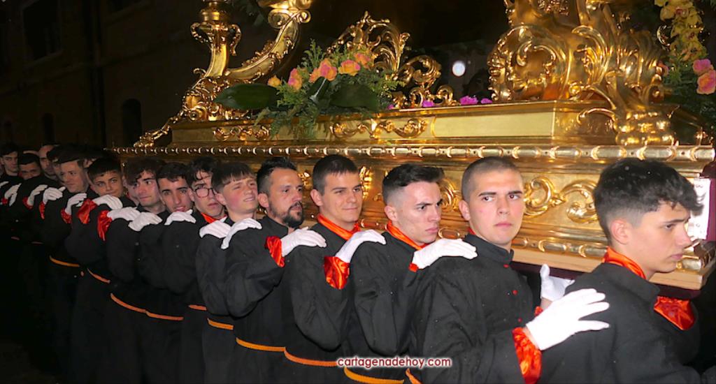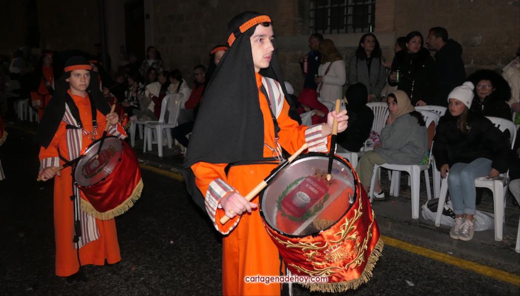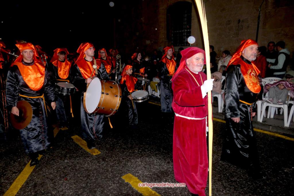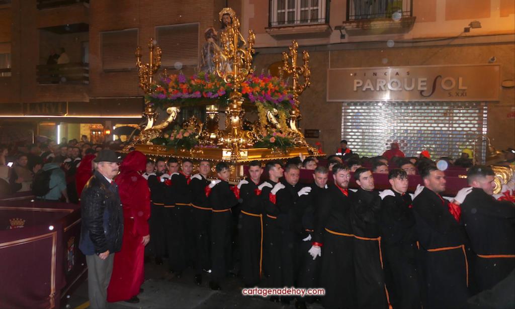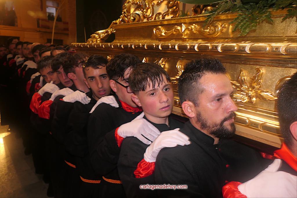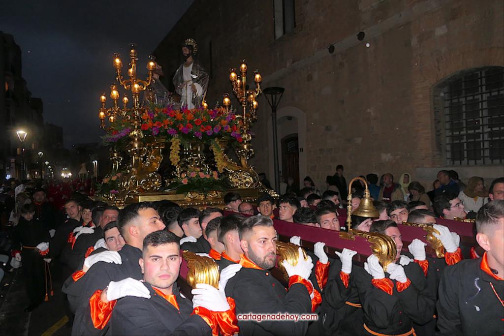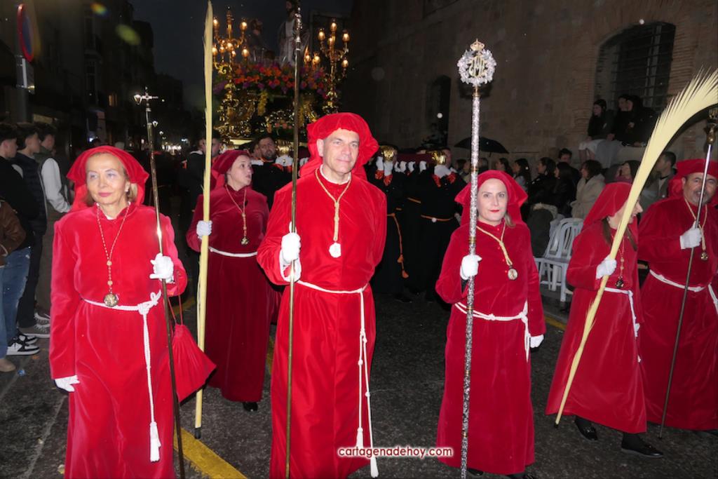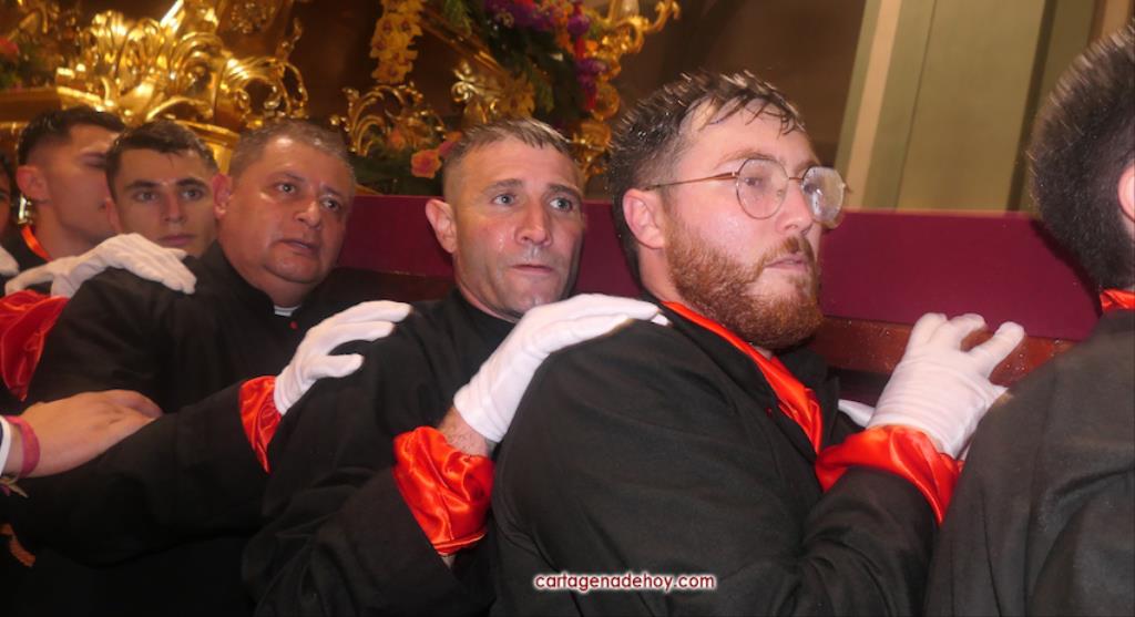 El caso es que entiendo que la procesión saliese. Es el desfile cartagenero menos castigado por la lluvia (lo explicamos en otro artículo del periódico), pero algún día tenía que acabar esa racha y ha venido a ser cuando la primavera acaba de entrar. Una pena, de verdad, pero también una experiencia para la formación de los jóvenes cofrades, quienes han demostrado su ADN pasionario manteniendo su rol y las indicaciones de sus responsables hasta en los momentos que caía más agua. Hay (mucha) madera procesionista en los visto esta tarde-noche.