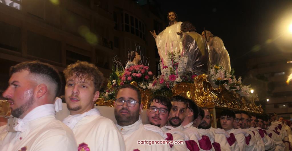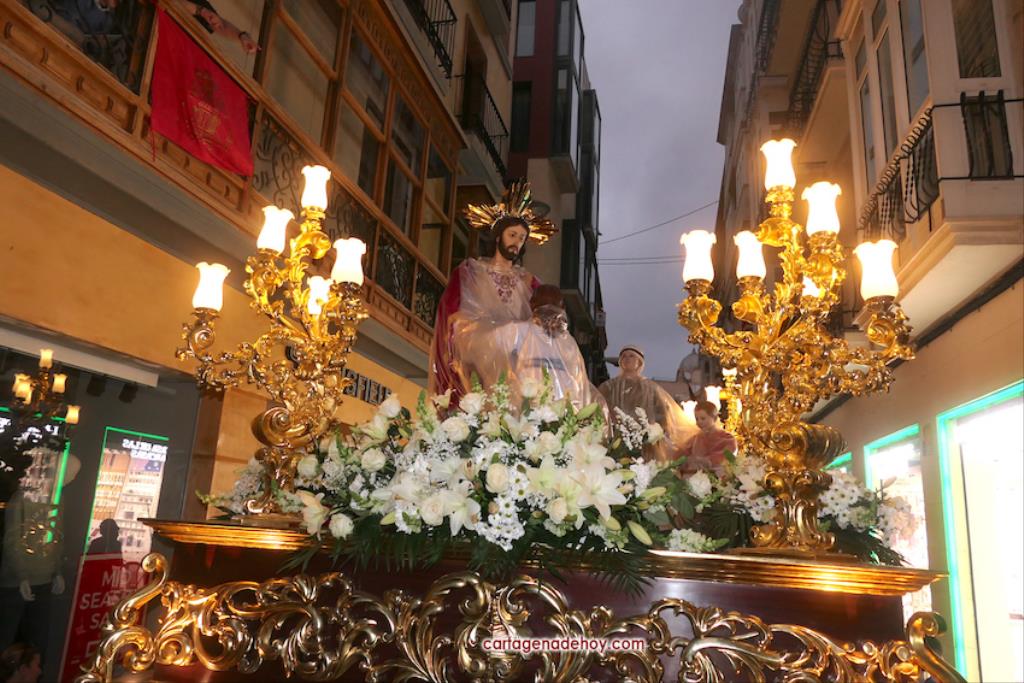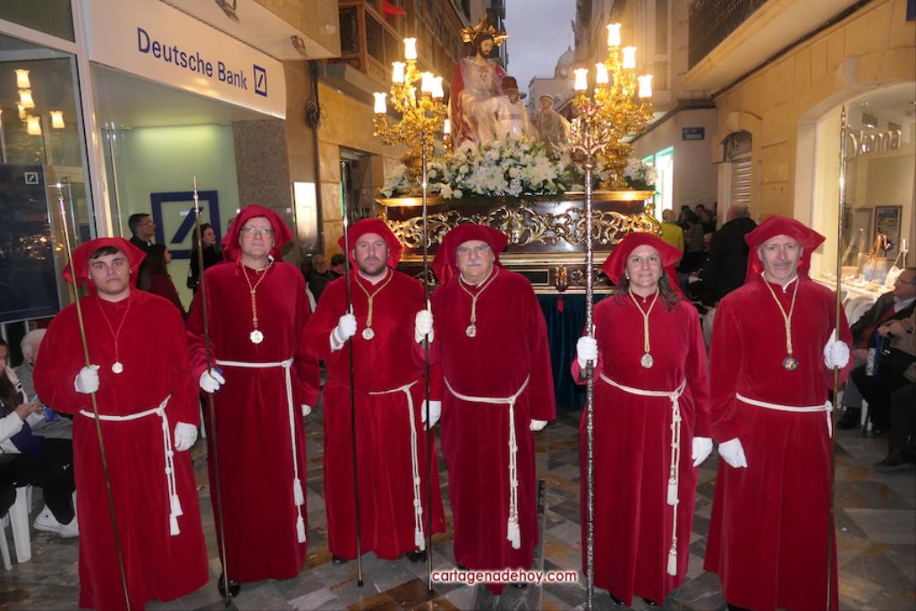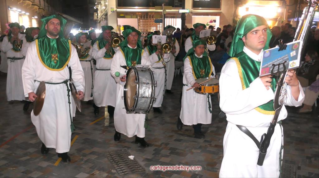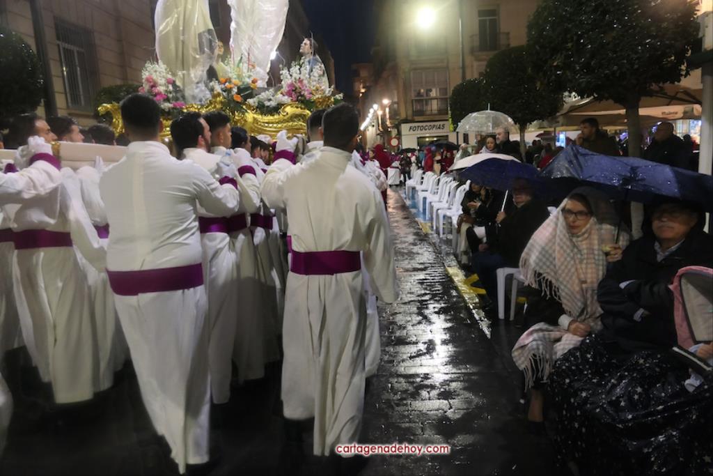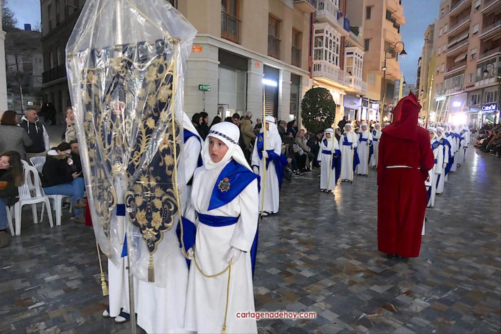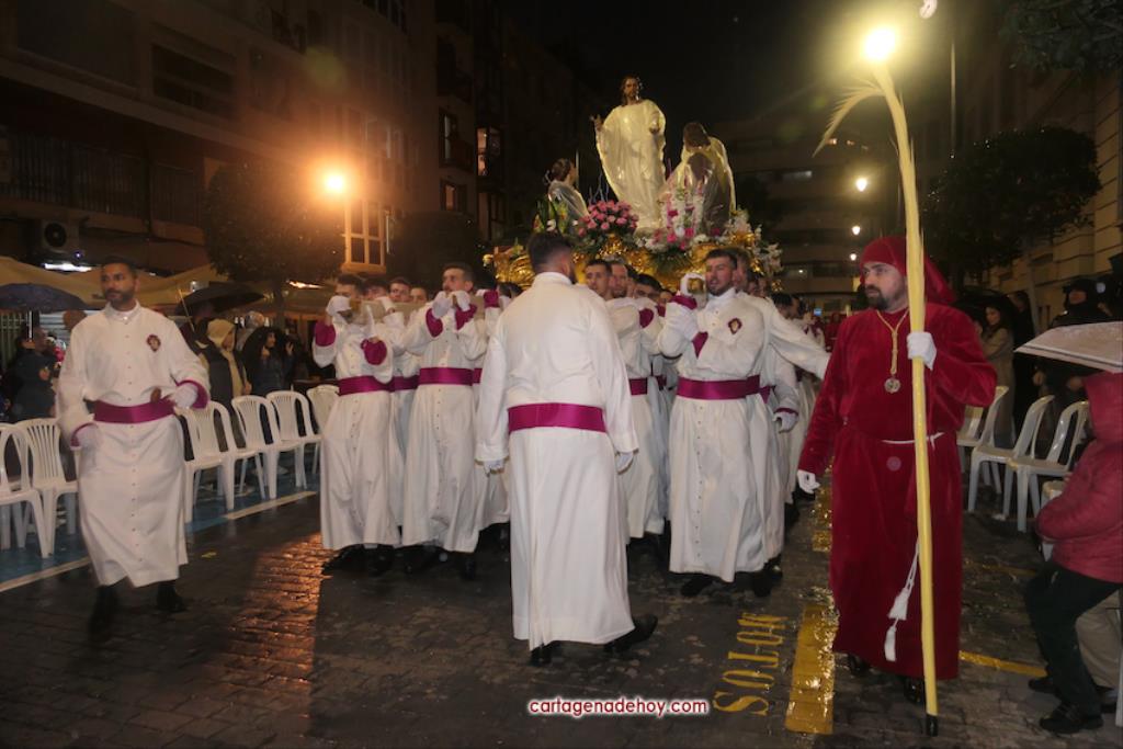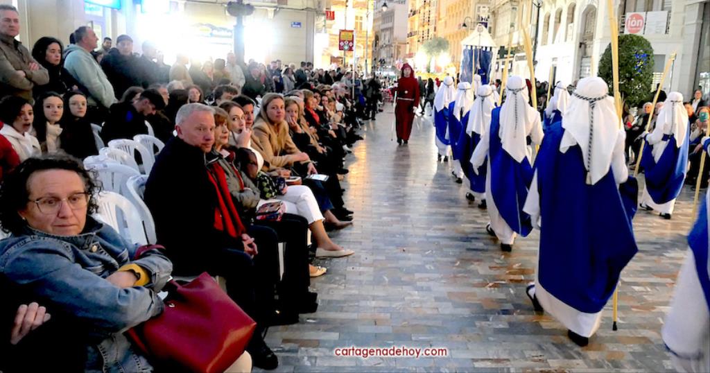 El caso es que entiendo que la procesión saliese. Es el desfile cartagenero menos castigado por la lluvia (lo explicamos en otro artículo del periódico), pero algún día tenía que acabar esa racha y ha venido a ser cuando la primavera acaba de entrar. Una pena, de verdad, pero también una experiencia para la formación de los jóvenes cofrades, quienes han demostrado su ADN pasionario manteniendo su rol y las indicaciones de sus responsables hasta en los momentos que caía más agua. Hay (mucha) madera procesionista en los visto esta tarde-noche.