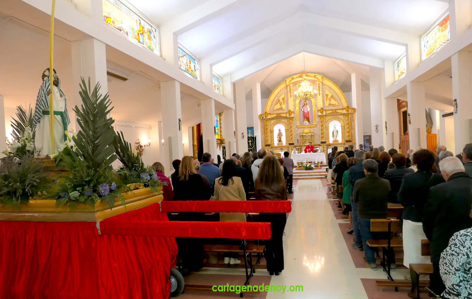 La ‘Entrada de Jesús en Jerusalén’ es la base del júbilo de la mañana del Domingo de Ramos, que se ha celebrado en formato procesión en La Puebla con un pollino auténtico, mientras que en El Algar son los niños los que llevan un trono con el ‘Salvador’ en la burrica. La otra imagen corresponde al Polígono Santa Ana, donde palmas y ramas de olivo recorren la barriada, al igual que, al menos, en una veintena de poblaciones cartageneras.
