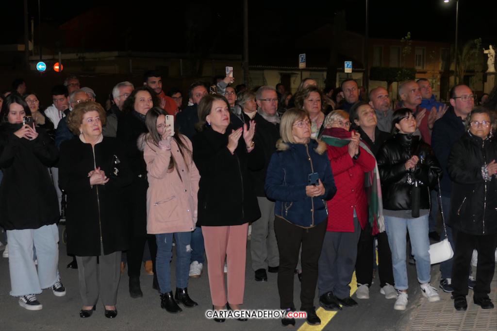 Diez de la noche. En La Palma hacen entre 9 y 10 grados de temperatura, unos 3 ó 4 menos que en la ciudad de Cartagena y el viento que sopla procedente del norte es helado. Qué diferencia de clima con respecto al pasado año y a otros anteriores. Sin embargo, unos trescientos vecinos han acudido a la puerta de la tres veces centenario iglesia de Santa Florentina para contemplar la primera de sus procesiones de 2024 y que tiene la particularidad de mayoría femenina entre sus protagonistas con respecto a los varones.