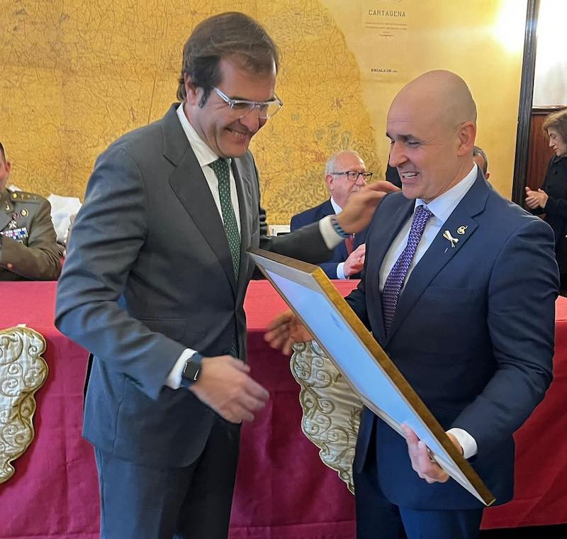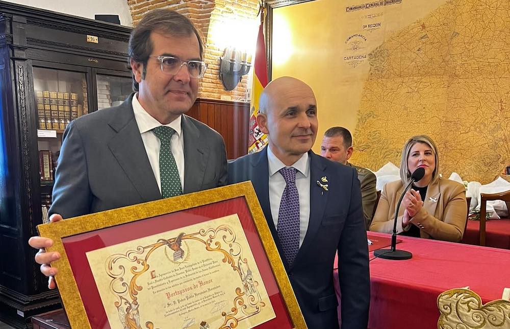 Pedro Pablo Hernández Hernández, vicepresidente de la Autoridad Portuaria, ha sido nombrado ‘Portapasos de honor’ de la Agrupación de San Juan Evangelista de la Cofradía California. En la imagen, recoge el nombramiento de manos del presidente sanjuanista, Francisco Manuel Pozo.